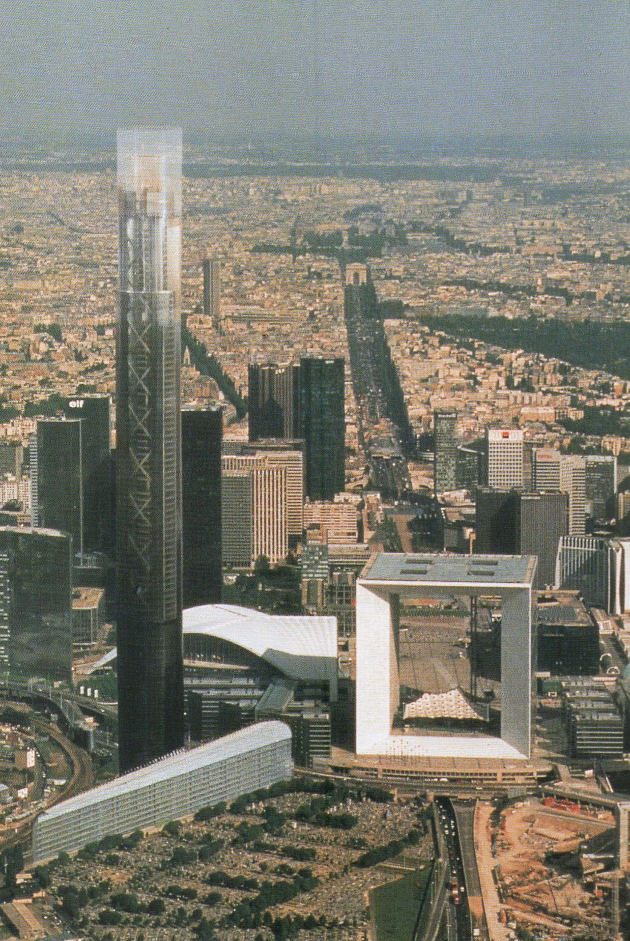 Se no final do século XX, a Torre Sem Fim (Tour Sans Fins) de Jean Nouvel tivesse sido construída, talvez tivéssemos hoje um elemento para observarmos e nos perguntarmos sobre estas mesmas questões. Mas o fato de haver permanecido como projeto seja uma evidência de como na cidade contemporânea cada vez menos se encontra espaço para expressões dessa natureza. Concebida em 1989 para o bairro de La Défense, nos arredores de Paris, a torre registraria no contexto urbano uma expressão sem precedentes através de sua materialidade e escala, como um marco territorial no skyline parisiense. Uma situação relacionada com esta paisagem de escala metropolitana, não mais definida pela natureza intocada, mas sim por uma condição criada pelo próprio ser humano: a cidade inventada onde vive.