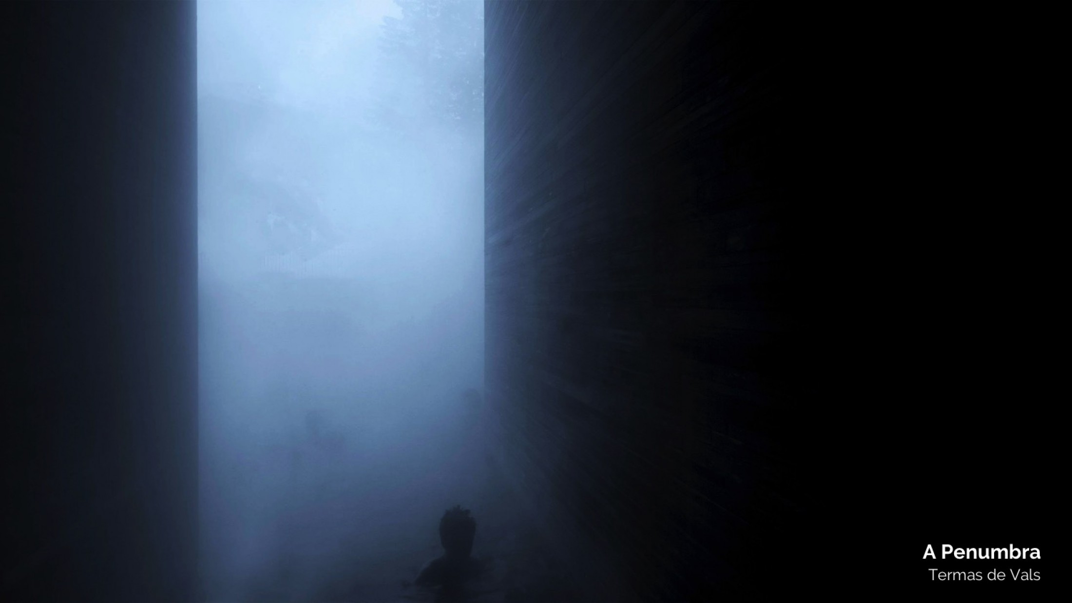 Era chegado o momento do tão esperado banho noturno. Na porta o aviso deixava claro: ‘pedimos que ninguém fale e se mantenham todos em silêncio’. À meia noite, imerso na água de 36 graus, a luz difusa da lua refletida no branco da neve permitia que caminhasse por entre os grandes volumes de pedra pelos quais havia transitado incansavelmente durante o dia. No entanto, a atmosfera era outra e pouco se podia ver através da bruma criada pelo vapor da água quente junto à temperatura negativa do exterior. Na solidão inevitável da água e da bruma, a respiração do corpo em transe e o olho descansado permitiam as vezes perceber vultos próximos vagando ao redor. Aproximando-me de um deles reconheço meu pai. Olhando para o céu, para a construção, para aquele lugar, para mim, numa ansiedade desmedida e rompendo delicadamente a regra fundamental, soprou-me silenciosamente com lágrimas nos olhos: “esse arquiteto sabia exatamente o que fazer”.