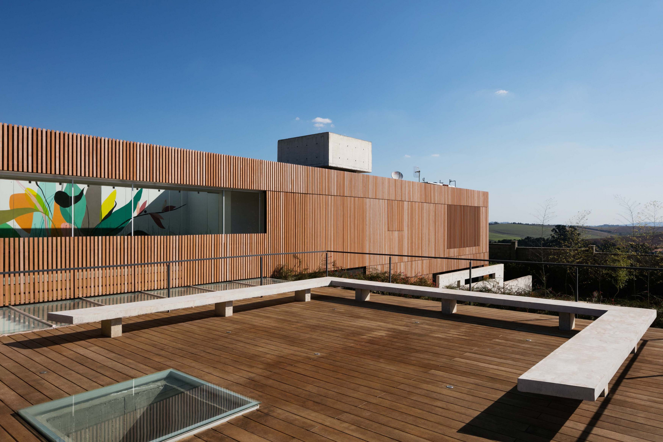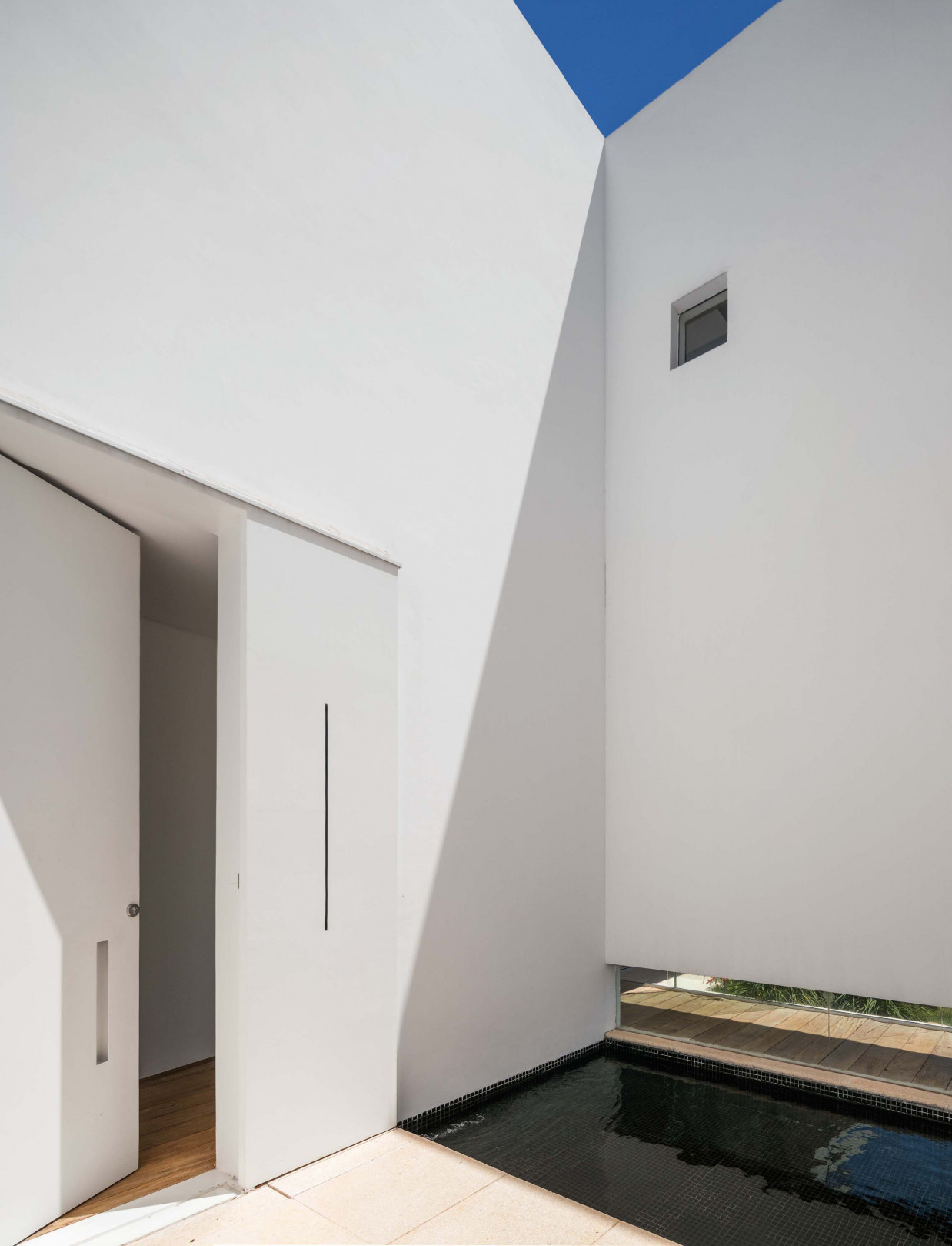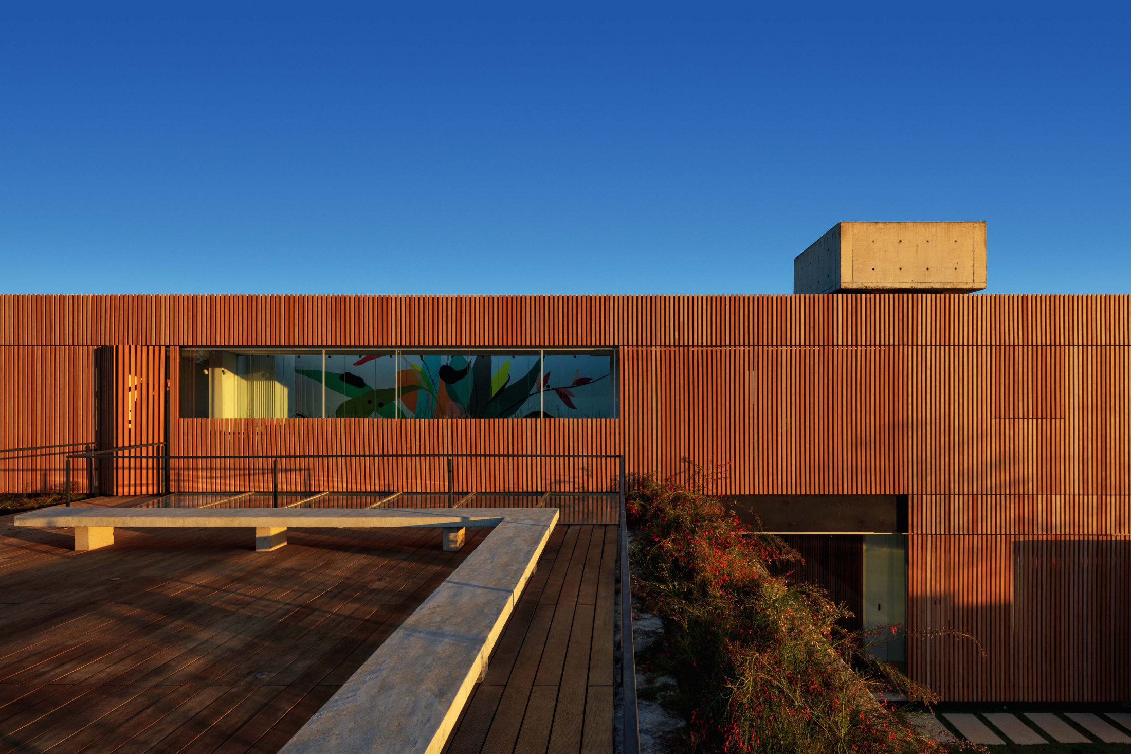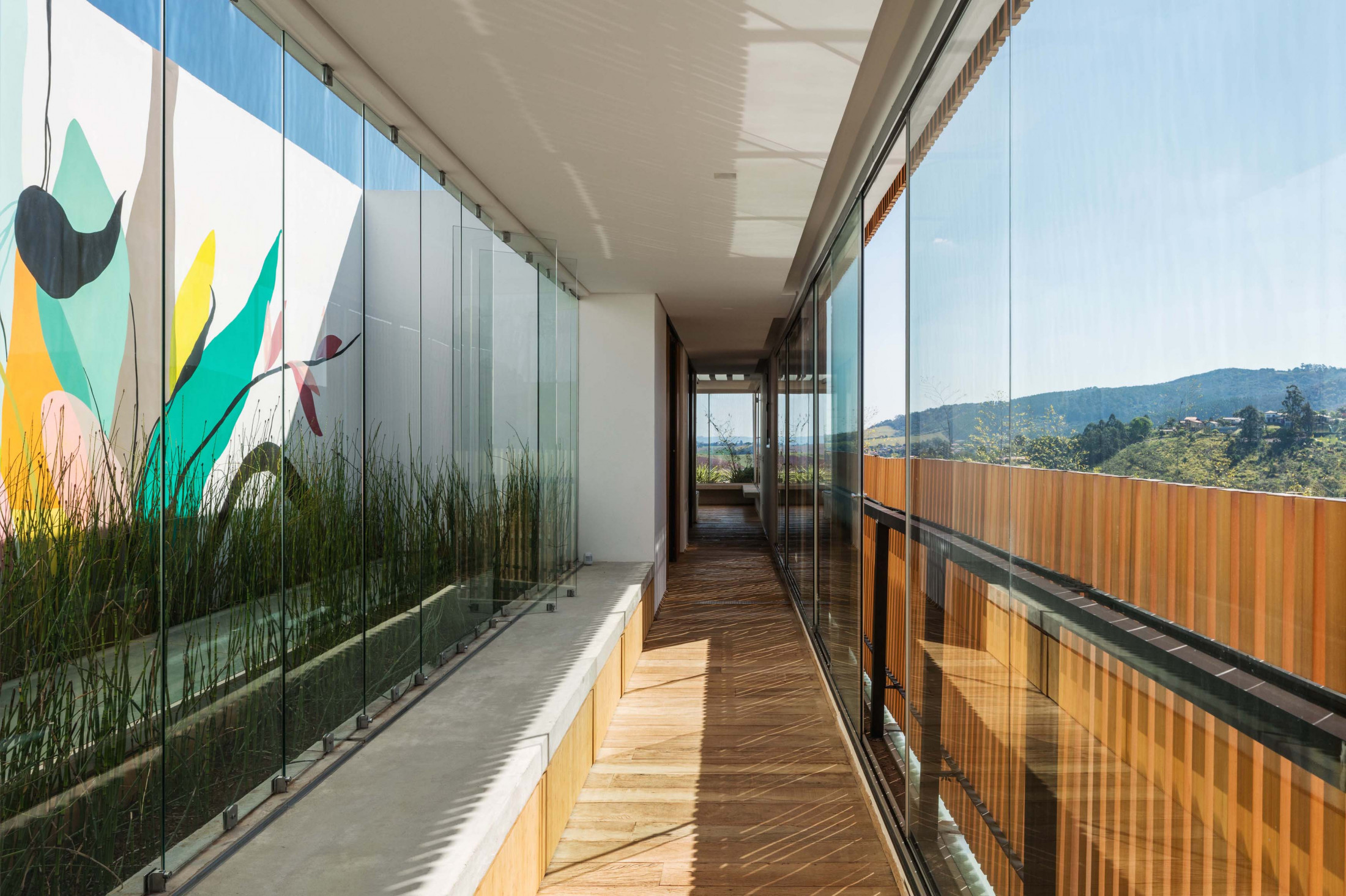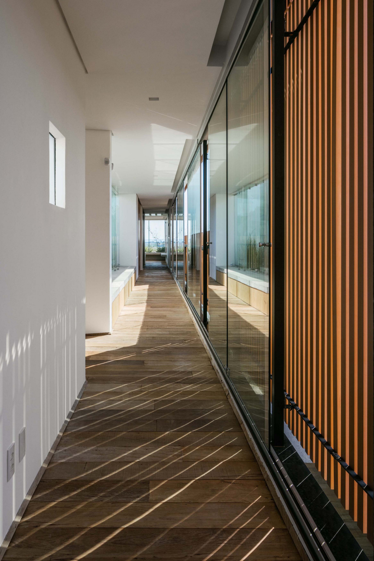 As if carved from the inside out, the main volume is 35 meters long and has a series of moments and voids ranging from the patio – designed not as a door but as a transition between the outside world and the inside – to a sequence of spaces that accommodate much of a traditional house program. Other subtractions gradually unfold within and are associated to a kind of 'window-ode' in which its facades are transformed: countless openings of different sizes, layers and functioning carefully frame the surrounding landscape, bringing it in and creating living pictures at every moment on is circulating inside.