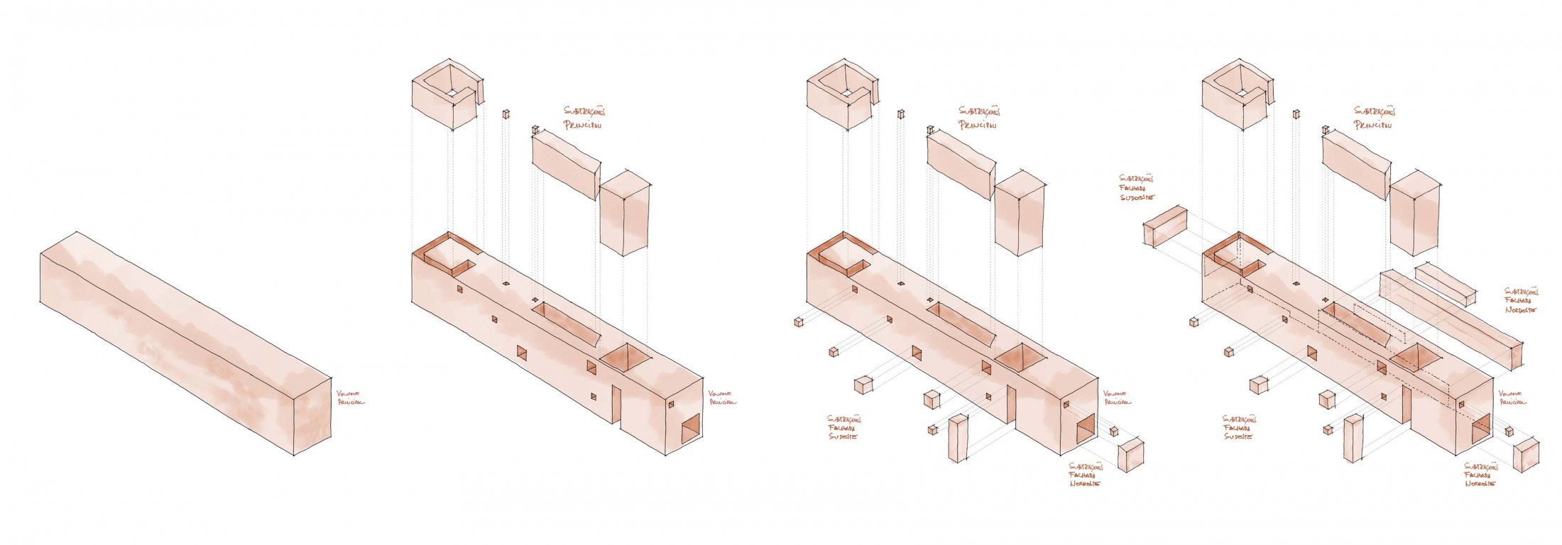 Finally, natural light reveals itself as an omnipresent architectural element. The massive nature of the construction reveals openings to the horizons, the sky and the ground, landscapes always framed by courtyards and windows that awaken the senses of its inhabitants to their own position, guarded by this ark that rests anchored in dialogue with its place.