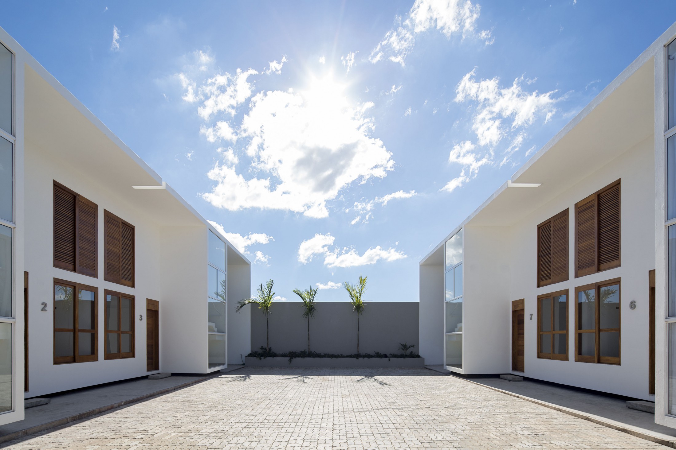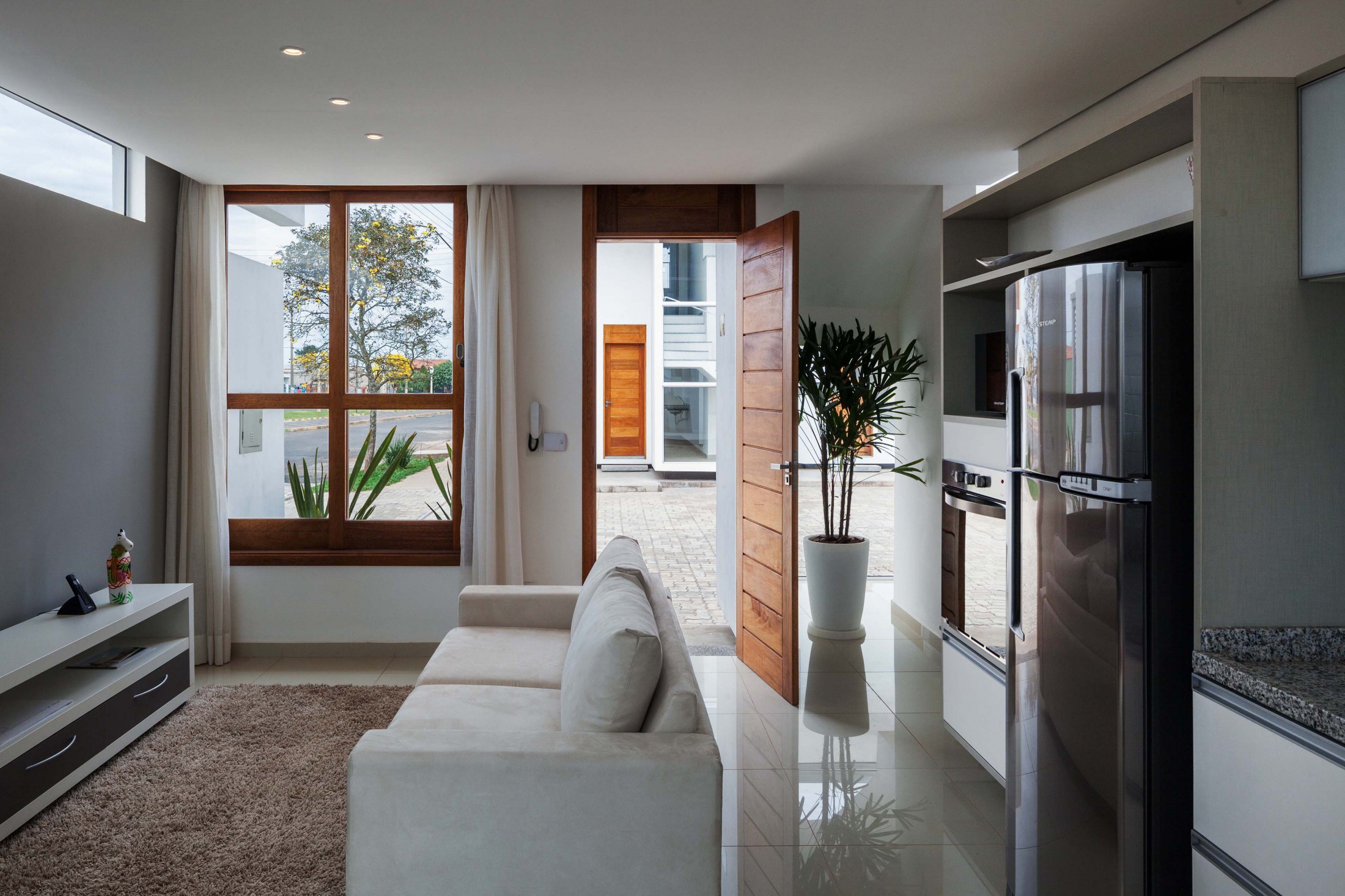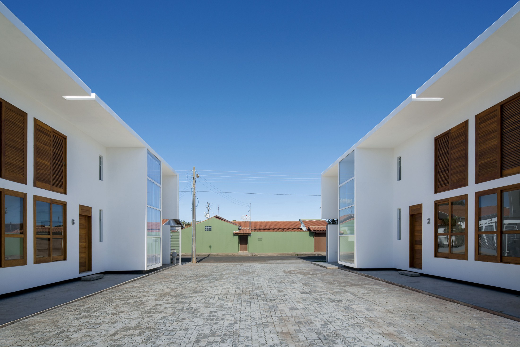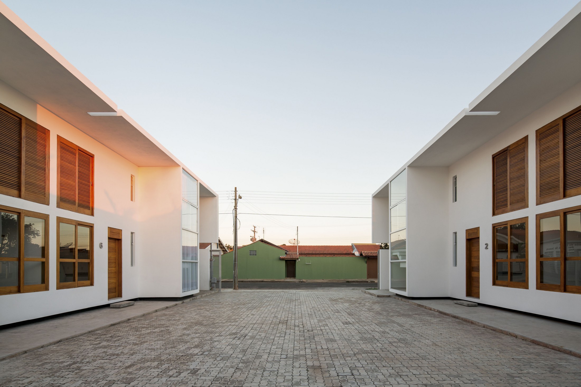 Voltadas para o pátio coletivo, as unidades contemplam, desde suas varandas, um espaço que trás a vizinhança para o seu interior, transpondo os limites que poderiam caracterizar este conjunto residencial como propriedades fragmentadas. A área central se destina ao potencial de sua flexibilidade como espaço para, atividades comuns, reuniões, automóveis, etc.