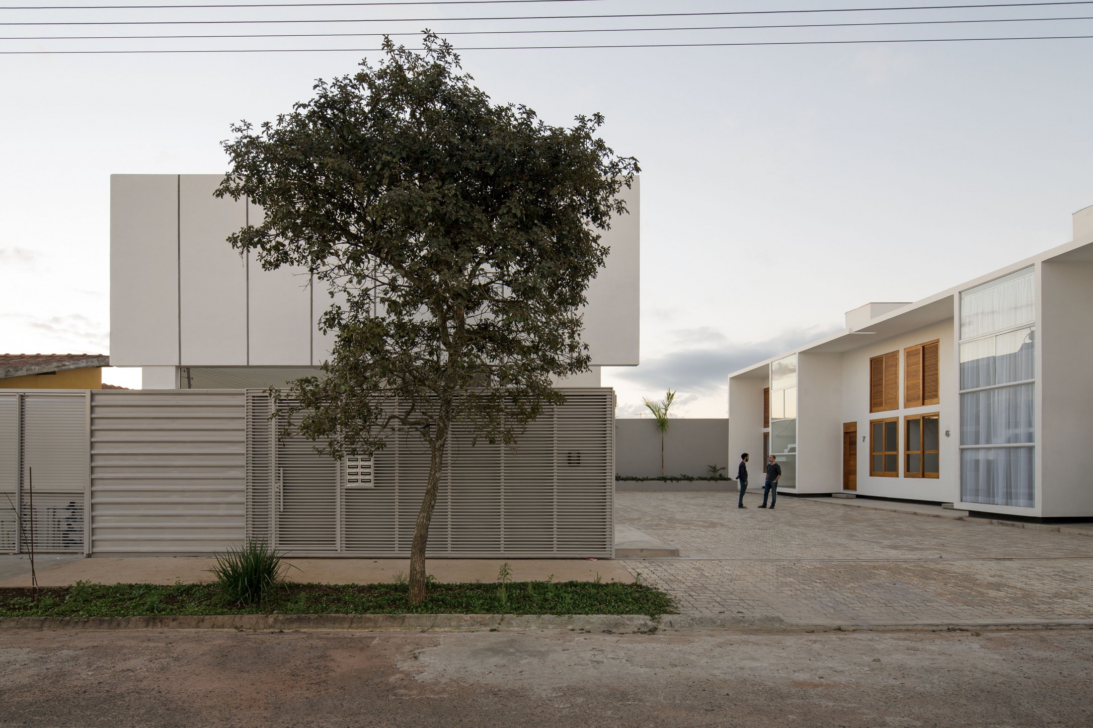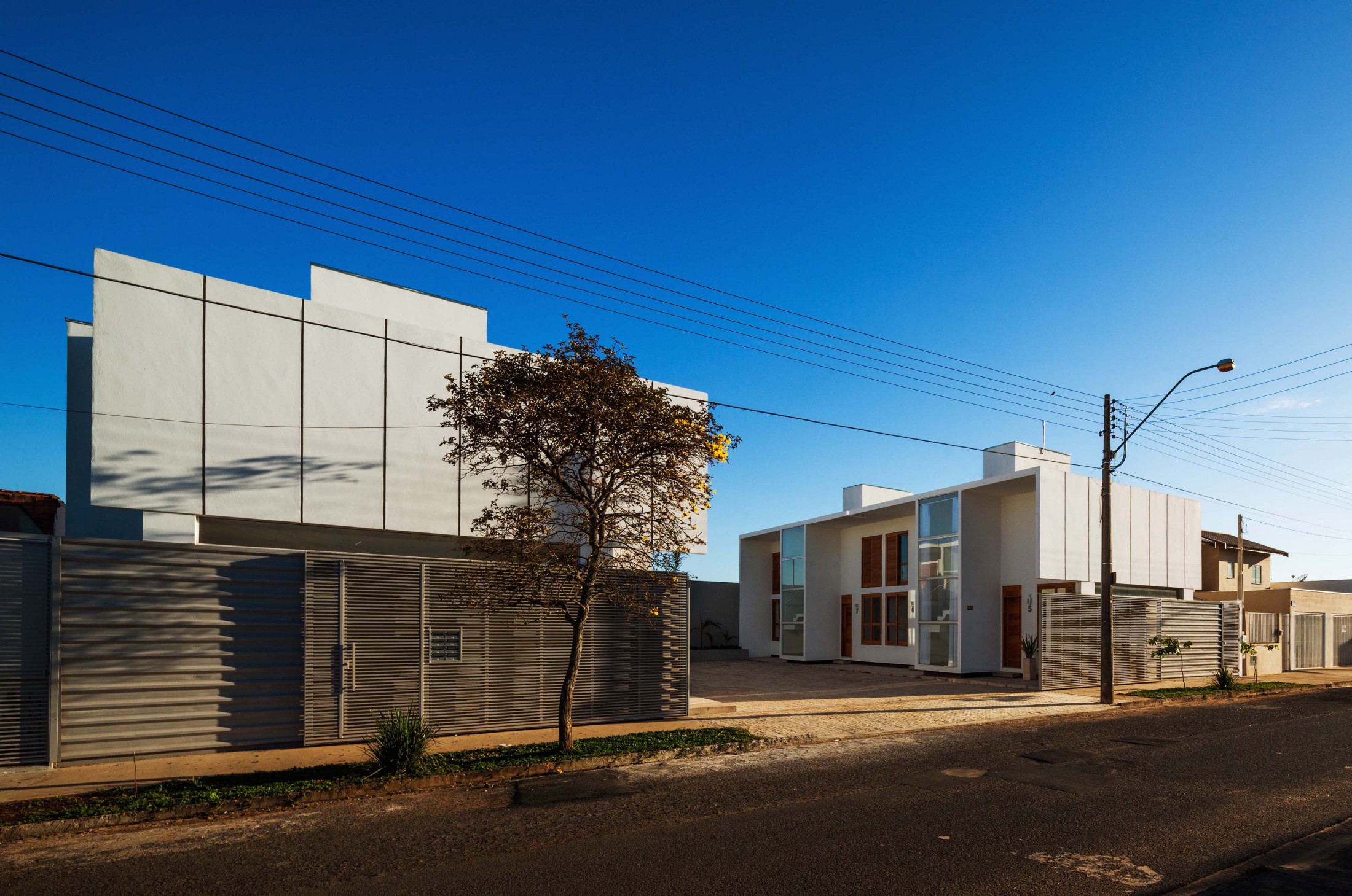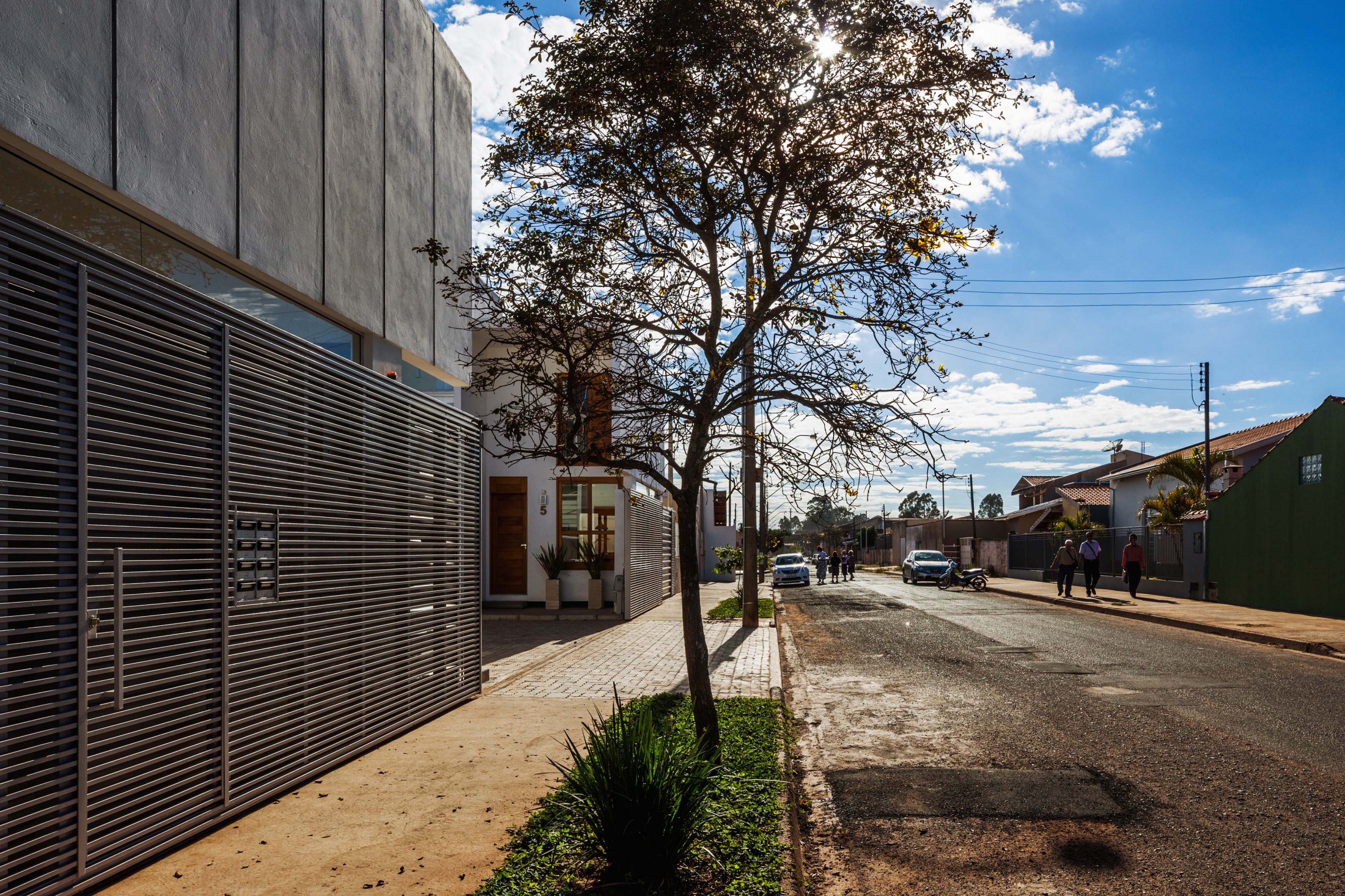 Localizado numa nova área urbana dos arredores da cidade de Avaré, no interior do Estado de São Paulo, o terreno possui dimensões significativamente superiores aos lotes padrões que configuram o contexto existente, o que lhe atribui uma possível singularidade de ocupação, explorada desde o início pelo projeto. Constituído, em sua maioria, por residências unifamiliares, o bairro de baixa densidade preserva a atmosfera e os aspectos tradicionais de relação com a urbanidade e o espaço coletivo das pequenas cidades, evidenciada ainda mais pela praça local próxima ao terreno. Ainda que limitadas por seus muros e gradis, suas construções sempre se abrem para a rua através de varandas ou espaços a partir dos quais o usuário pode interagir com o contexto envolvente.