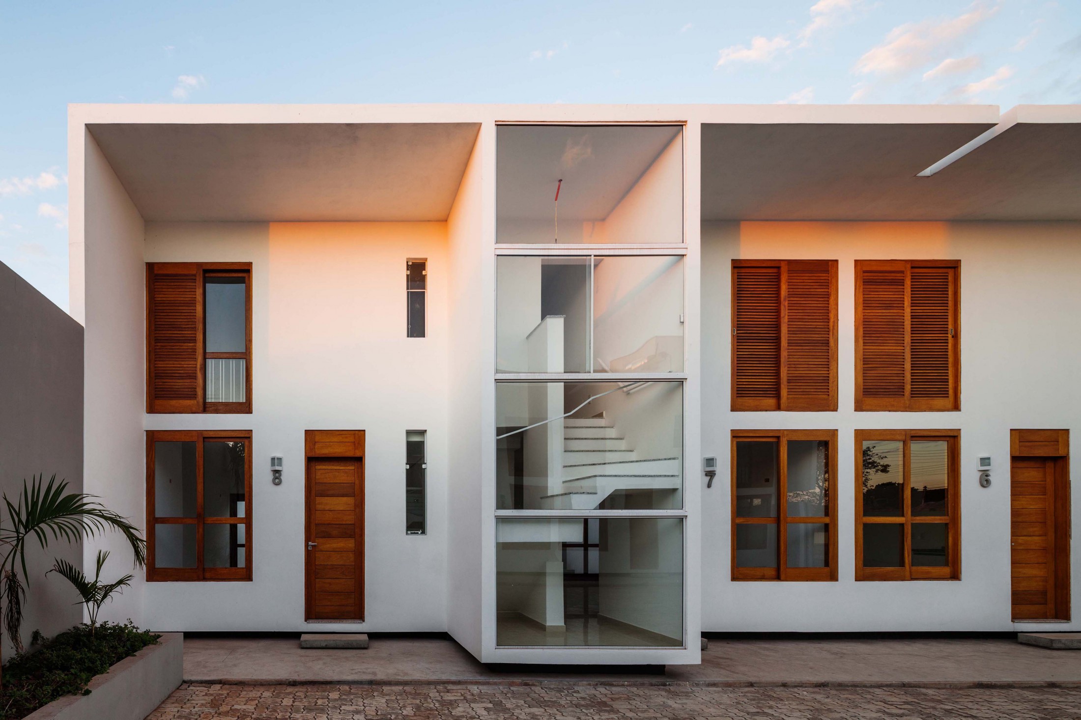 Concebidas segundo uma estruturação compacta, as unidades são articuladas duas a duas a partir de núcleos que abrigam as estruturas principais e todas as instalações da construção, além das circulações verticais. O entrelaçamento das atividades destes núcleos é o que possibilita que as unidades possam aproveitar as dimensões do lote da maneira mais eficiente. Suas modulações possibilitam o uso de estruturas convencionais de concreto armado e lajes pré-fabricadas, que tornam a construção mais rápida e econômica. Os fechamentos de alvenaria, placas cimentícias, policarbonato, telhas metálicas e madeira correspondem às condições construtivas as quais são expostas, fazendo uso da diversidade de materiais para uma composição de tecnologias tradicionais e contemporâneas.