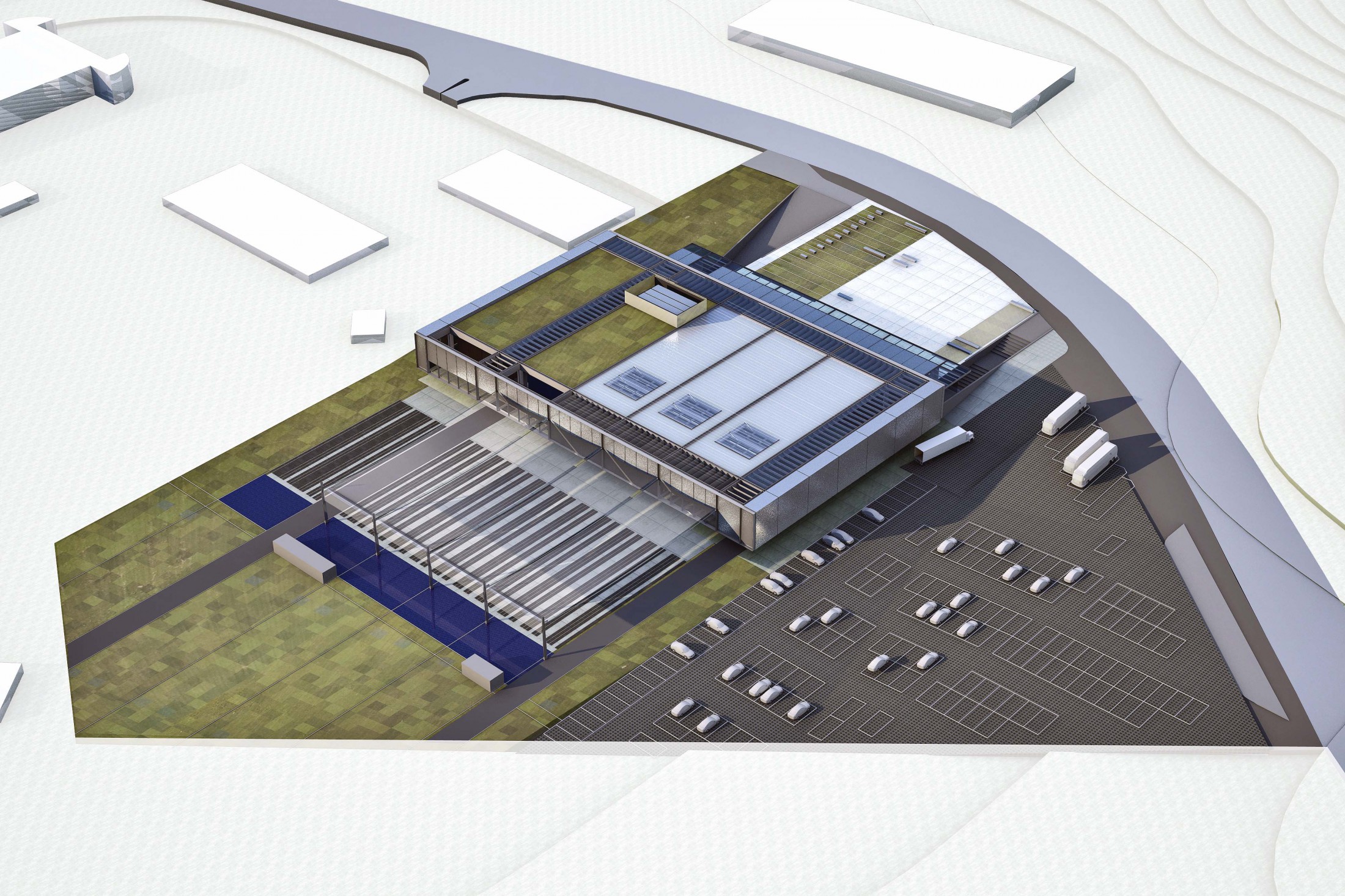 A implantação reduz interferências no terreno e possibilita a ocupação de todo o resto da área com vegetação de pequeno ou grande porte. O projeto preconiza a fluidez do espaço com a variação das densidades da vegetação, por meio do uso de espécies nativas e de grandes planos horizontais que determinam a composição do espaço. Foram priorizadas a continuidade espacial e a valorização do meio natural circundante. Assim, alguns dos limites foram definidos por linhas d’água, acompanhados por uma massa arbustiva densa que, além de criarem um controle, poderão dar continuidade a um circuito de coleta de águas pluviais que servirá para a manutenção de uma cisterna subterrânea, cujas águas serão utilizadas na manutenção das áreas externas e águas servidas. Para facilitar a penetração da água no solo foi adotado o uso de pisos semipermeáveis: cerâmica auto drenante (principais circulações), concregrama (estacionamentos) e pedrisco (caminhos periféricos). O espaço destinado a eventos externos contará com a infraestrutura necessária de sanitários, apoio, áreas de sombra e alimentação, originando uma variedade de percursos e espaços externos.
