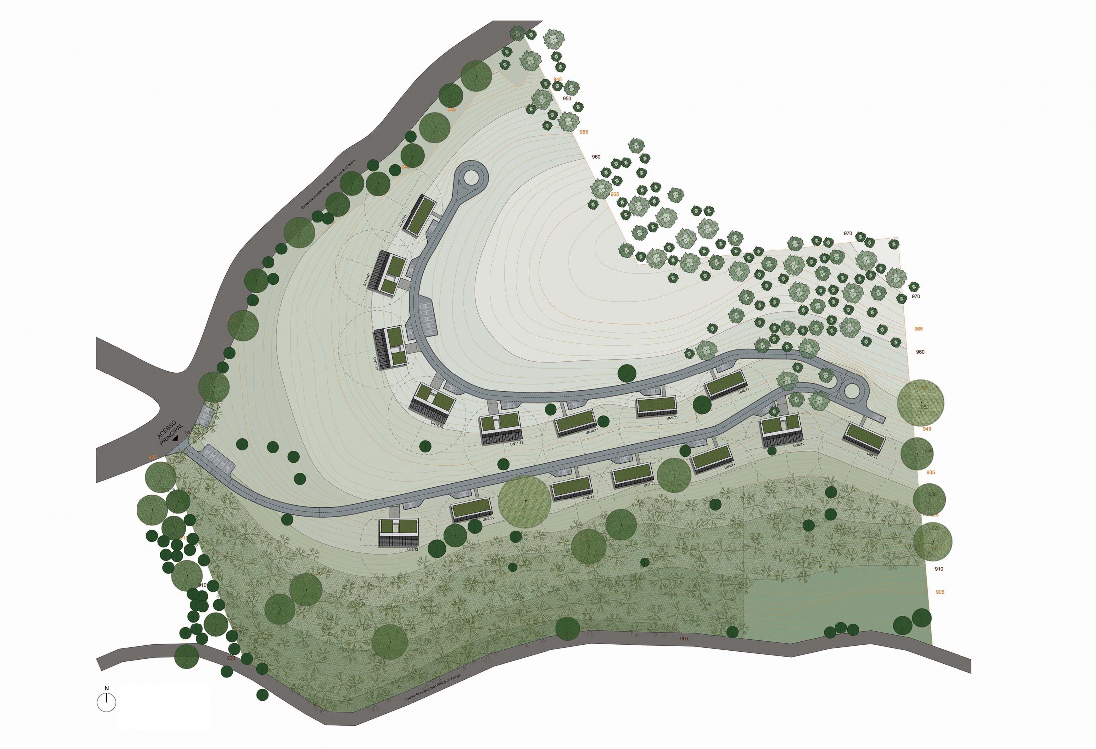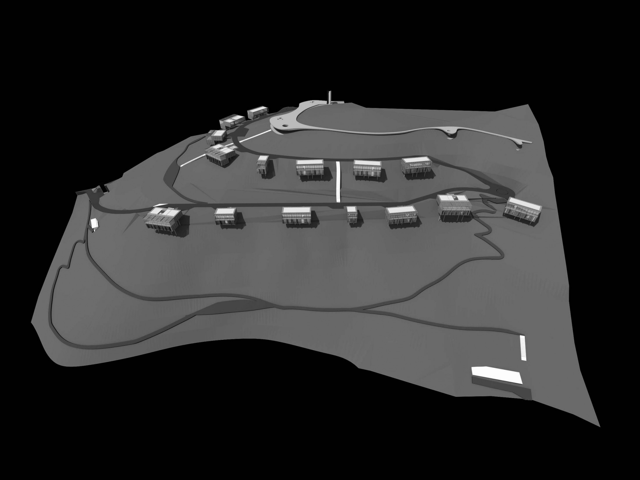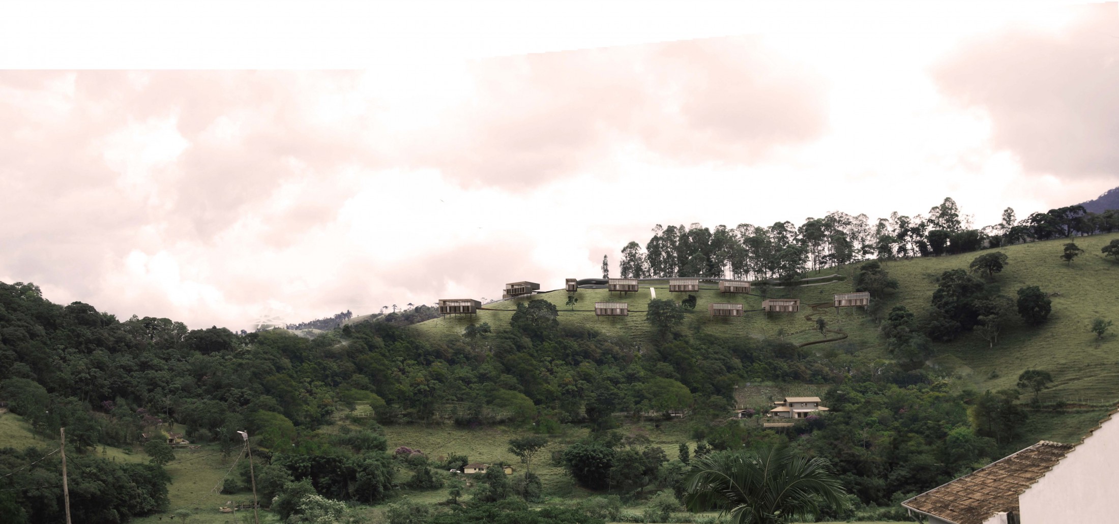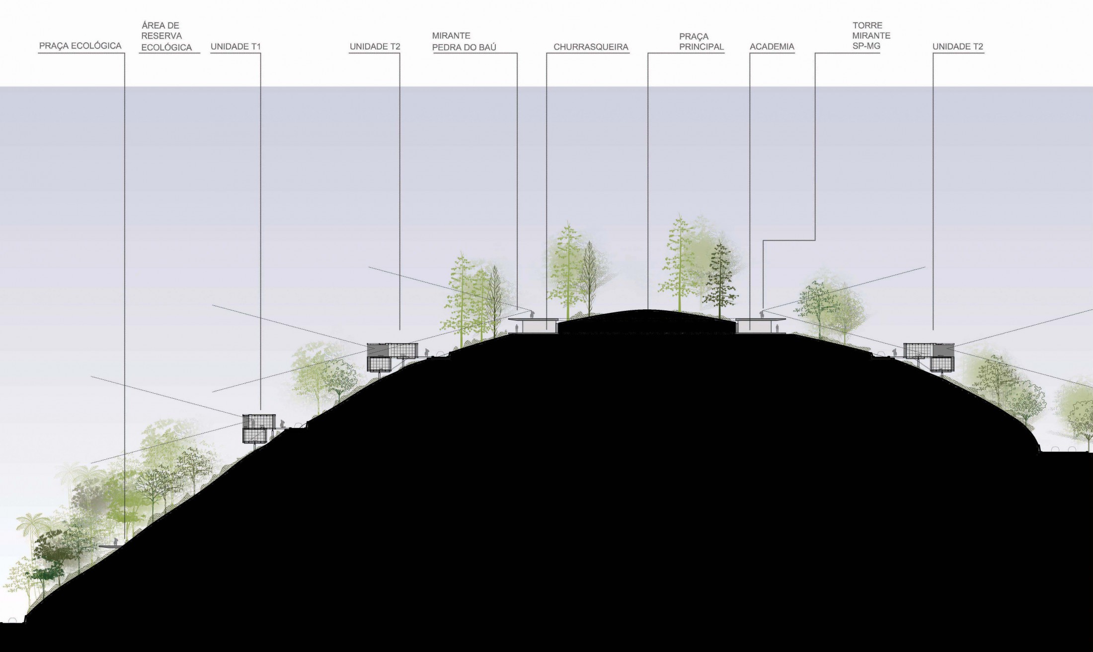 O projeto para o conjunto habitacional SBS se desenvolve a partir da convergência de vários conceitos que vão desde a apropriação sustentável do meio natural à criação de condições mais coletivas de convivência entre seus habitantes. Situado numa propriedade de topografia de grande complexidade, o projeto tem seus princípios conduzidos pela maneira mais precisa de se inserir qualquer construção numa paisagem como a que se encontra. Um número total de quinze unidades preserva uma ocupação baixa onde as áreas abertas assumem um papel fundamental para a qualidade do conjunto. Três tipologias definem as construções segundo seu tamanho e relação com o relevo, concebidas com tecnologia leve, racional e expressiva.