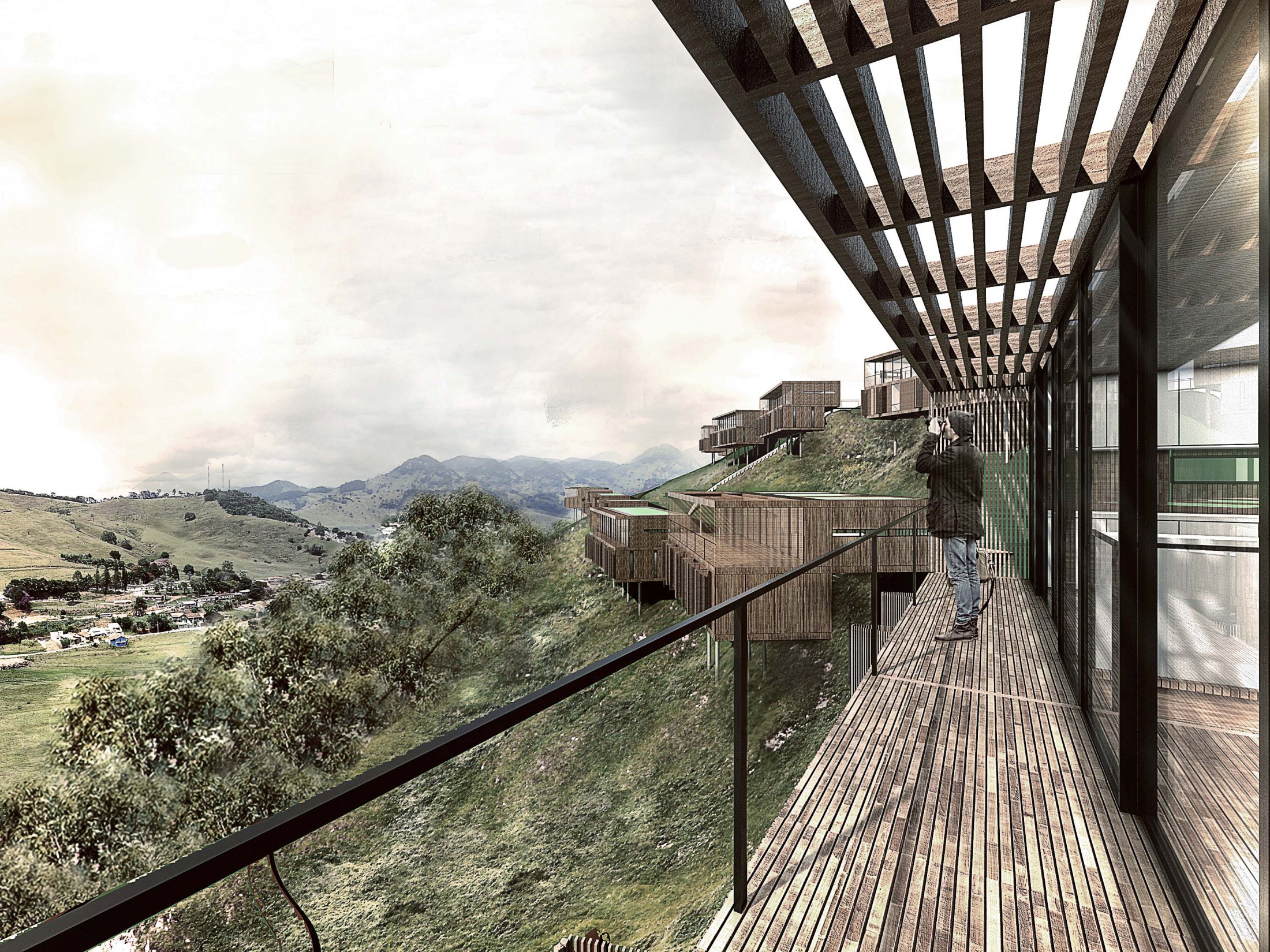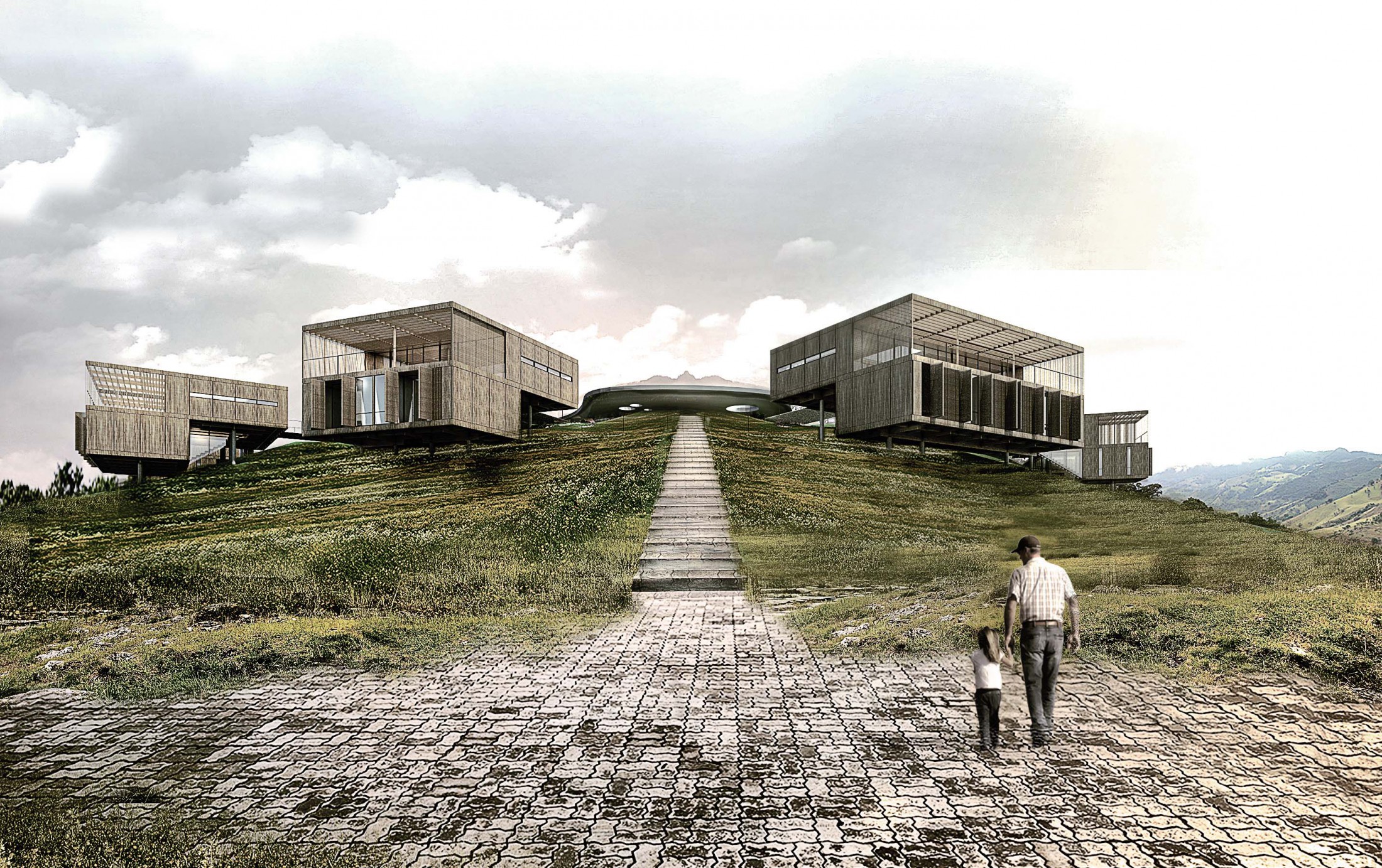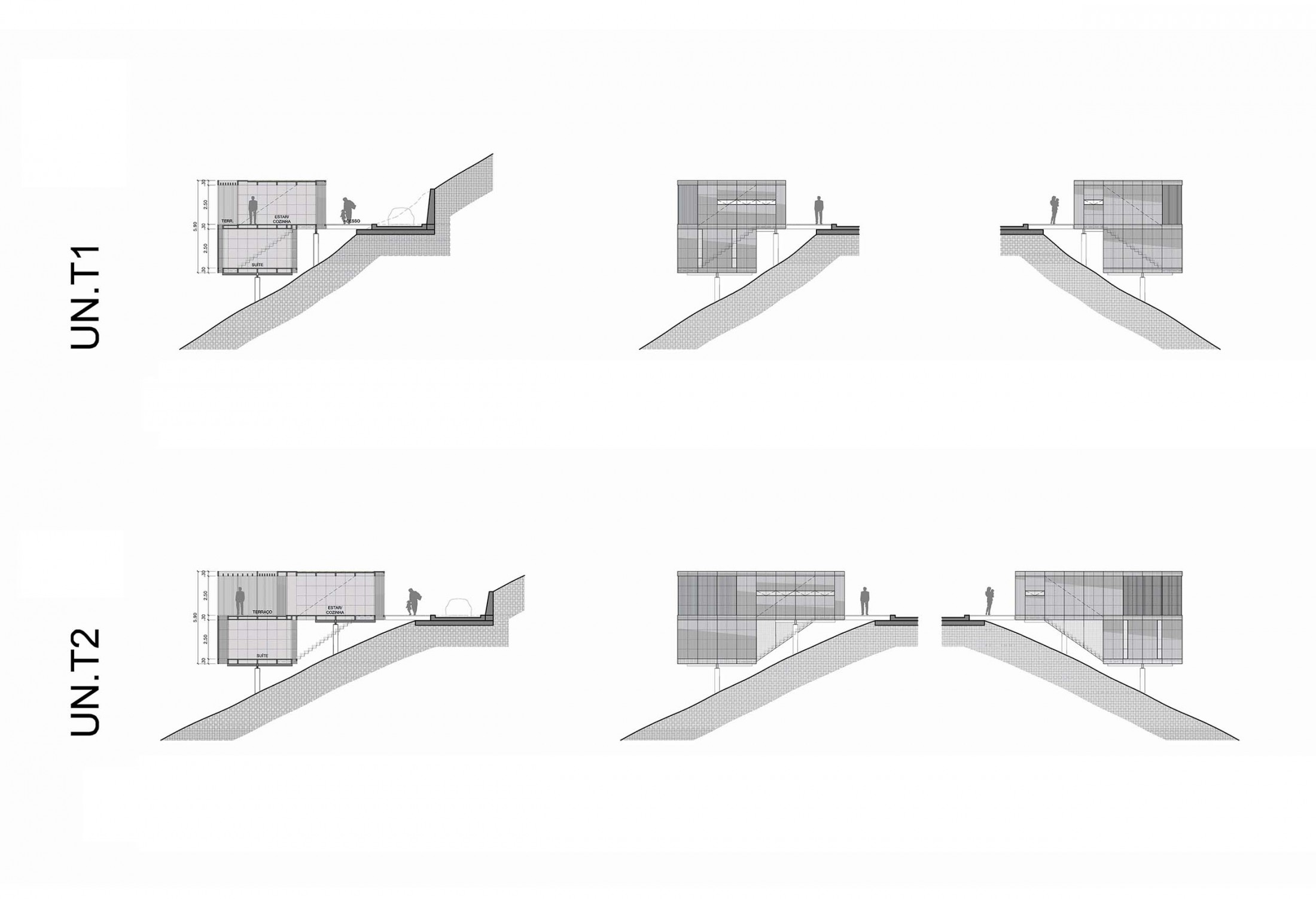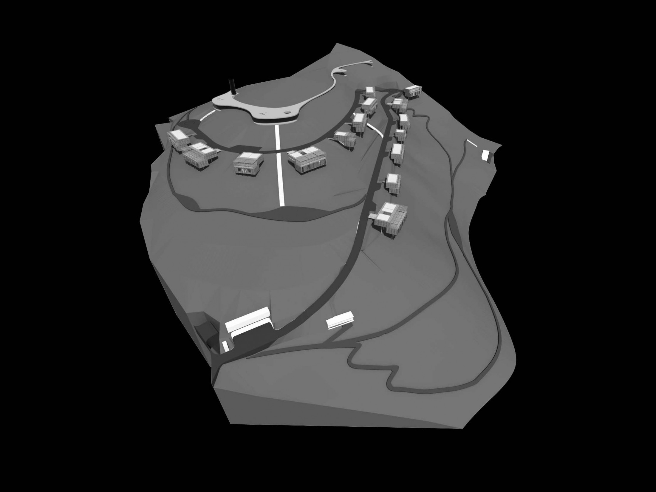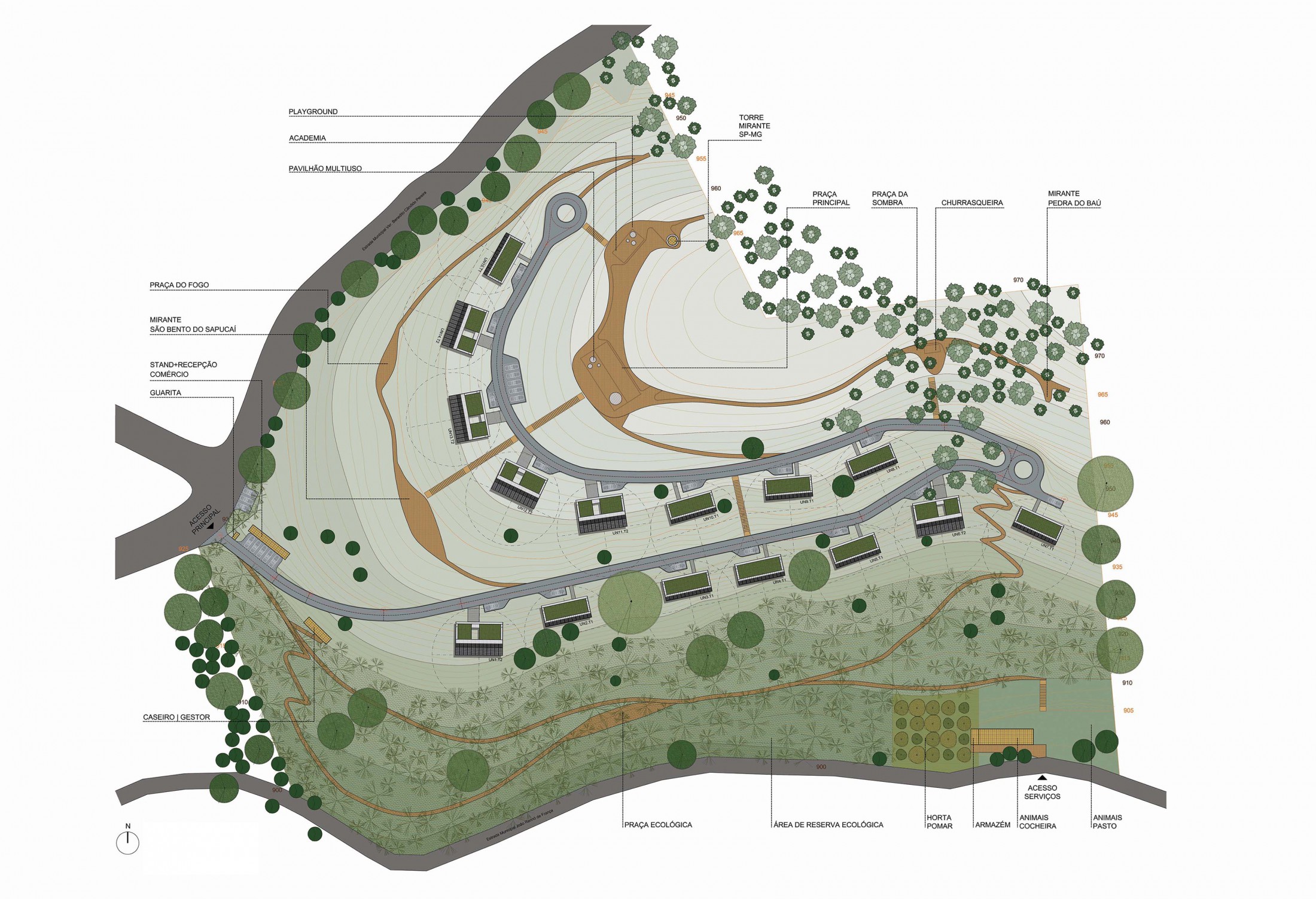 O projeto para o conjunto habitacional SBS se desenvolve a partir da convergência de vários conceitos que vão desde a apropriação sustentável do meio natural à criação de condições mais coletivas de convivência entre seus habitantes. Situado numa propriedade de topografia de grande complexidade, o projeto tem seus princípios conduzidos pela maneira mais precisa de se inserir qualquer construção numa paisagem como a que se encontra. Um número total de quinze unidades preserva uma ocupação baixa onde as áreas abertas assumem um papel fundamental para a qualidade do conjunto. Três tipologias definem as construções segundo seu tamanho e relação com o relevo, concebidas com tecnologia leve, racional e expressiva.