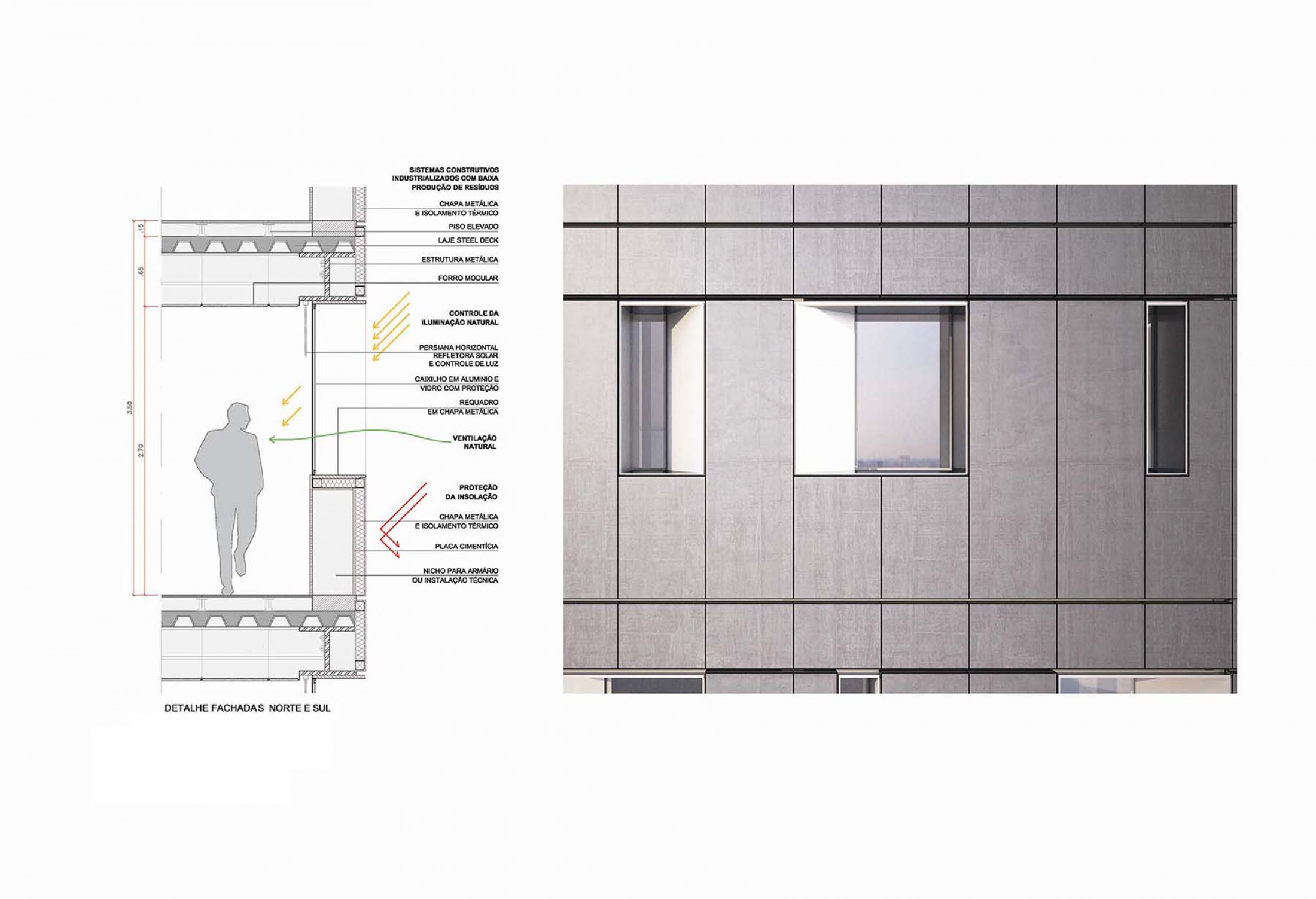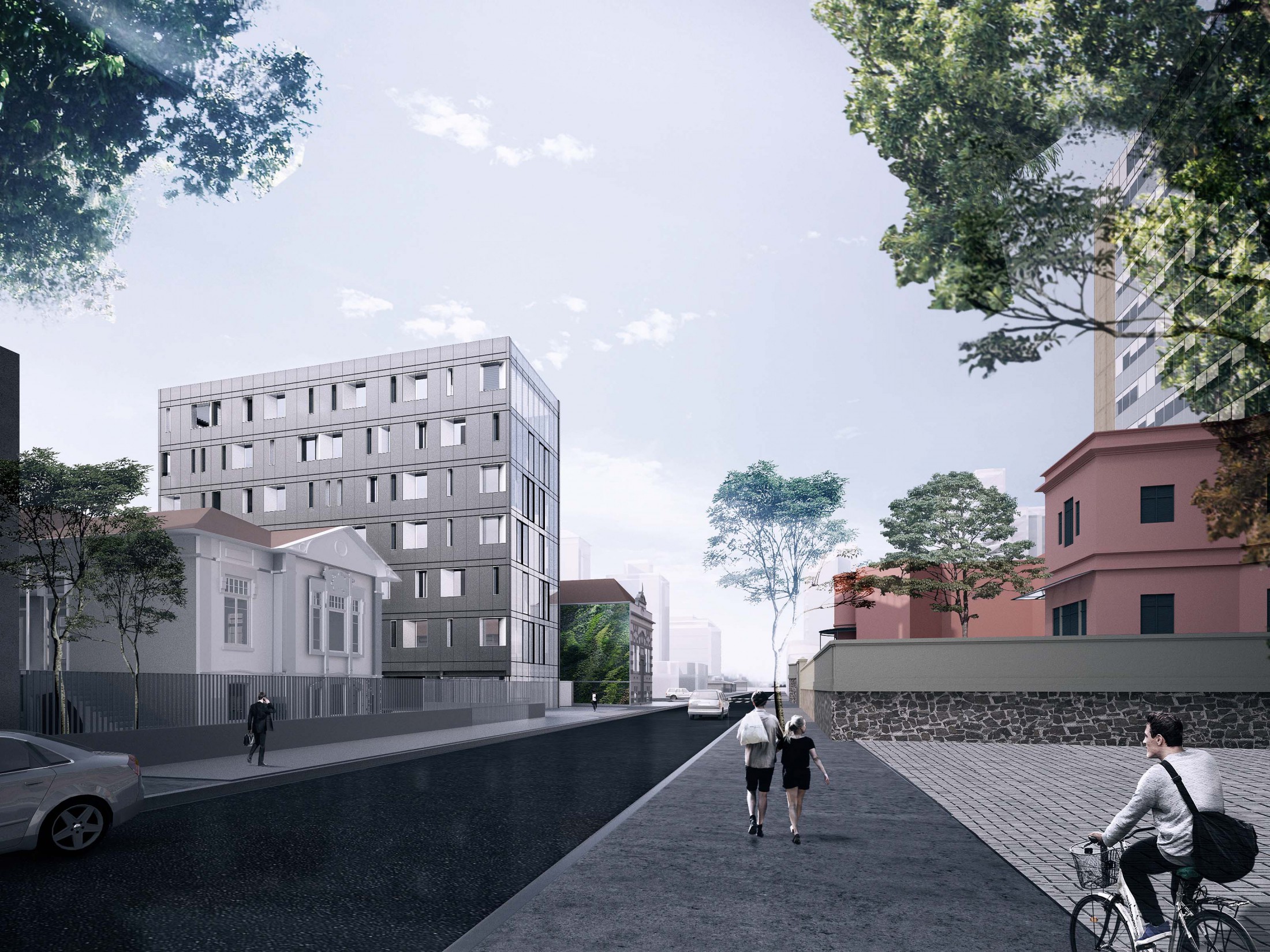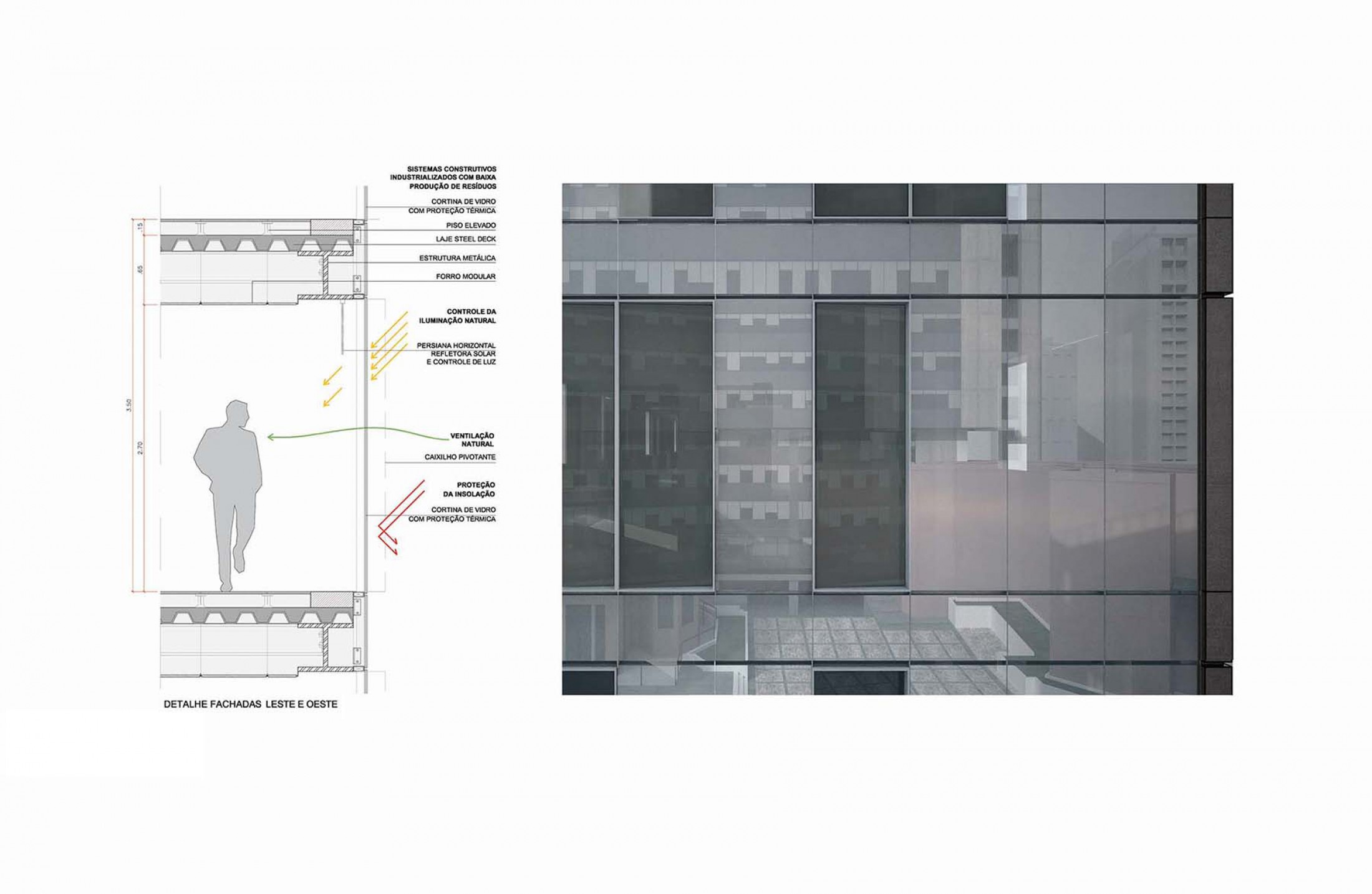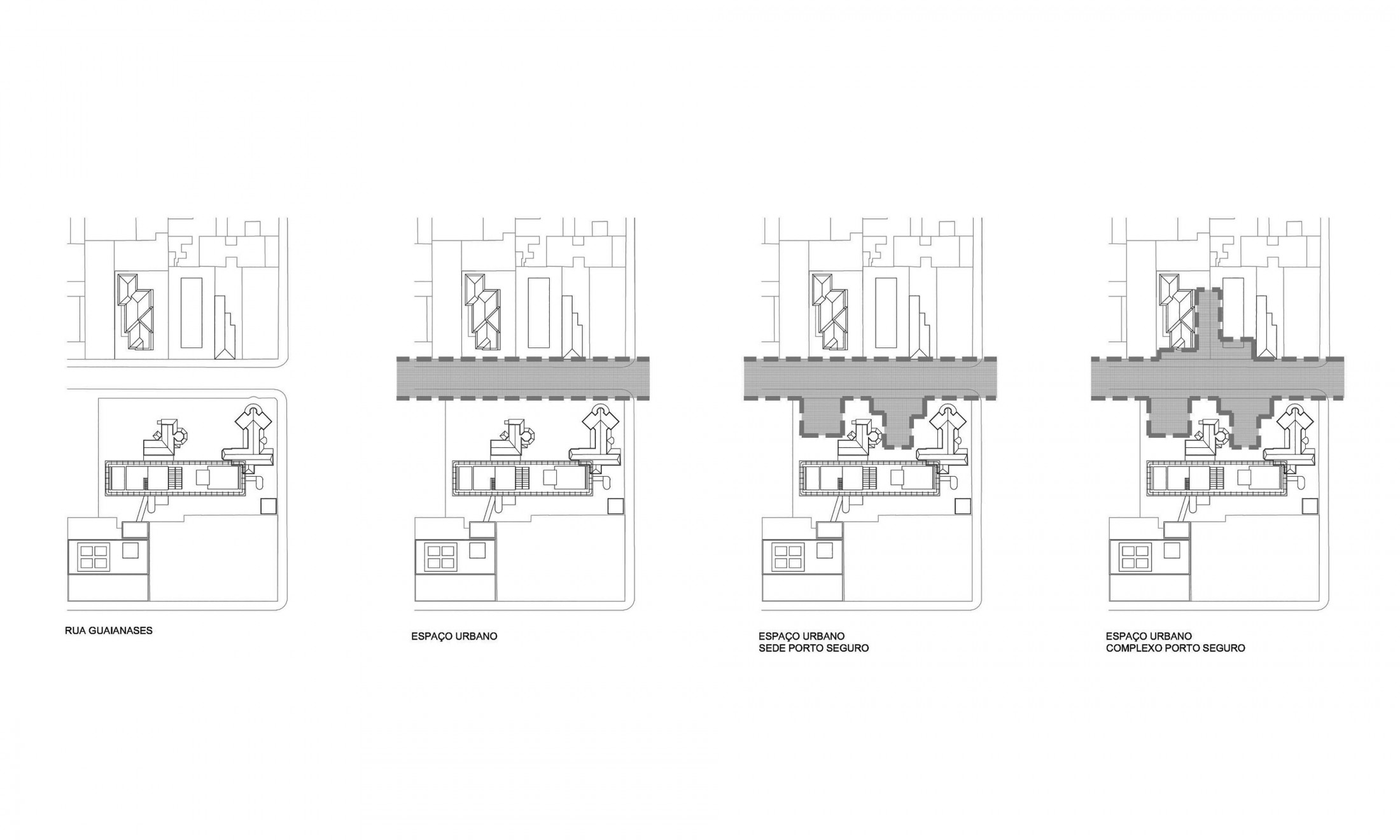 Parte do grande complexo de edifícios da empresa Porto Seguro, situada no bairro dos Campos Elíseos no centro de São Paulo, o local da nova unidade se insere em meio a edificações antigas e modernas da história da cidade. Foi a partir do diálogo entre o antigo e o novo, principalmente entre os seus vazios que os definem, que o projeto estabeleceu sua ocupação compacta e respeitosa com o entorno. Mais do que um edifício de escritórios, buscou-se criar um espaço de dimensão pública para a convivência e a contemplação do conjunto. Não obstante, o novo edifício também estabelece sua própria identidade através de sua materialidade e das inovadoras soluções de fachadas, diferenciadas entre áreas comuns e de trabalho.