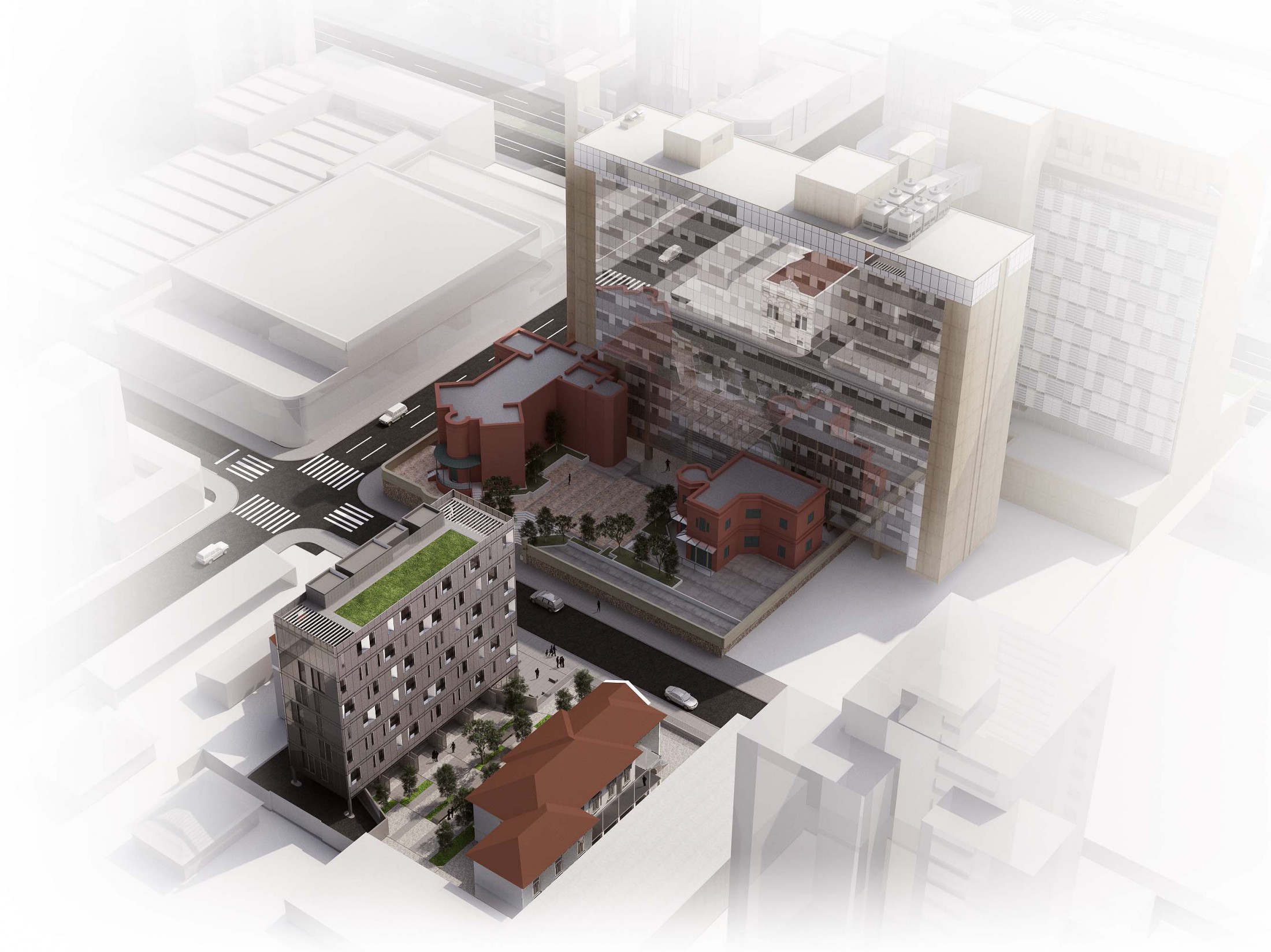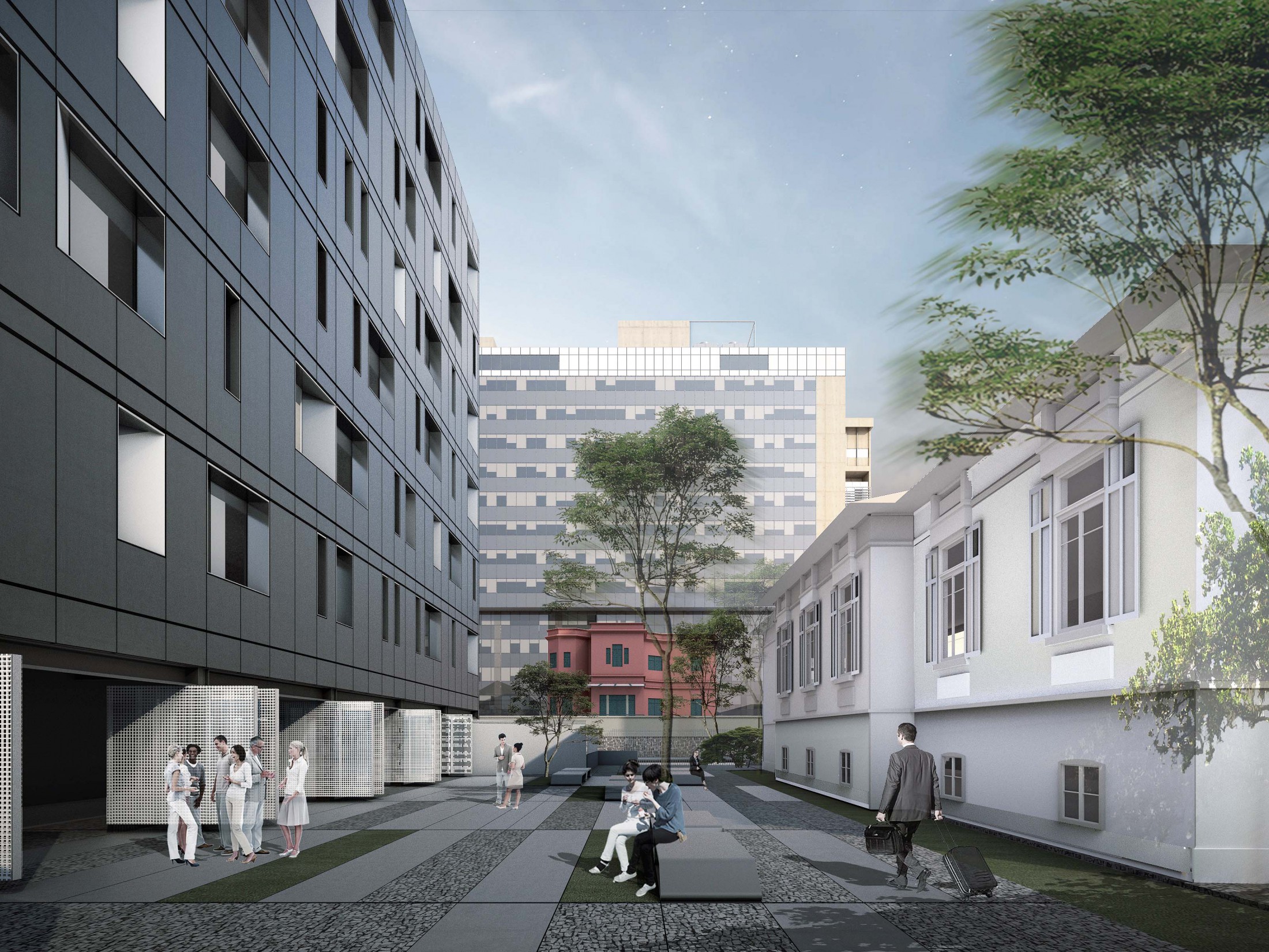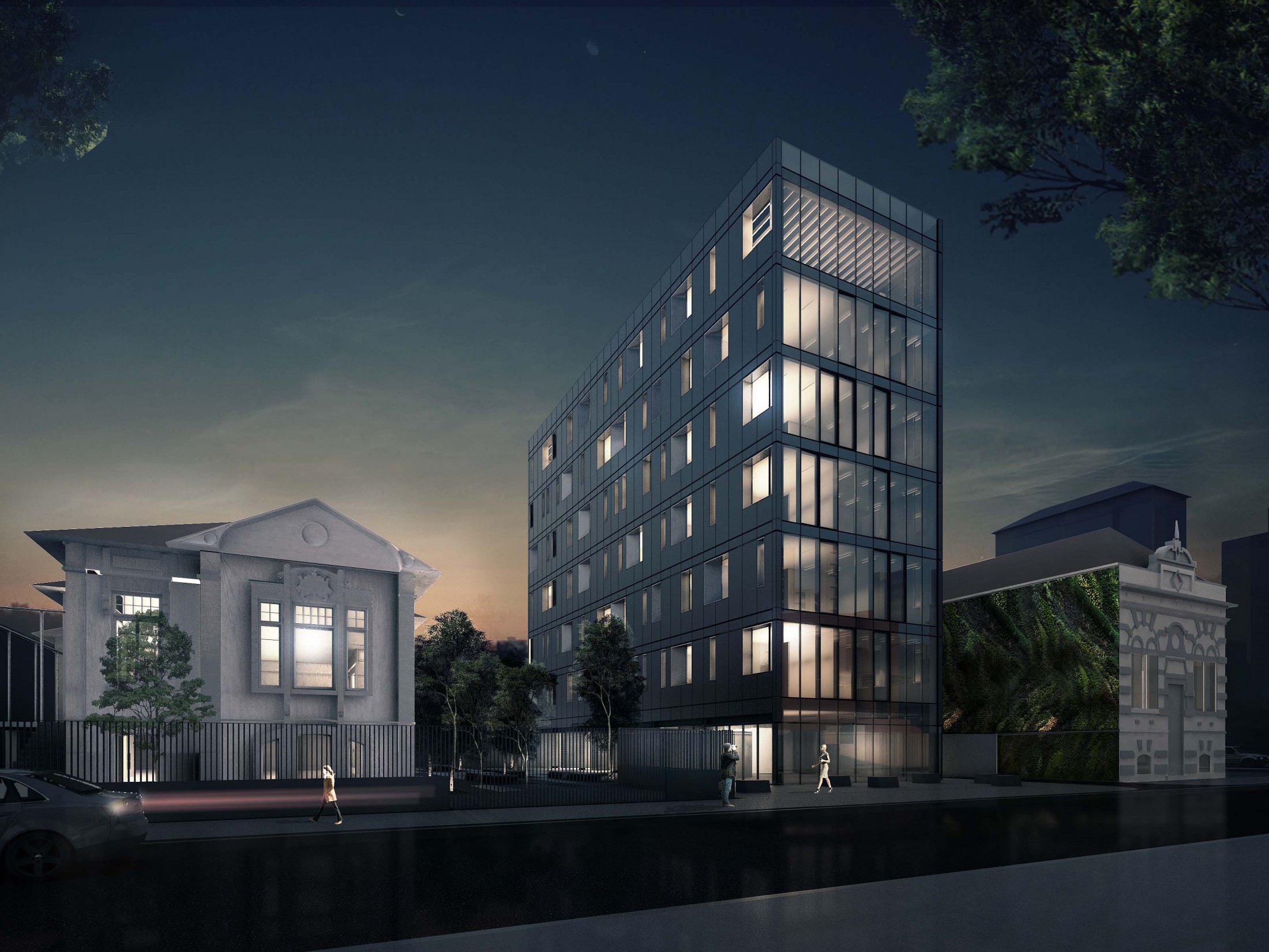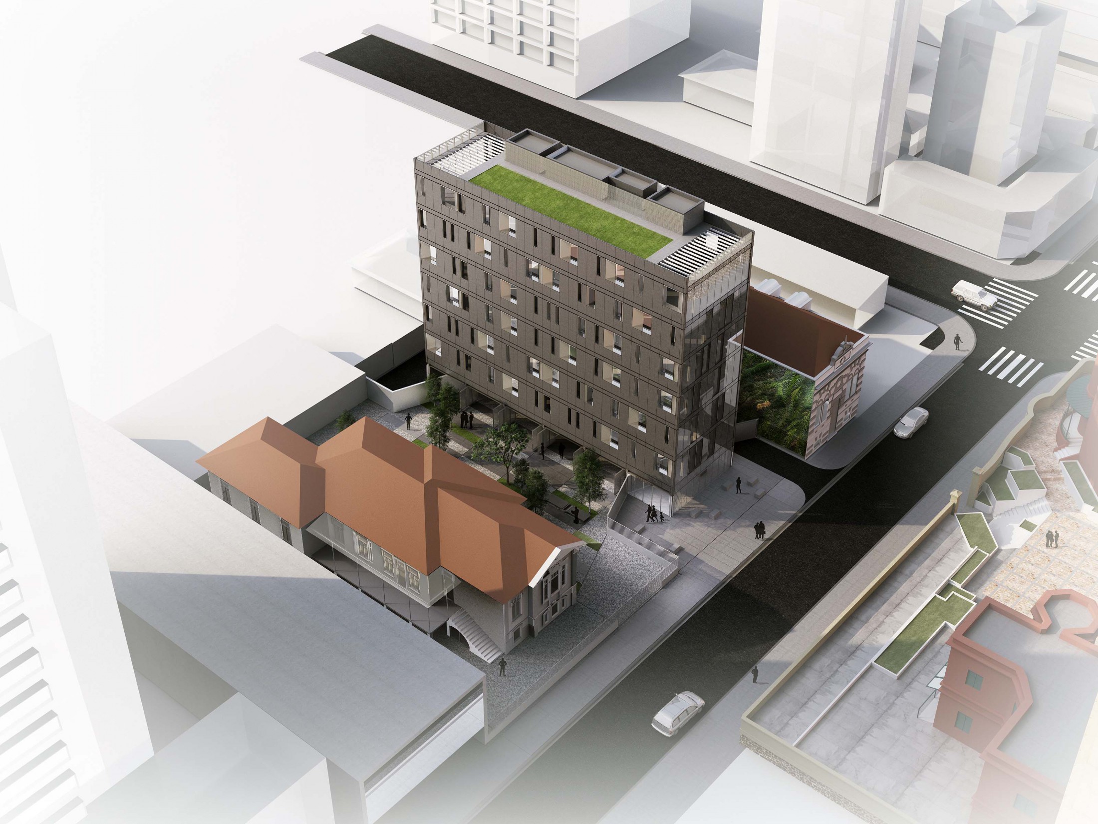 Parte do grande complexo de edifícios da empresa Porto Seguro, situada no bairro dos Campos Elíseos no centro de São Paulo, o local da nova unidade se insere em meio a edificações antigas e modernas da história da cidade. Foi a partir do diálogo entre o antigo e o novo, principalmente entre os seus vazios que os definem, que o projeto estabeleceu sua ocupação compacta e respeitosa com o entorno. Mais do que um edifício de escritórios, buscou-se criar um espaço de dimensão pública para a convivência e a contemplação do conjunto. Não obstante, o novo edifício também estabelece sua própria identidade através de sua materialidade e das inovadoras soluções de fachadas, diferenciadas entre áreas comuns e de trabalho.