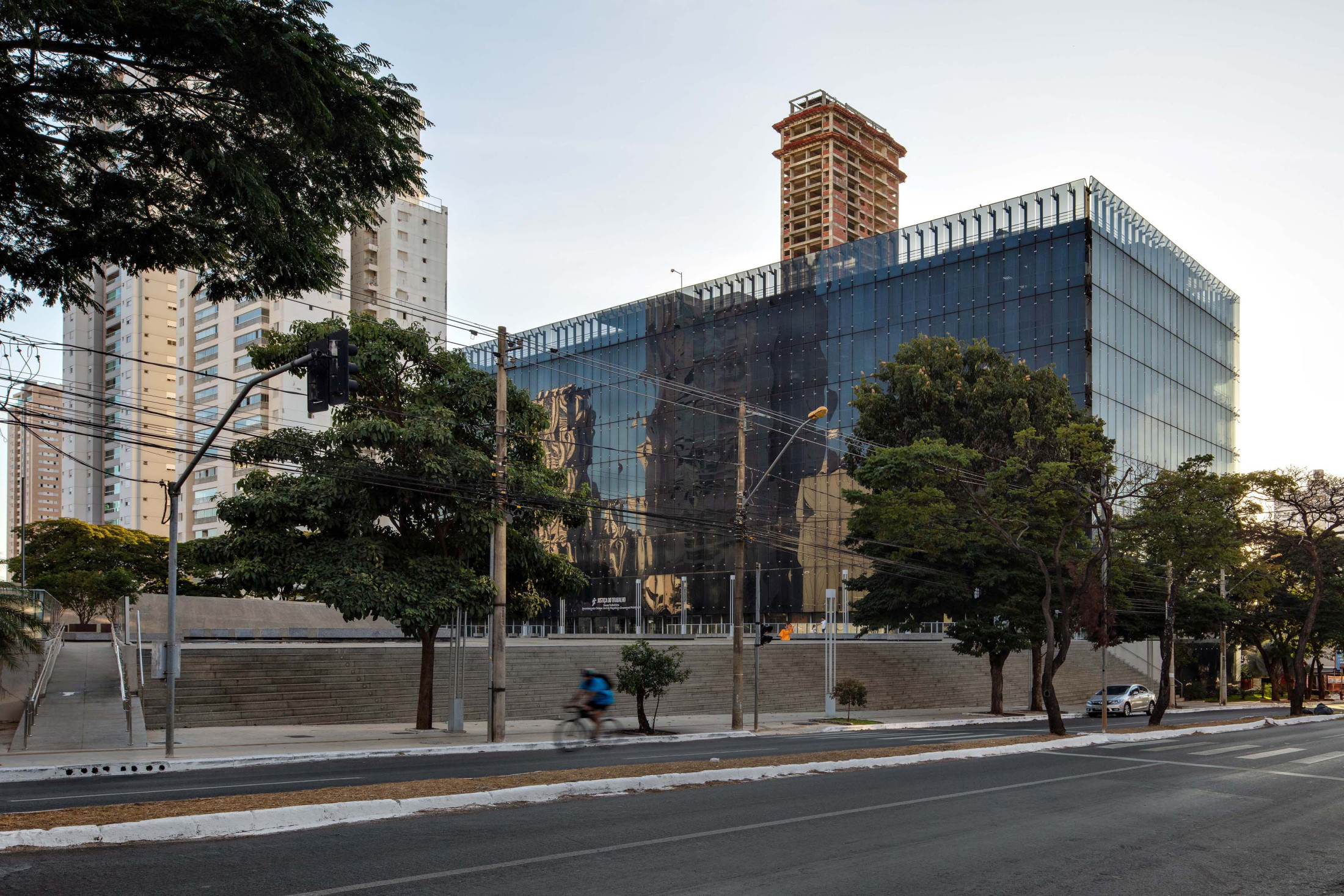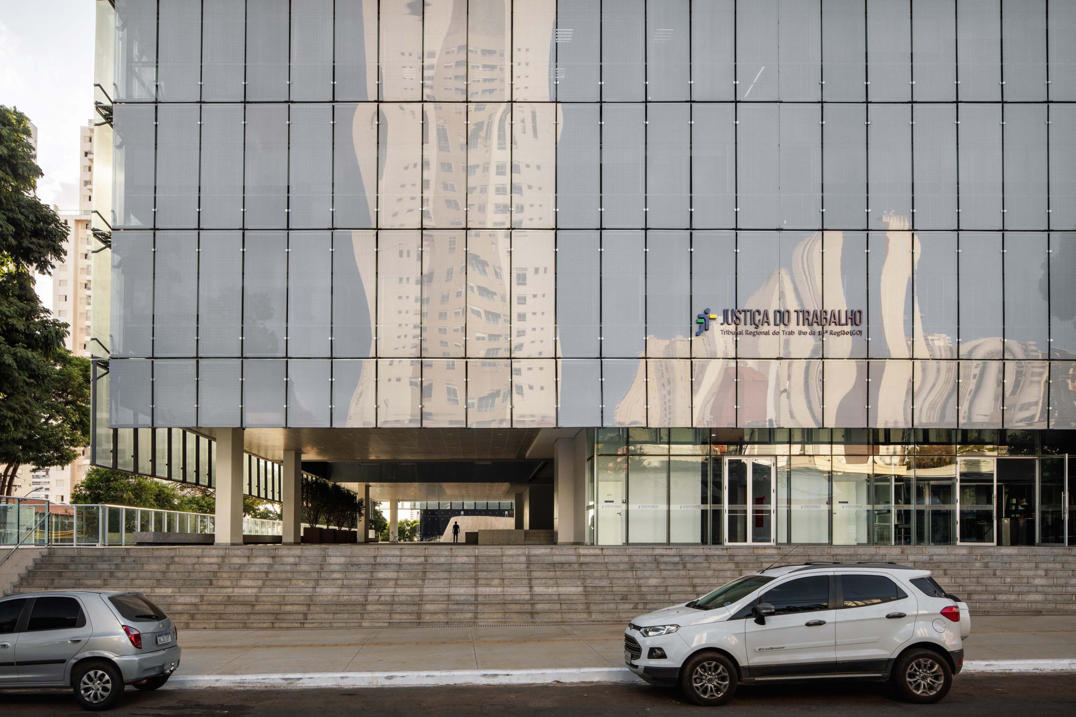 Diante do nobre grau de representatividade da instituição, a arquitetura serve-se de símbolos e significados para sua comunicação com o usuário e a cidade. Sua volumetria coesa, comum ao entorno predominantemente horizontal, adequa-se a este e ao mesmo tempo se impõe como um novo marco urbano necessário no contexto da cidade de Goiânia. Surge uma arquitetura de grande força expressiva, uma volumetria simples e de fácil leitura, porém de materialidade digna, e de uma trabalhada composição de volumes na implantação, que integra o edifício existente à nova arquitetura. A escala da praça e dos edifícios se intensifica mutuamente, revelando a respeitável função ali abrigada. Uma arquitetura imponente, mas de sutil diálogo. Dois volumes que se deparam, se refletem e interagem de diferentes maneiras, inclusive formais. A verticalidade das linhas, a força da geometria pura. E como simbolismo, as cores falam autonomamente. A neutralidade do branco e do preto, que a justiça carrega, unidos pelo vermelho, presente nos elementos de proteção solar das fachadas, mas sobretudo como referência à cor que representa a instituição do Direito. Além disso, o plenário é implantado no coração da praça pública, revelando sua importância frente ao cidadão. Em sua cobertura pequenas aberturas iluminam de maneira poética seu interior, como uma constelação, sendo dispostas precisamente como os Estados na bandeira nacional. Uma arquitetura que se comunica com o homem, que a ele oferece ao menos um instante de emoção, de pausa. À cidade, revela-se única no contexto local. Um novo símbolo de nobre instituição que só a arquitetura poderia criar.