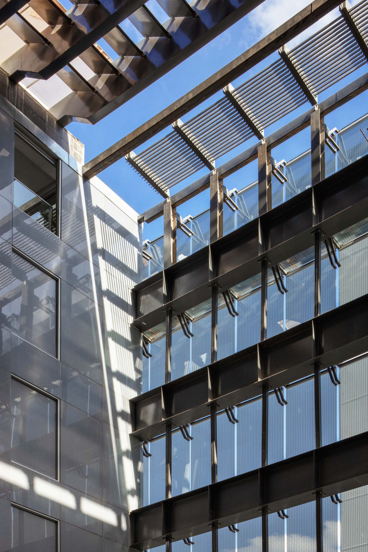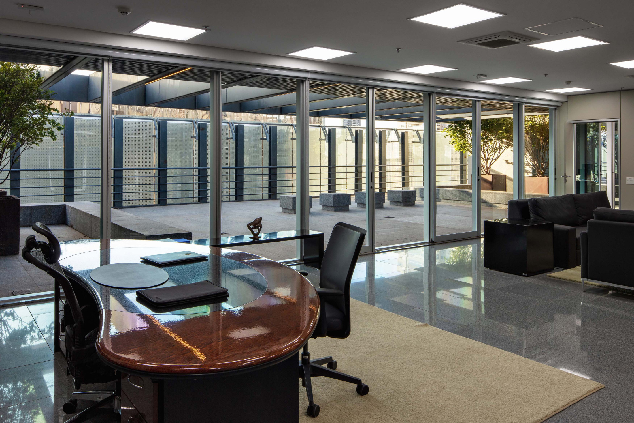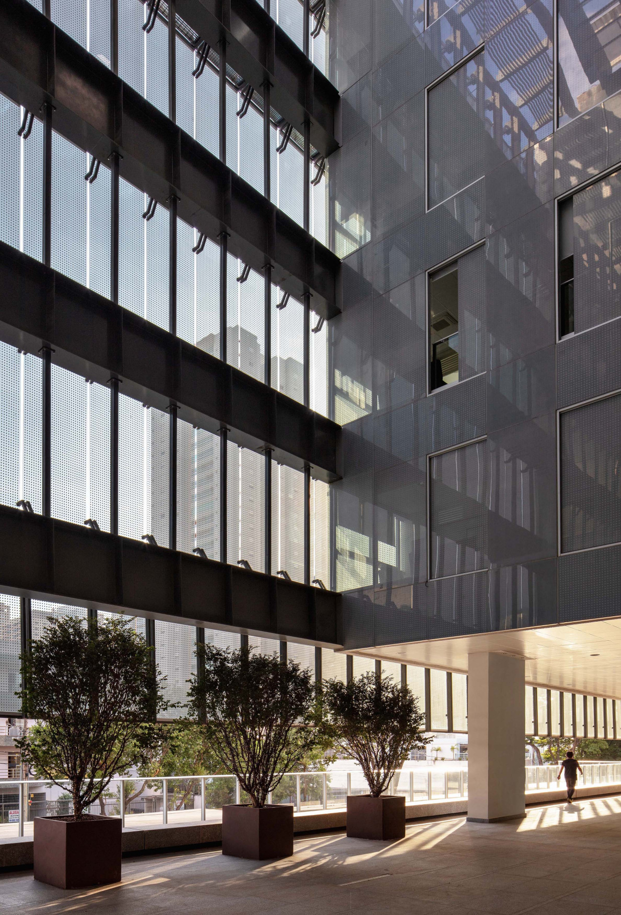 A proposta leva em consideração todos os aspectos referentes aos temas mencionados, desde a acessibilidade universal de todo o complexo até a economia de recursos. O projeto privilegia claramente a qualidade do estar dos espaços de trabalho, solucionando de modo bastante único, comparado a outros projetos de programa similar, problemas de iluminação e ventilação natural. O pé-direito livre de 2.70m, somado com praticamente todas as salas dispostas diretamente nas fachadas, acarreta numa redução significativa da utilização de energia devido ao alto aproveitamento da luz natural. A versátil utilização do recurso da pele de vidro faz com que o edifício mantenha sua força e sobriedade formal, aparentemente igual em todas as fachadas, porém internamente solucionado de modo distinto em cada caso. Enquanto nas fachadas sul e nas voltadas ao pátio interno, utiliza-se uma única pele; nas fachadas norte somam-se, internamente, uma segunda pele criando uma eficiente proteção contra radiação solar, além do uso de brises interiores de desenho inovador, também colaborando para a eficiência energética e imagem da arquitetura. As fachadas leste e oeste, de dimensões reduzidas compõem-se das duas soluções. Sendo assim, minimiza-se de modo significativo o uso do ar condicionado. A reutilização de águas servidas é feita através de espelhos d’água na cobertura dos edifícios e áreas impermeabilizadas, sendo providas de tecnologia de tratamento e reserva para sua devida reutilização. O projeto contempla ainda a possibilidade de gênese de recursos de energia renovável, seja através da cobertura ou até mesmo das próprias fachadas.