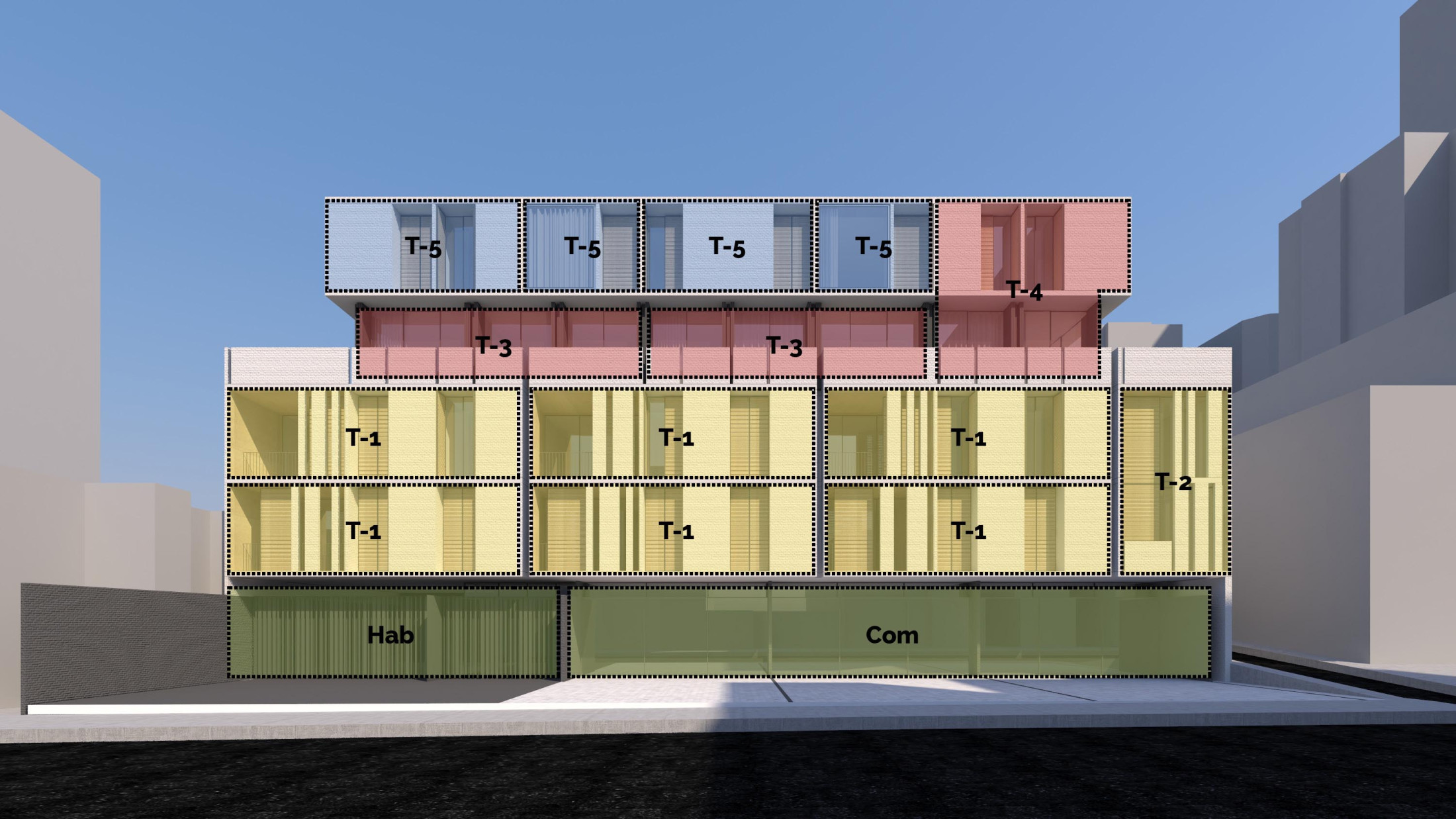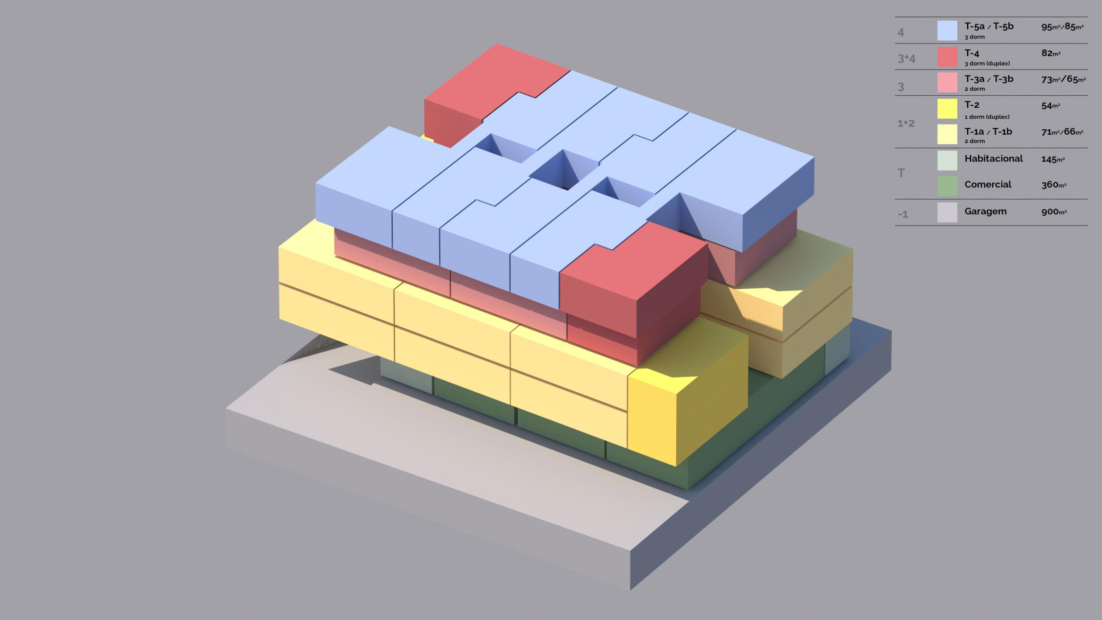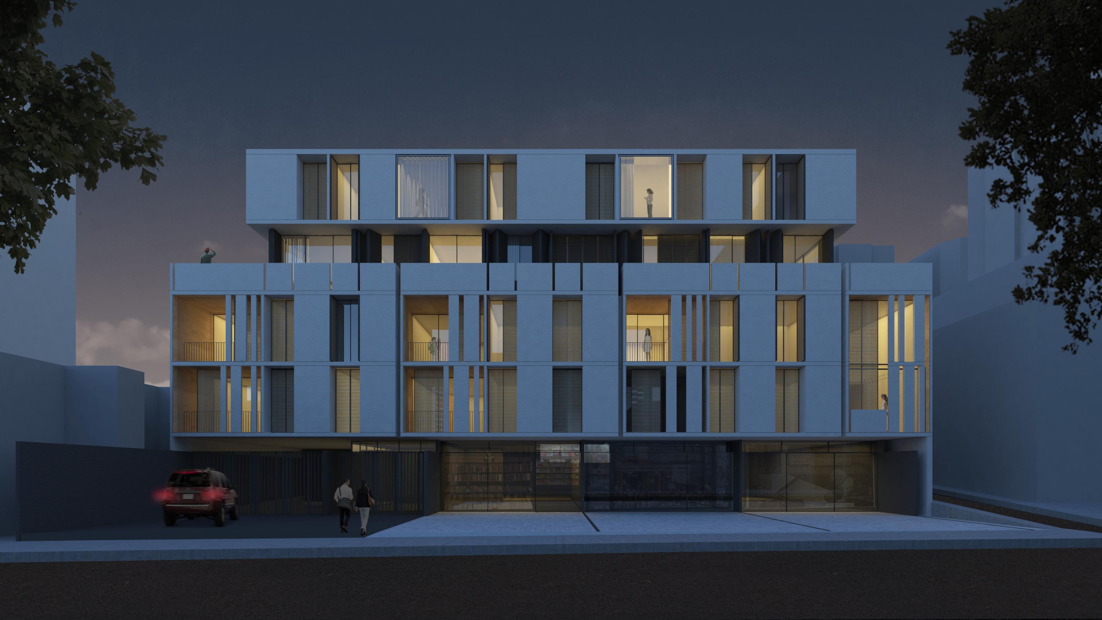 Em cidades como São Paulo, cuja paisagem urbana é muito determinada pela iniciativa privada que afeta diretamente nossas relações sociais, é cada vez mais necessário que suas iniciativas superem a noção de meros empreendimentos imobiliários e assumam um compromisso com a construção de empreendimentos sociais capazes de promover encontros mais amistosos entre as esferas públicas e privadas que compõe nossa realidade. É assim que buscamos nesse edifício de apartamentos justas medidas de densidade, escala e organização que contribuam com a atmosfera de vizinhança característica de seu bairro. Respeitando as legislações e potenciais urbanísticos, concebemos uma presença aberta, sem muros e promotora da convivência social. Seu recuo frontal origina um largo para onde se abre a fachada ativa de seu térreo de comércios e/ou serviços: um convite para uma presença de pessoas e atividades urbanas que, por si só, fortalece a instauração de um lugar público mais seguro e cordial. Sobre ele estão quatro pavimentos de habitação definidos pela diversidade: oito tipologias variáveis (55m² a 155m², simples ou duplex, com ou sem terraços) cujas configurações espaciais ampliam a mistura de perfis individuais ou compartilhados que ali podem morar. A qualidade das unidades é enriquecida por varandas de transição entre interior e exterior, além da combinação entre tijolos cerâmicos e madeira. Uma arquitetura que evidencia a importância mútua dos olhares íntimos e coletivos entre a habitação e a cidade.