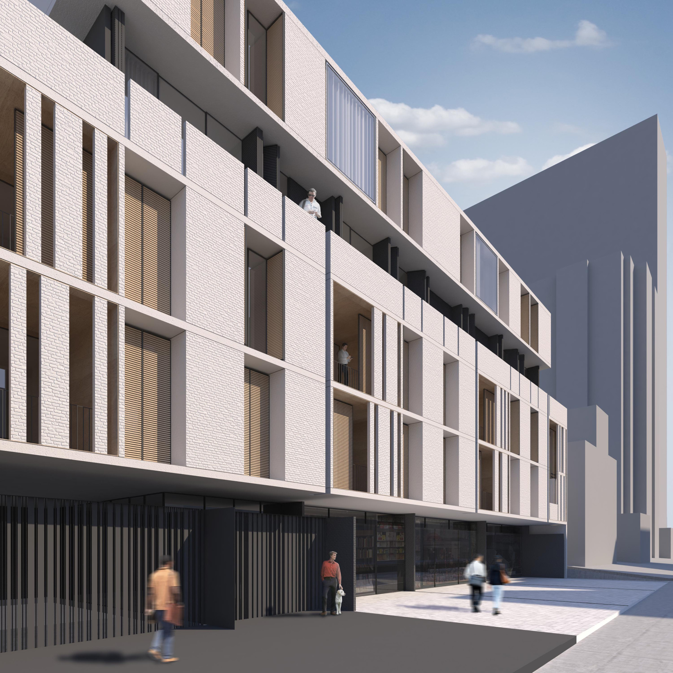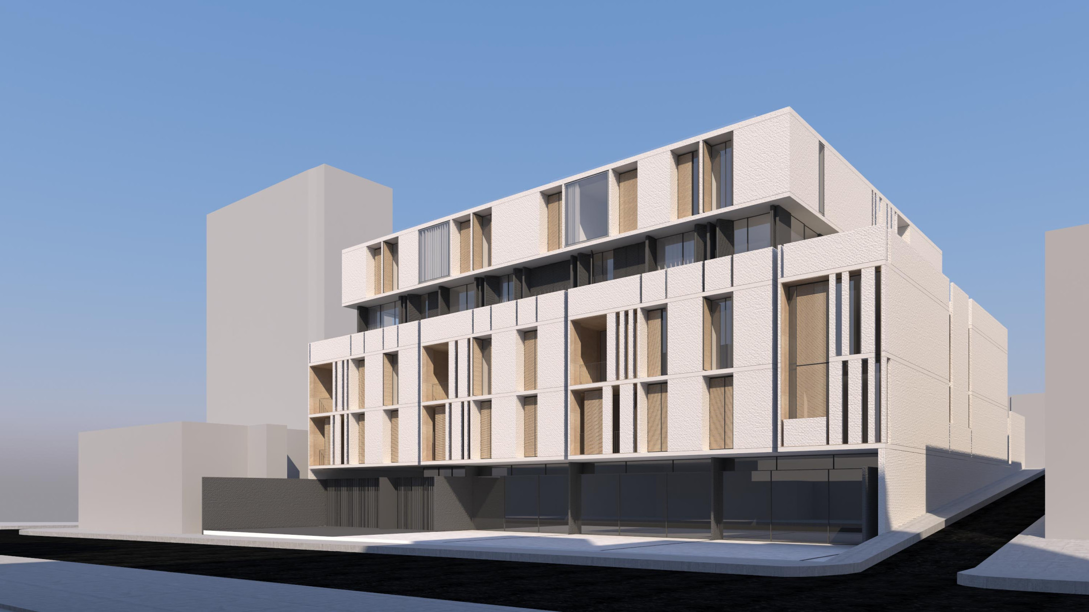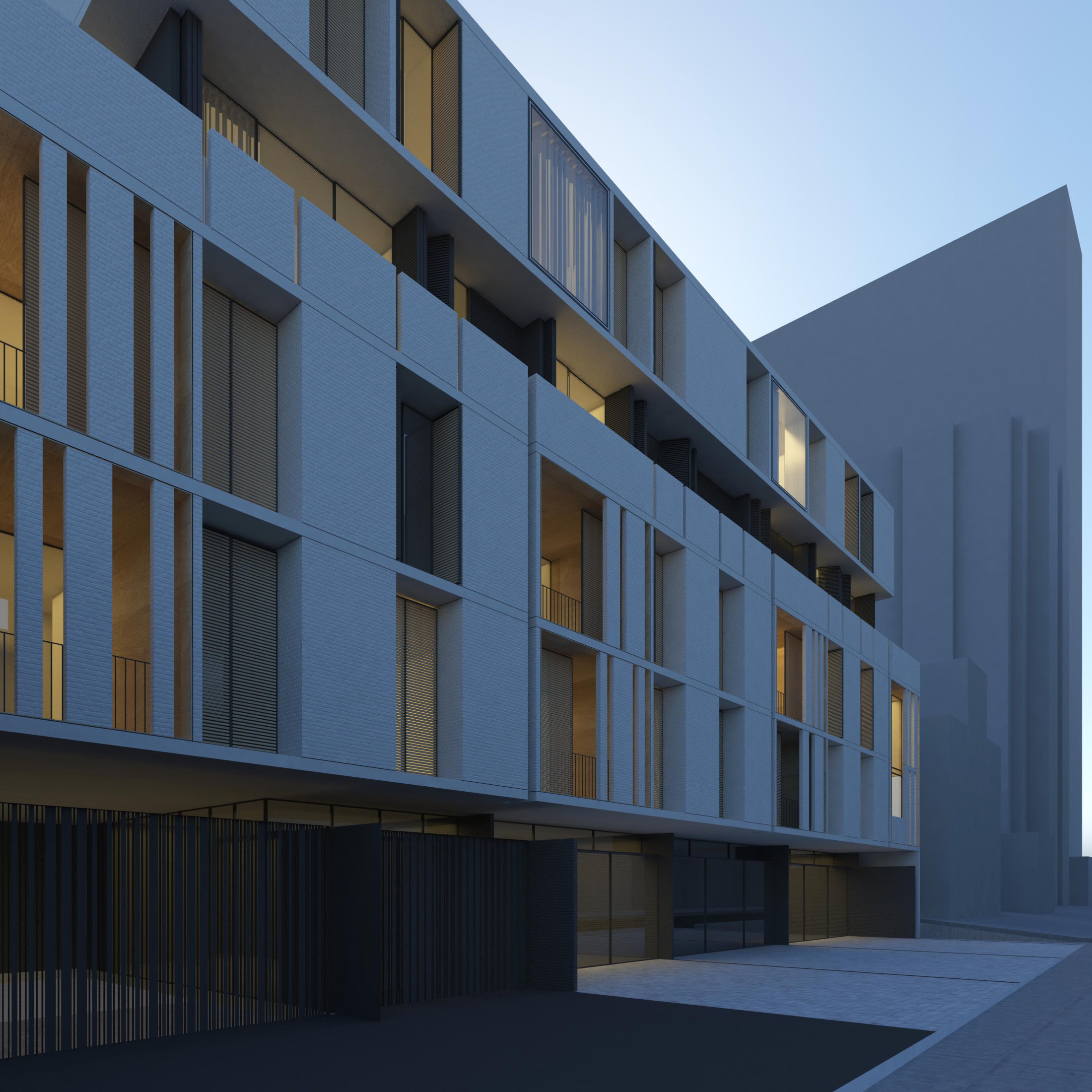 Em cidades como São Paulo, cuja paisagem urbana é muito determinada pela iniciativa privada que afeta diretamente nossas relações sociais, é cada vez mais necessário que suas iniciativas superem a noção de meros empreendimentos imobiliários e assumam um compromisso com a construção de empreendimentos sociais capazes de promover encontros mais amistosos entre as esferas públicas e privadas que compõe nossa realidade. É assim que buscamos nesse edifício de apartamentos justas medidas de densidade, escala e organização que contribuam com a atmosfera de vizinhança característica de seu bairro. Respeitando as legislações e potenciais urbanísticos, concebemos uma presença aberta, sem muros e promotora da convivência social. Seu recuo frontal origina um largo para onde se abre a fachada ativa de seu térreo de comércios e/ou serviços: um convite para uma presença de pessoas e atividades urbanas que, por si só, fortalece a instauração de um lugar público mais seguro e cordial. Sobre ele estão quatro pavimentos de habitação definidos pela diversidade: oito tipologias variáveis (55m² a 155m², simples ou duplex, com ou sem terraços) cujas configurações espaciais ampliam a mistura de perfis individuais ou compartilhados que ali podem morar. A qualidade das unidades é enriquecida por varandas de transição entre interior e exterior, além da combinação entre tijolos cerâmicos e madeira. Uma arquitetura que evidencia a importância mútua dos olhares íntimos e coletivos entre a habitação e a cidade.