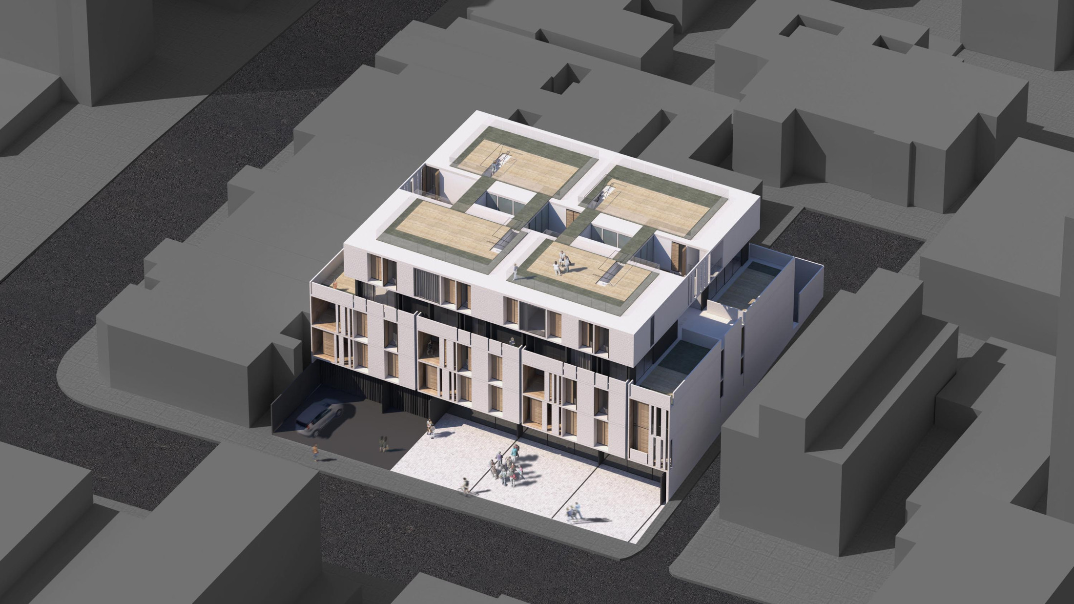 Área do Projeto: 3.652m² (30 unidades habitacionais + 3 comerciais)