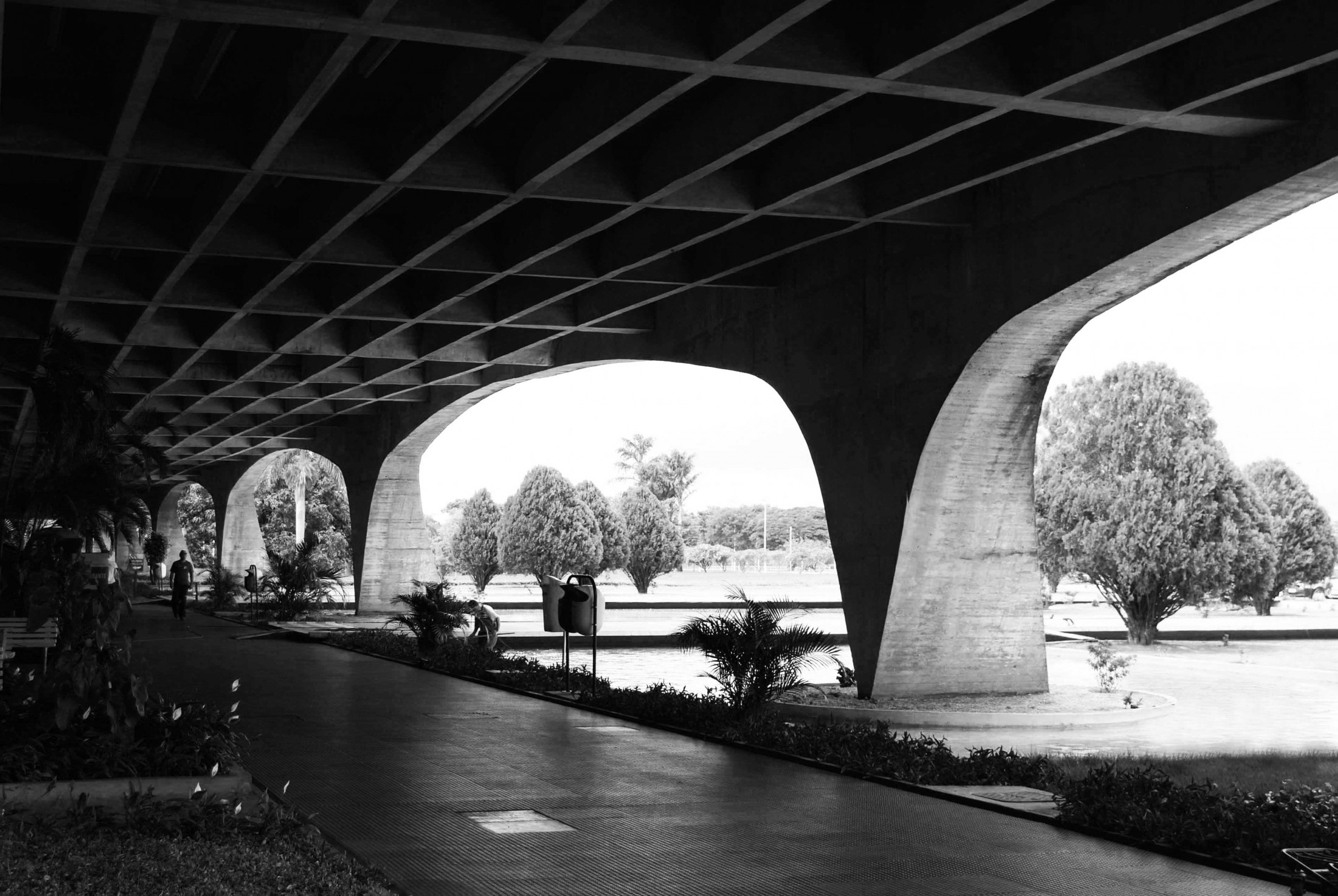 Foi assim que, após essa tarde de visita, tomei meu caminho de retorno. Na estrada que me permitia contemplar de maneira extraordinária o esplendor dos monumentos brancos de nossa capital à outra margem do Lago Paranoá recordei-me da mensagem de Malraux: “Salve, capital intrépida, que vem lembrar ao mundo que os monumentos estão a serviço do espírito!” (6). Perguntando-me, mais uma vez, sobre o significado de tudo aquilo que via ao longe, Brasília me reafirmava que este augúrio era real. Sentia meu espírito acolhido por cada uma de suas construções, e a Escola de Administração Fazendária tornava-se mais uma delas. Sob sua sombra, foi como se o planalto todo pairasse numa leveza sem fim e me lembrasse de como pode ser simples a arquitetura.