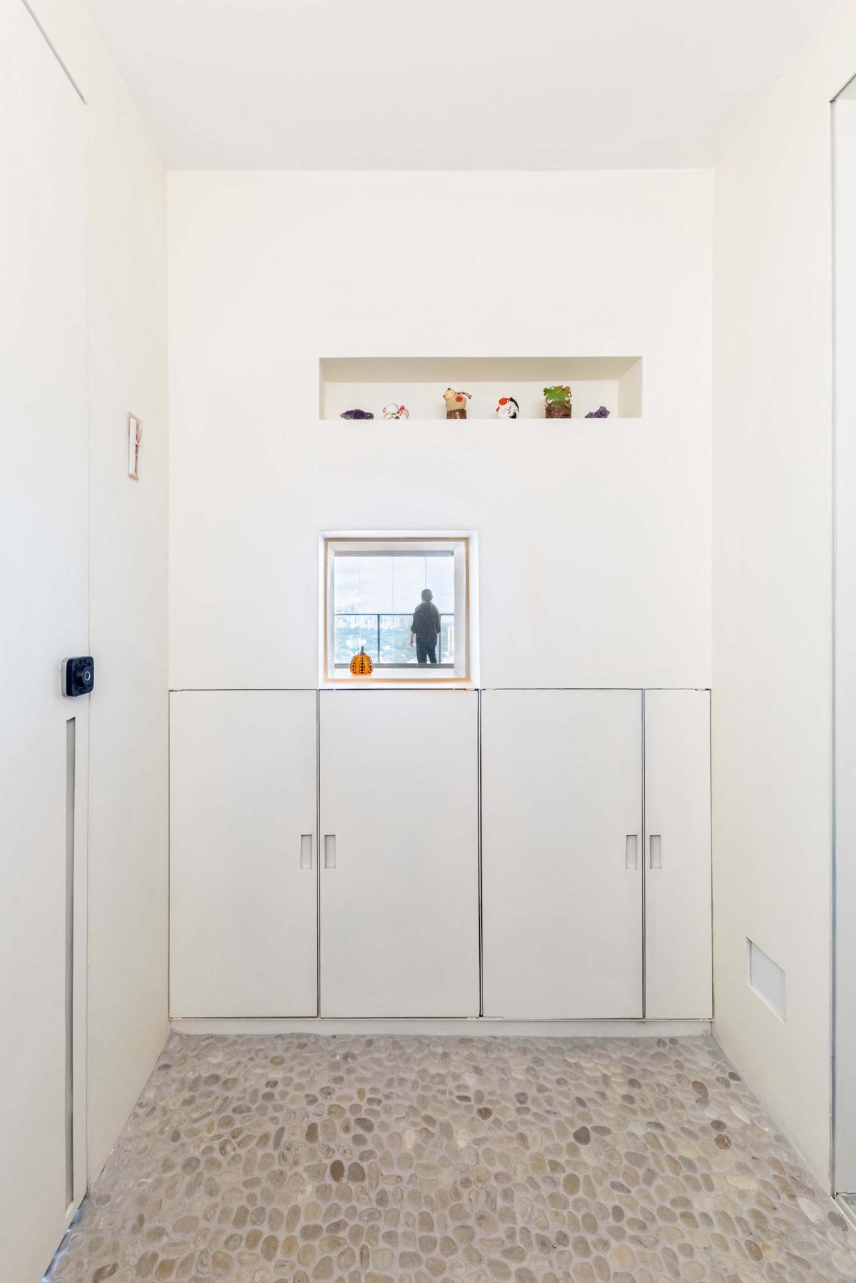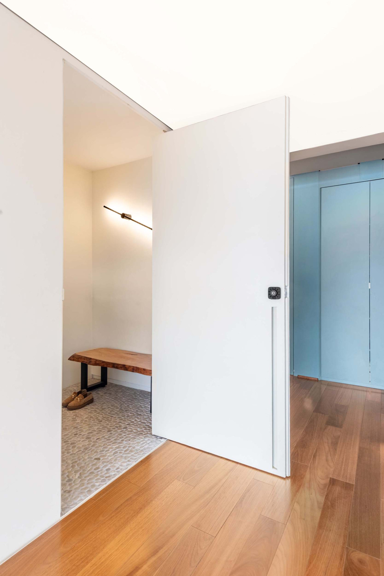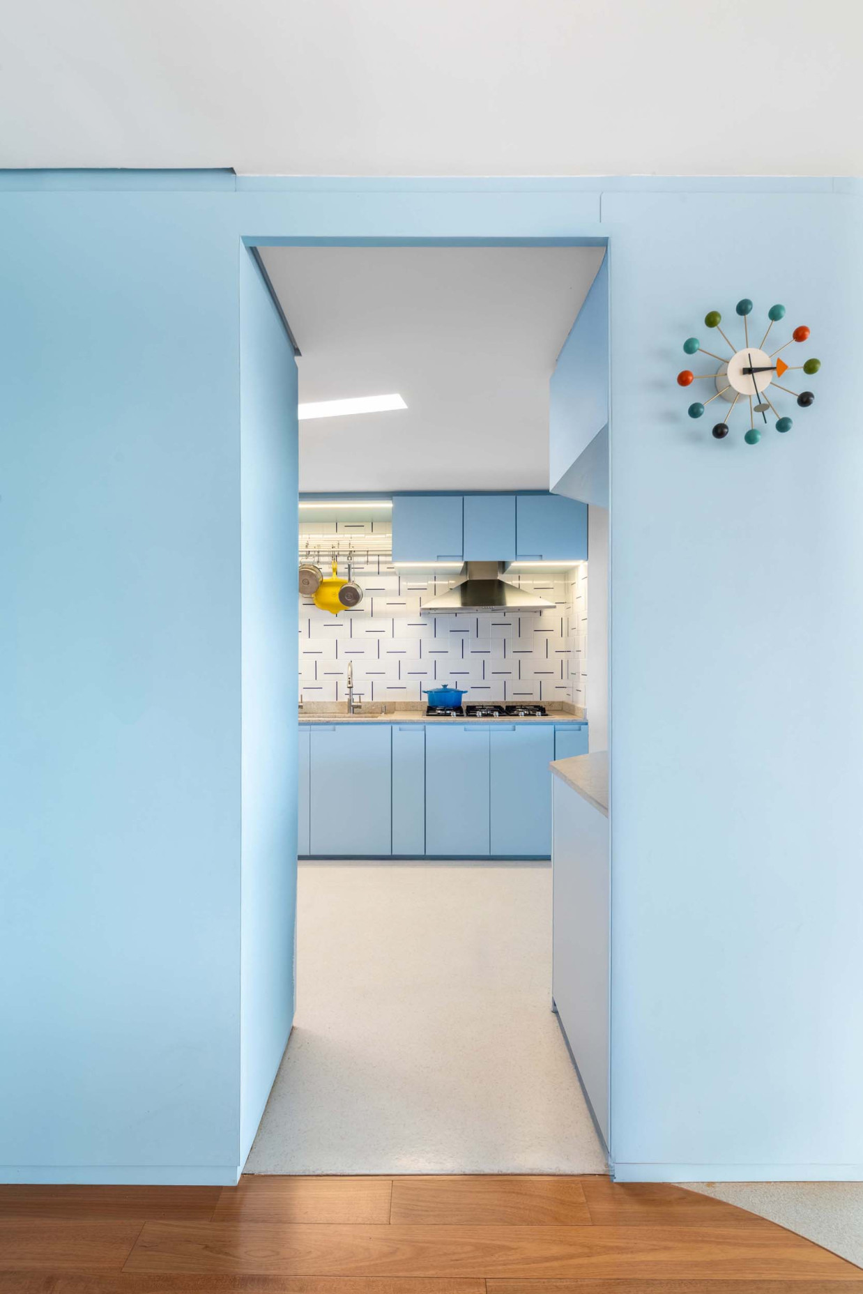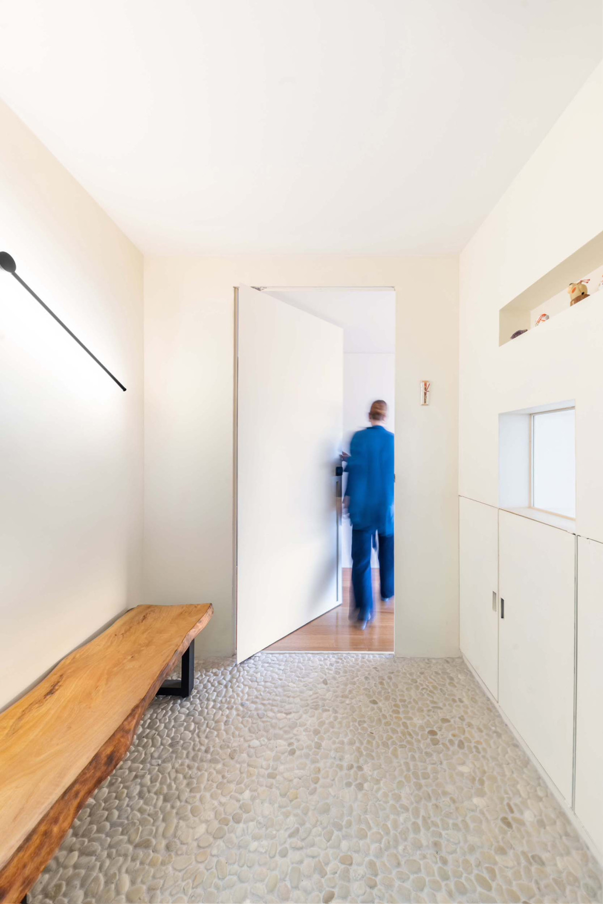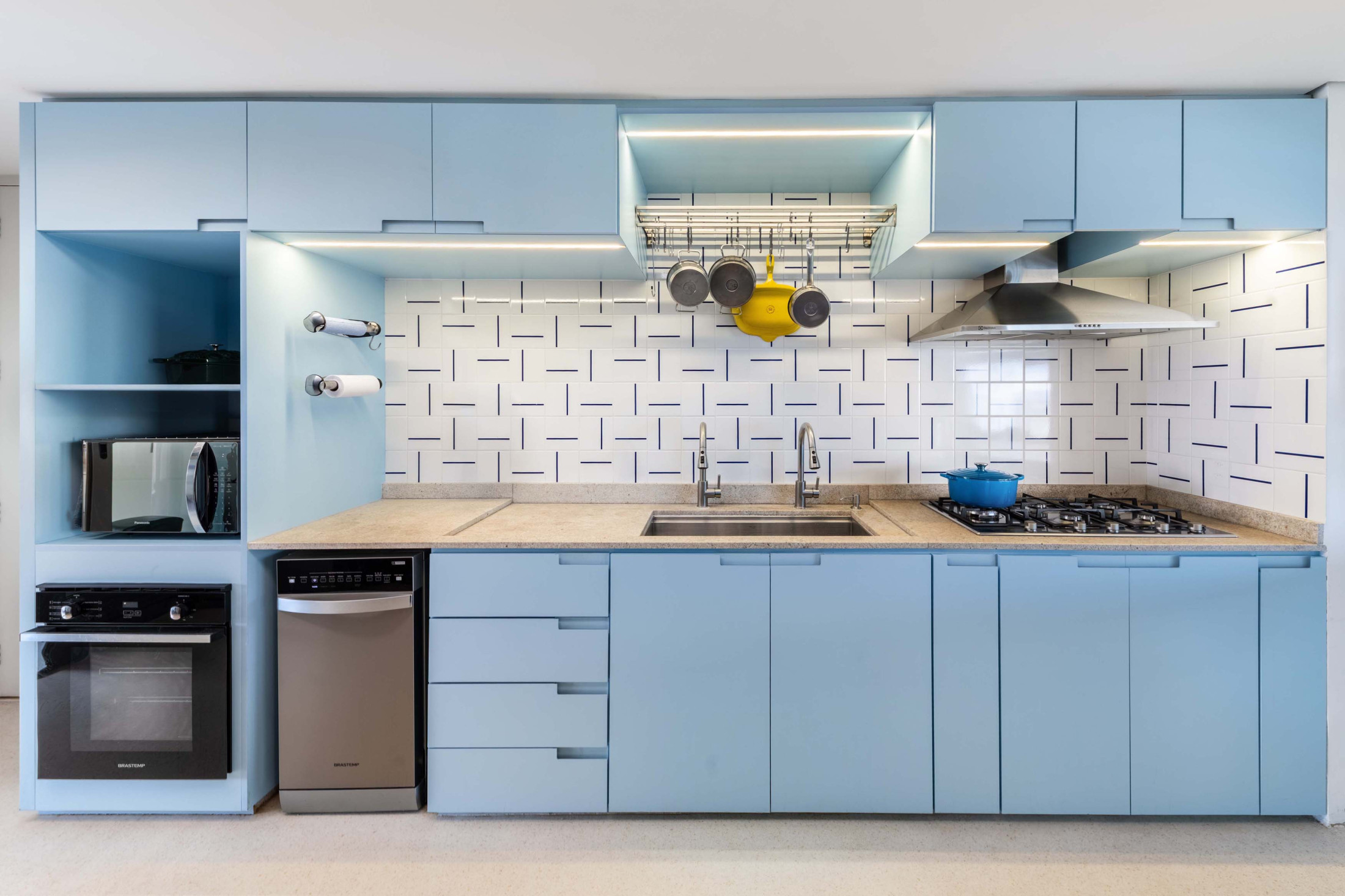 For all those who inhabit increasingly denser cities, where land is rare and their relations with the landscape are scarce, there is not a more common way of living than that of superimposed spaces isolated from an external dimension of the world. It is this experience that we look to recover here. Considering the unity’s generous proportions, the large opening to a privilege view and the habits of the family that will be living there, we started the project by reducing its divisions to the minimum. Understanding the apartment as a brute stone, a central solid is defined in its interior housing the access tunnel and significant part of its services. Around it, three other solids – for the couple, the daughters and the kitchen – are arranged in such a way that the most important space rises precisely from the void between them: free places for different interactions and movements, spaces inside spaces in a dialogue of “intimate solids” and “collective voids”. This collective place is pretended to attend the intense and generous social life of the family, guided by hospitality, music and, above all, cooking. Therefore, it’s from the kitchen’s solid – fluid form unique – that breaks out the sinuous counter around which a vivid and everyday appropriation is imagined, extending along the entire facade as a transitional floor between inside and out. Architecture and design come together in the versatile metal and wood furniture, in the subtle graduation of colors and in the constant diffused light. A belvedere house above the city landscape waiting everyday for the sunset.