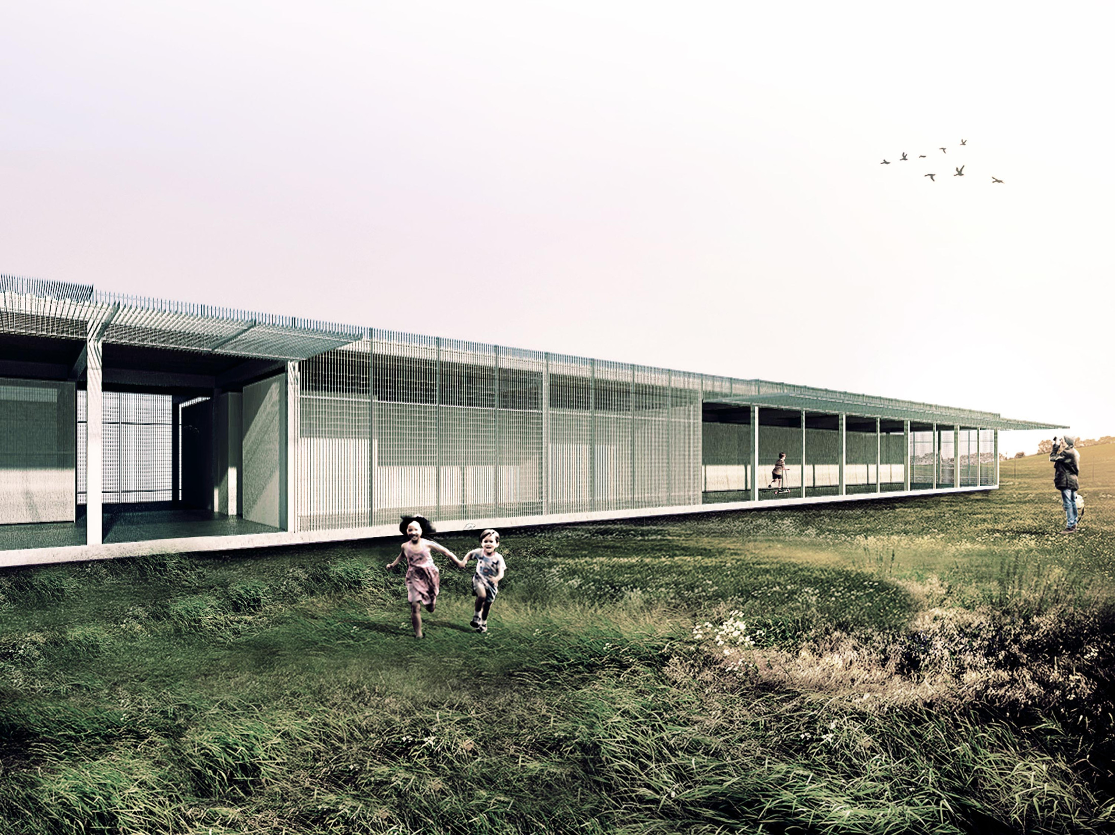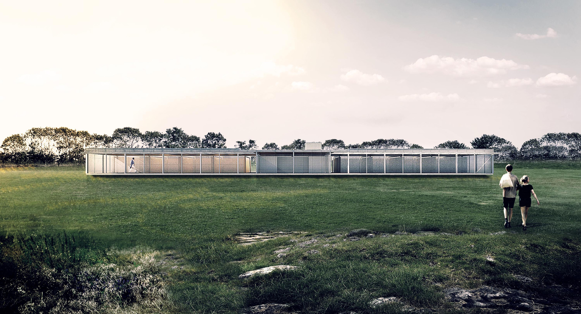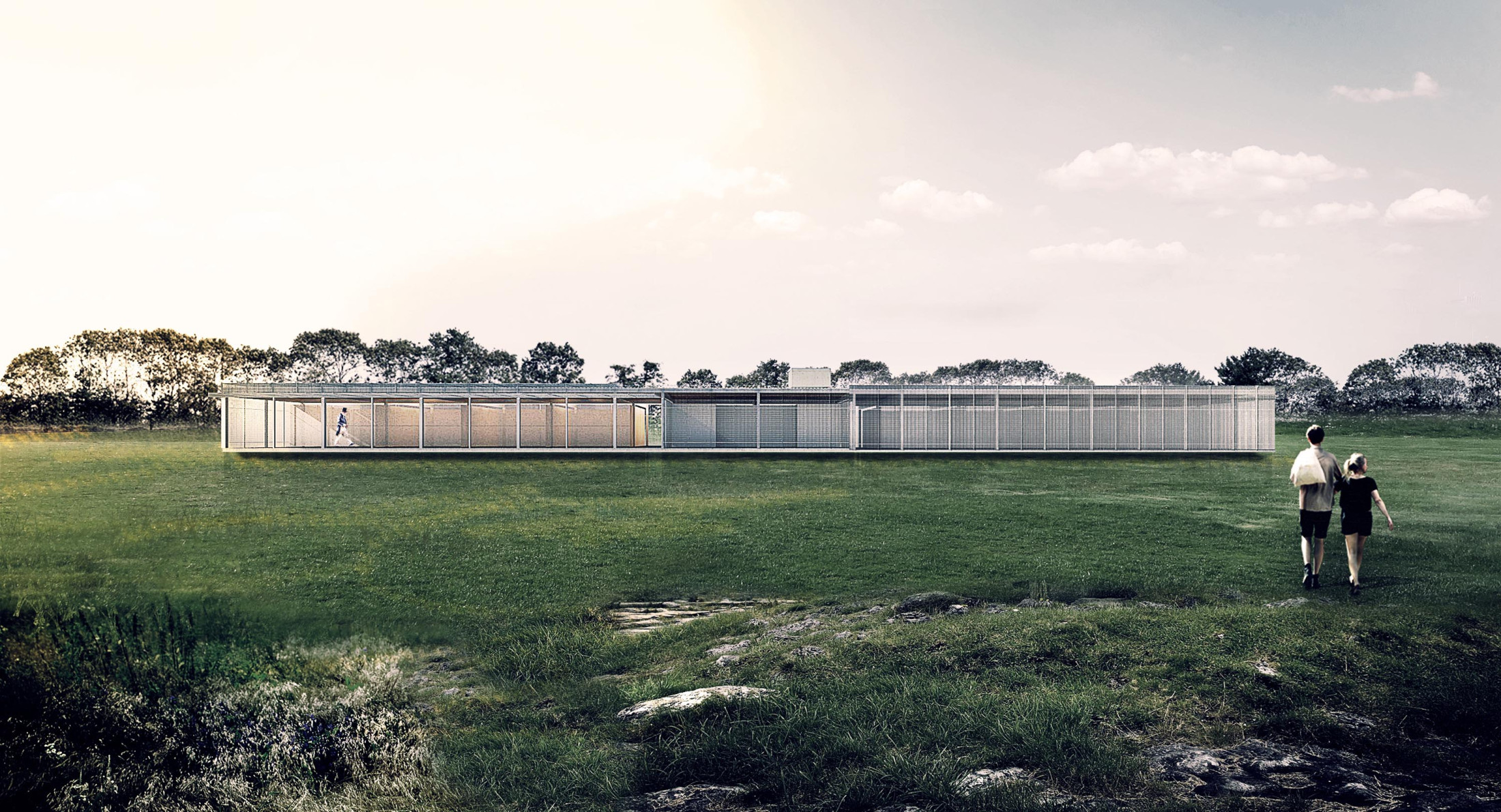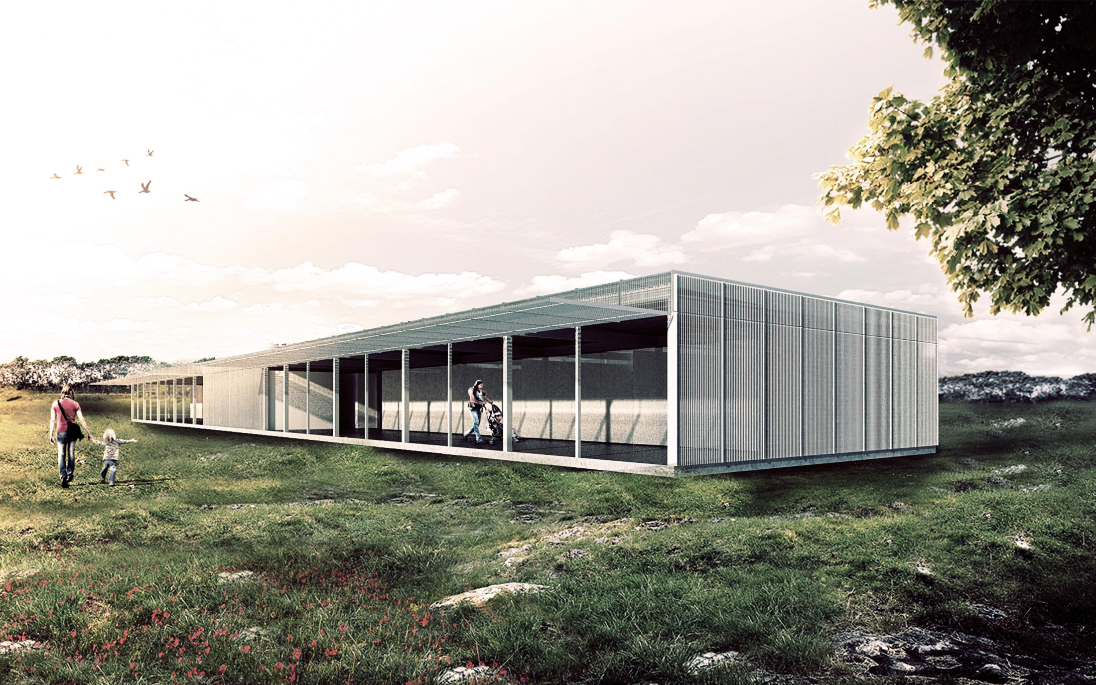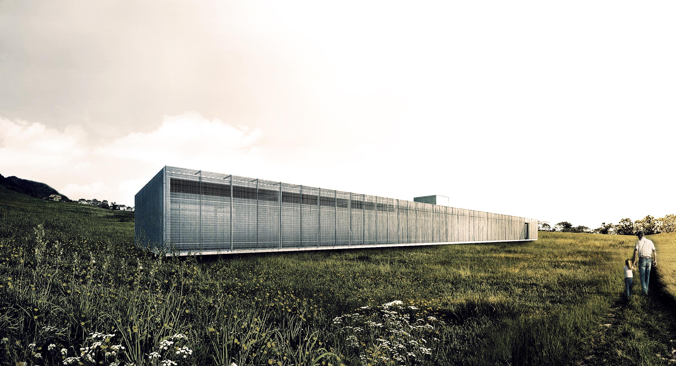 Through a surrounding landscape of great bucolic atmosphere, this study pavilion is inserted as an architectural project whose presence is of a singular object, a prism that, subtly suspended, can be perceived as a solid cloud over the ground. This configuration comes from the request for a building that could serve as a shelter for education, but – in addition to an open pedagogy – was also seen as a place for playful encounters: a magic box in the countryside. Defined by a diaphanous spatiality and materiality, light and flexible, this box proves to be alive and adaptable to its unpredictable occupations.