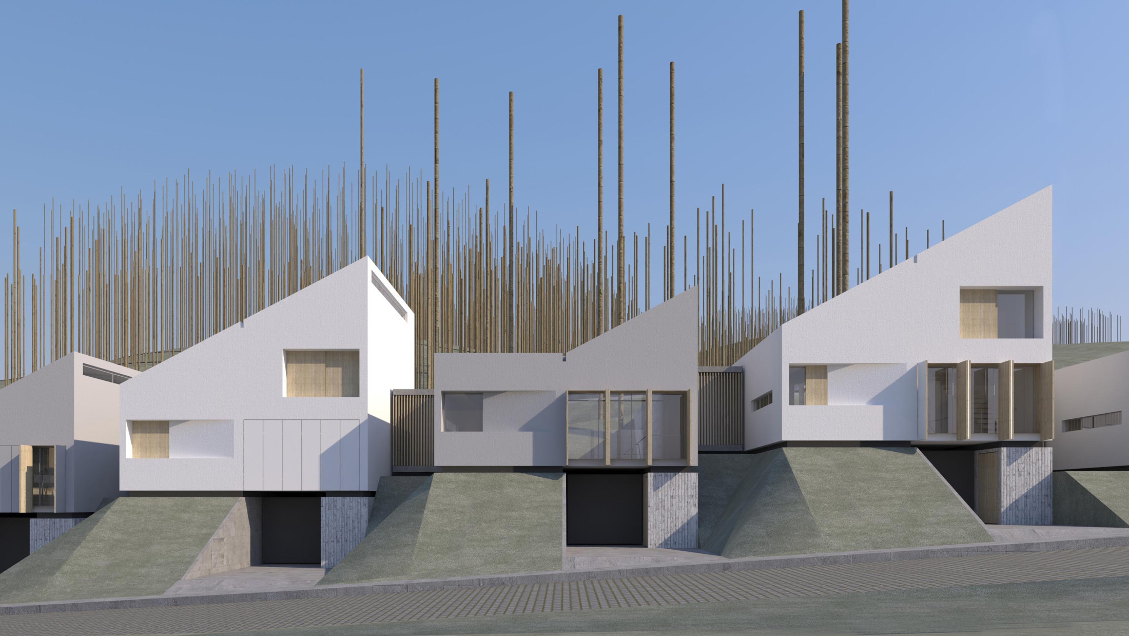 The project for Residential SR in São Roque values the construction of a landscape that transits between the urban and the natural. Inserted in a place of high landscape value, it carefully defines its relationship with the topography, as well as the density of the group of 25 units requested. With this, everyone can enjoy the views and good qualities of insulation and ventilation. As for the architecture, in addition to the variation in size and the internal solutions of the environments, the architectural language of the project defines a greater autonomy for the types and a diversity of heights, volumes and openings, enrichening the whole set, avoiding the often monotony witnessed in excessive repetitions of works of this nature.