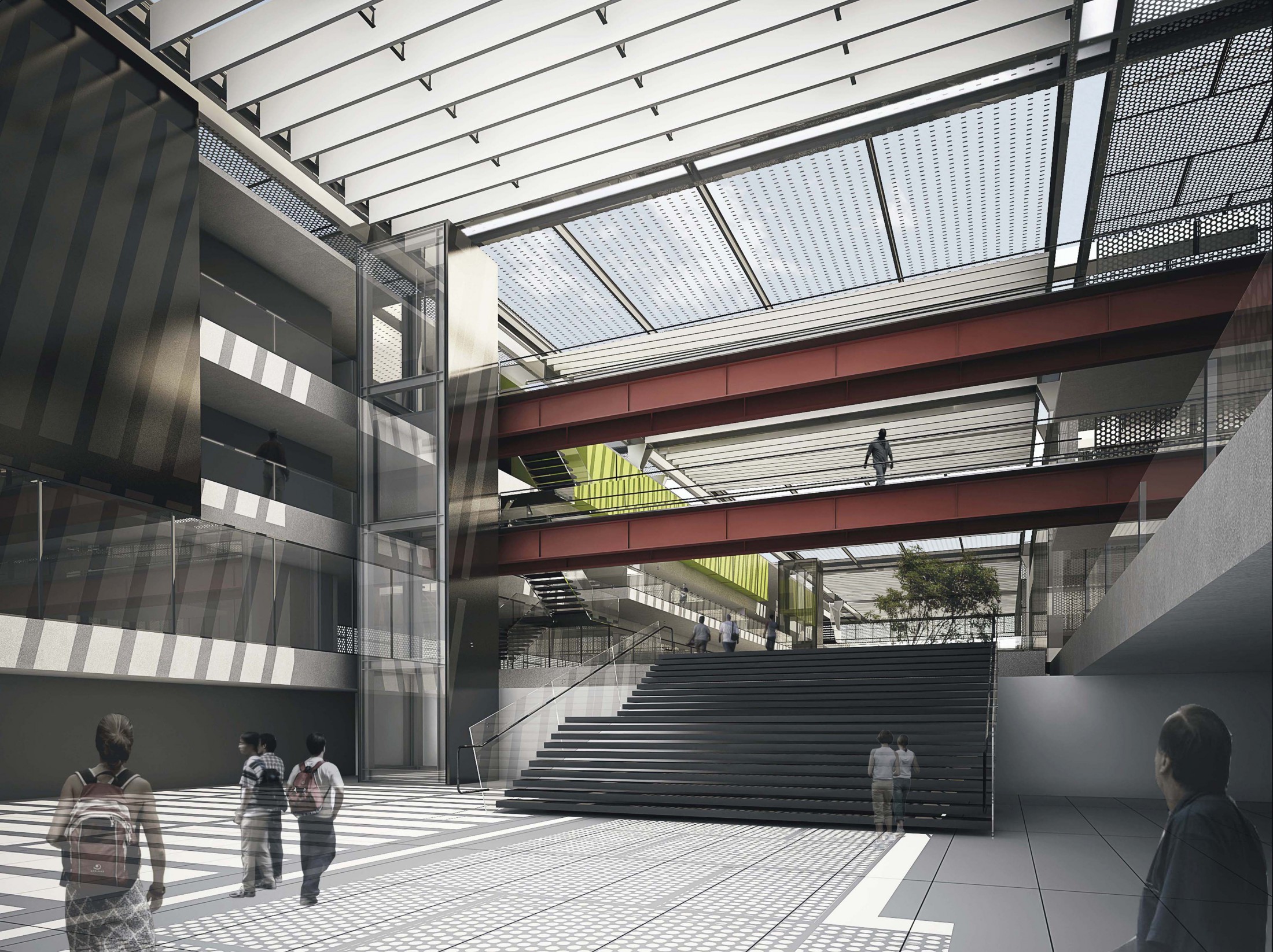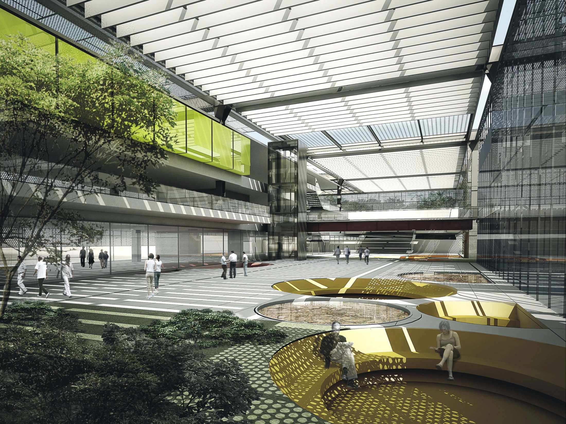 Edifício a ser construído predominantemente em estrutura de concreto e alvenaria, com exceção da cobertura que envolve todo o edifico, esta em estrutura de aço, possibilitando a sua construção em etapas sem prejuízo da operacionalidade do complexo. Sua estrutura se define por um sistema de pilares, vigas e lajes em sistemas de concreto armado ou protendido “in loco” e estrutura em aço. A modulação básica da estrutura é de 20m X 20m. As lajes são nervuradas e protendidas para permitir bom espaço para instalações entre forro e laje. Foram previstos os melhores conceitos de conforto ambiental, propondo espaços providos de iluminação e ventilação naturais, e ar condicionado quando necessário. O projeto desenha estruturas de concreto em vãos econômicos e dimensionados para proporcionar espaços abertos e flexíveis. O projeto prevê caixilhos de alumínio anodizado, vidros laminados, elementos de proteção solar em alumínio, além de um grande elenco de materiais de acabamento de padrão elevado. As instalações prediais estão previstas de forma a serem sempre facilmente acessadas e mantidas, prevendo um conjunto de shafts horizontais e verticais.