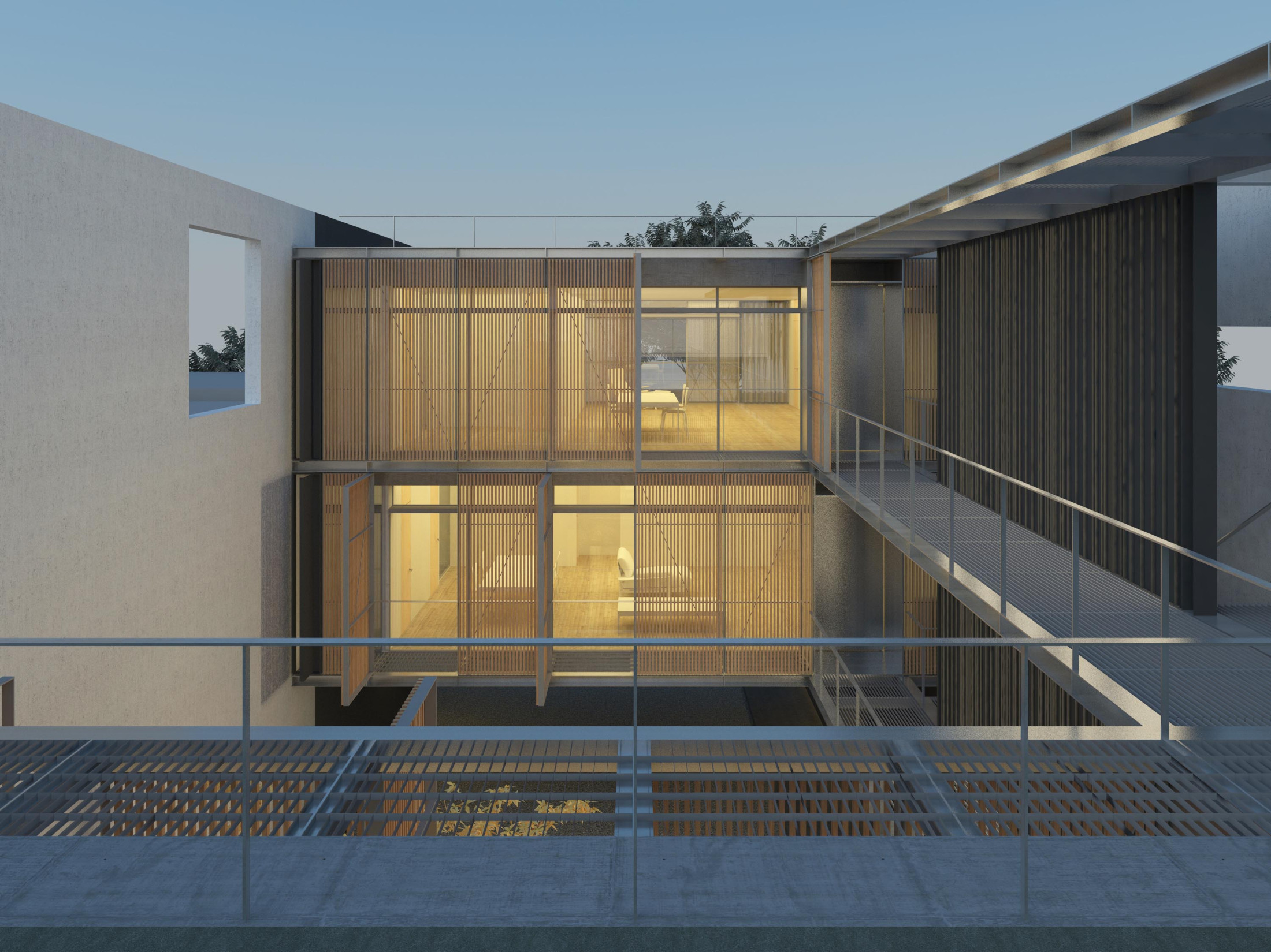 The establishment of an authentic collective dwelling must seek, above all, an urban neighborhood notion as its leading principle: a meeting place shared as patrimony and symbol of a cordial coexistence and fundamental respect for otherness. In the Y Village, this premise is even more enhanced by the fact that it houses an entire family – as a small community: the elderly parents plus their three children, each one with its respective and distinct family configurations. Therefore, we unite these four ‘houses’ based on the quality of the desired places between them: a ground floor revealed as a square for family gatherings, voids that preserve the adequate light, ventilation and privacy – but still allowing a direct interaction between its residents through its interior balconies, besides the collective terrace on its roof. The units are conceived as a flexible system that defines strict services bands inside the entirely free plan to be organized by each family according to their present and future varied needs. Thereby, we adopt a modular, light and rational materiality, changing between the warm expression of wood in its interior and the more urban of its metal and polycarbonate surfaces. In a city where we have the predominance of large and ordinary real state developments, this is an architecture model that must be encouraged as an integrator agent of its inhabitants’ affections and where they can share their life routines in a wholesome way.