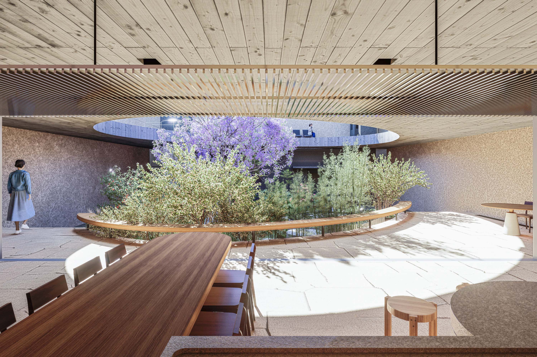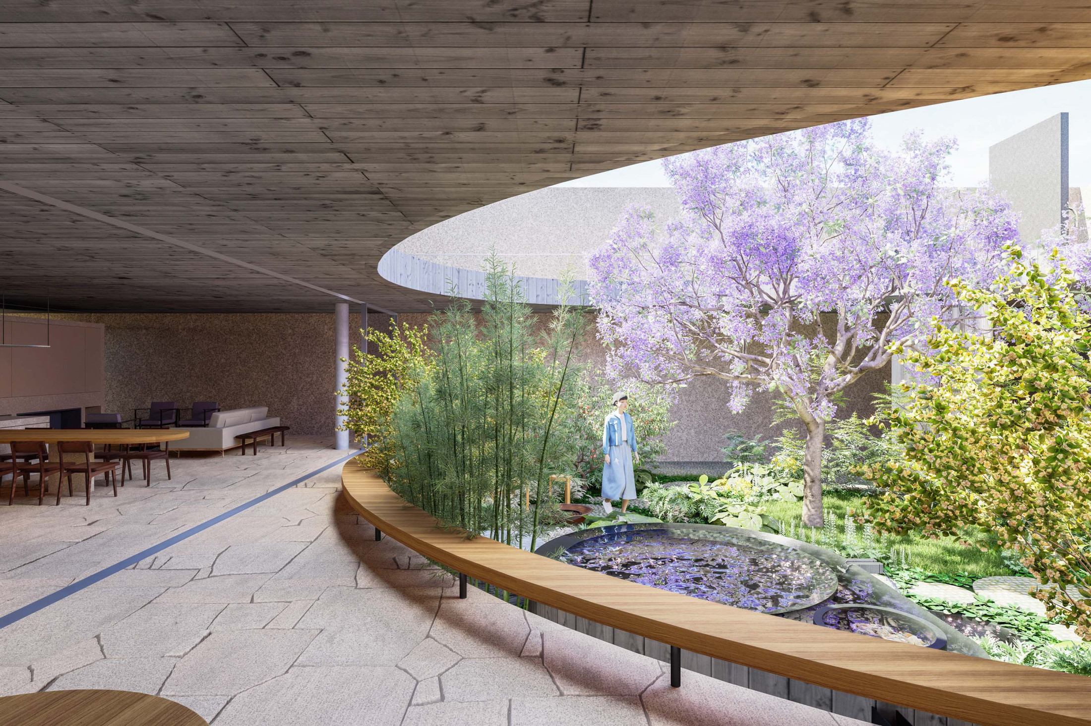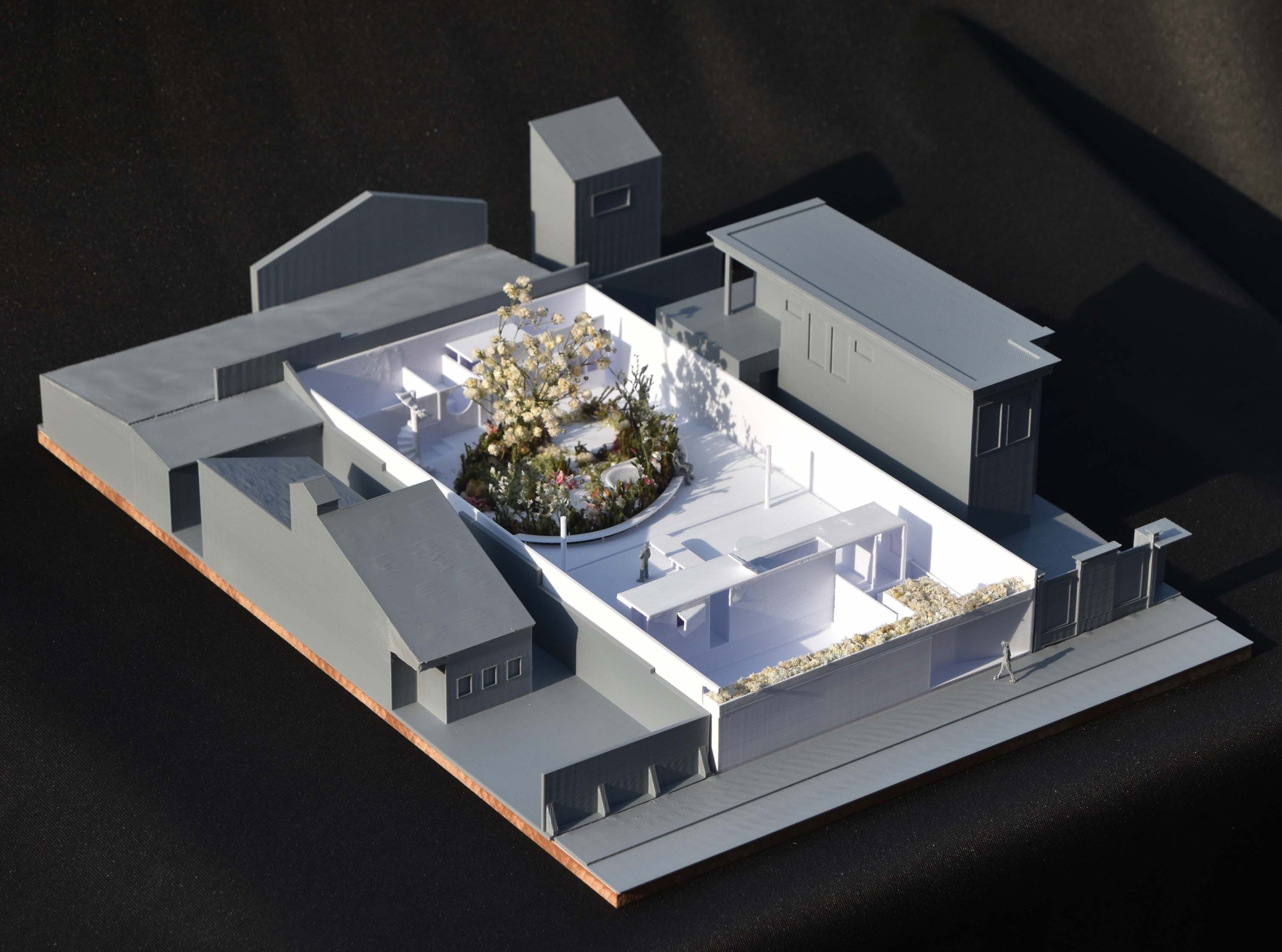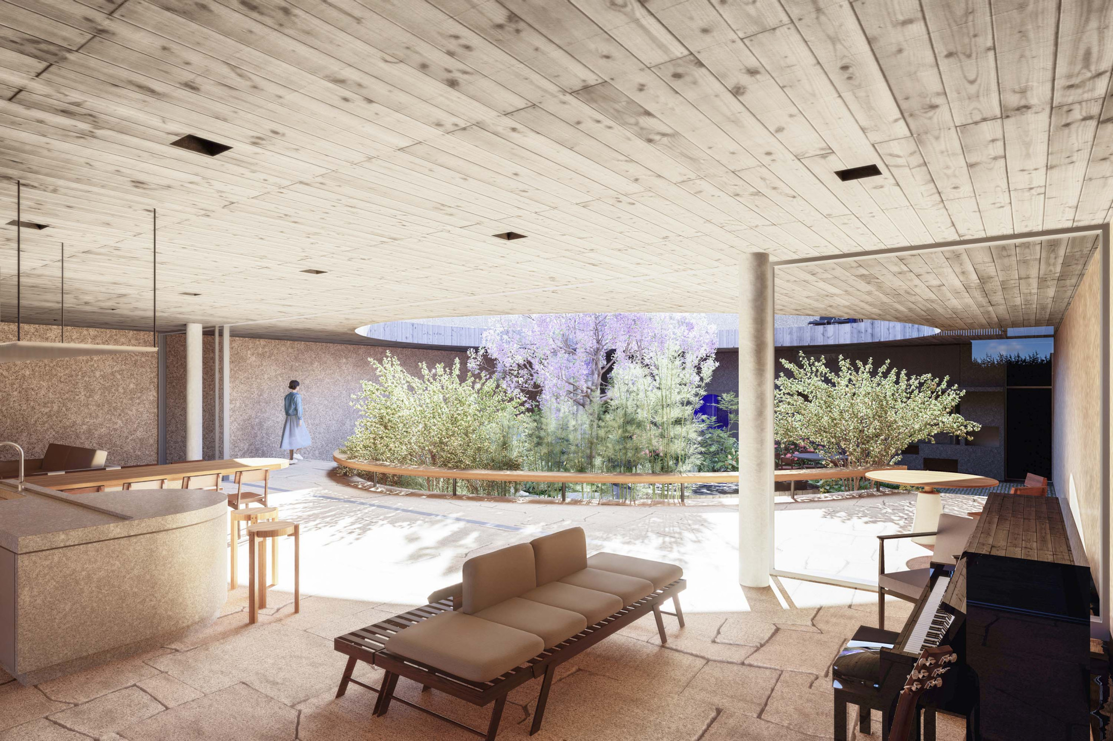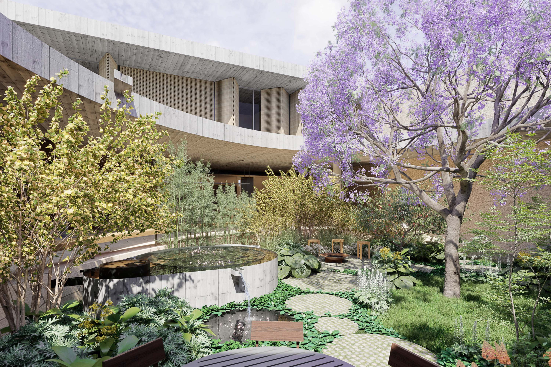 Quando não há o que se olhar do lado de fora, a casa volta para si mesma. Em um ímpeto introspectivo em relação à cidade, os espaços vazios suscitam a diversa gama de dinâmicas da família, em seus vários momentos, em suas muitas composições. Uma casa deve ser uma expressão singela da alma. O percurso, a morada da experiência. Os recintos, dos afetos. Nascida de um terreno pouco iluminado, a casa emerge sobre um platô que se eleva em relação à cota da rua, uma insurgência pela conquista do sol. Movimento cujo epicentro é um pátio-jardim, pelo qual buscamos articular de maneira harmoniosa e flexível a complexidade de um programa que concentrasse a pluralidade de acontecimentos cotidianos e especiais (extra cotidianos?) de forma compacta e funcional. Com algumas visuais tímidas para a rua, protegidas por uma pele vazada que preenche de ponta à ponta a projeção do andar superior, os olhos se voltam para um espelho d´água que em um primeiro momento, age como extensão da varanda dos quartos, até se abrir e delinear o caminho da luz natural para chegar ao pátio-jardim, finalmente dando lugar à piscina, sem delimitar uma fronteira. Pensando em não ofuscar esta circunstância global única de lar, os materiais foram pensados como singelas superfícies, com a única pretensão de diferenciar planos horizontais e verticais. Desta forma, a casa surge na cidade como um acontecimento silencioso, cuja potência e intensidade se dão de dentro para fora.