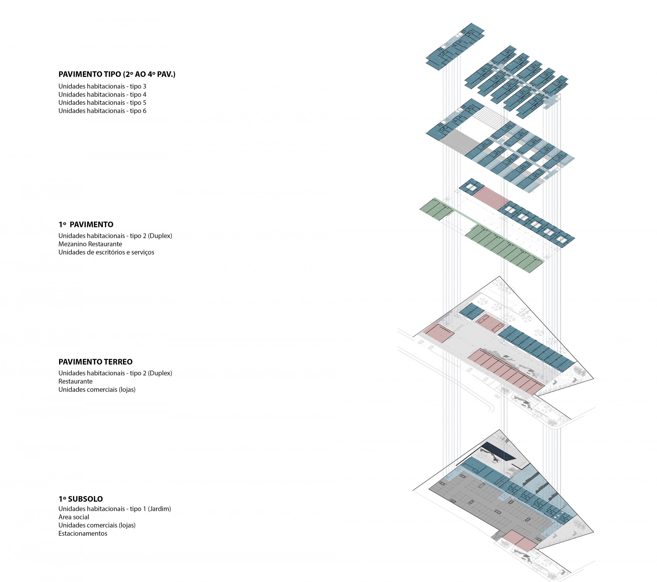 A condição atual de grande desenvolvimento da cidade de Avaré estabelece duas preocupações primárias: a proposição de empreendimentos inovadores e a contribuição que estes podem trazer para o bem-estar da cidade. Com essas premissas, o projeto do Iaras Multiuso se funda sobre a multiplicidade de funções e de tipologias. Como um complexo urbano de escala mediana, seus níveis inferiores se definem por áreas comerciais, escritórios e entretenimento. Nos níveis superiores encontramos unidades de habitação cuja versatilidade oferece um grande número de tipologias de diferentes tamanhos e configurações (simples, duplex, com pátios privativos). A esse conjunto se somam generosas áreas abertas para convívio e lazer, tanto privado como público.