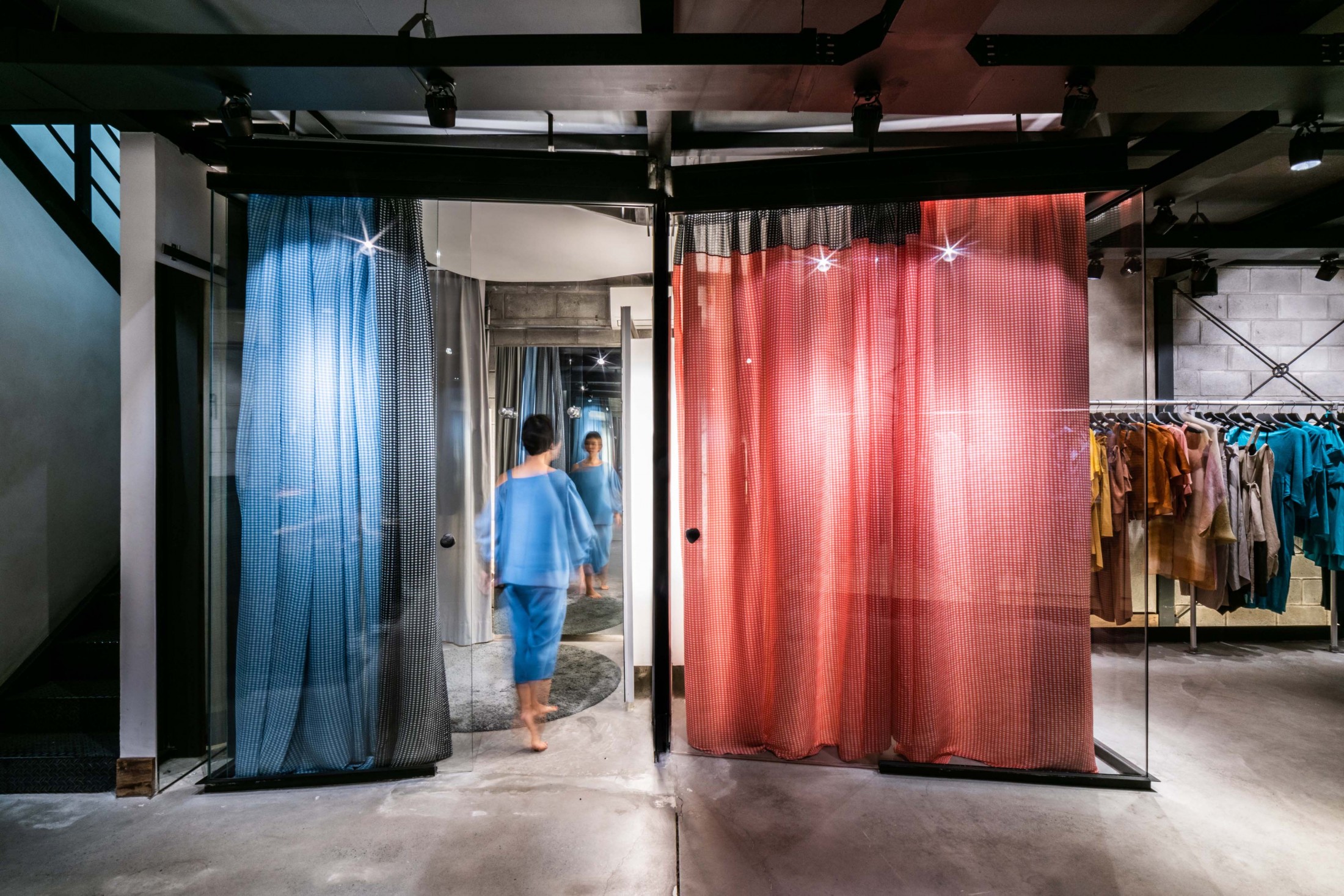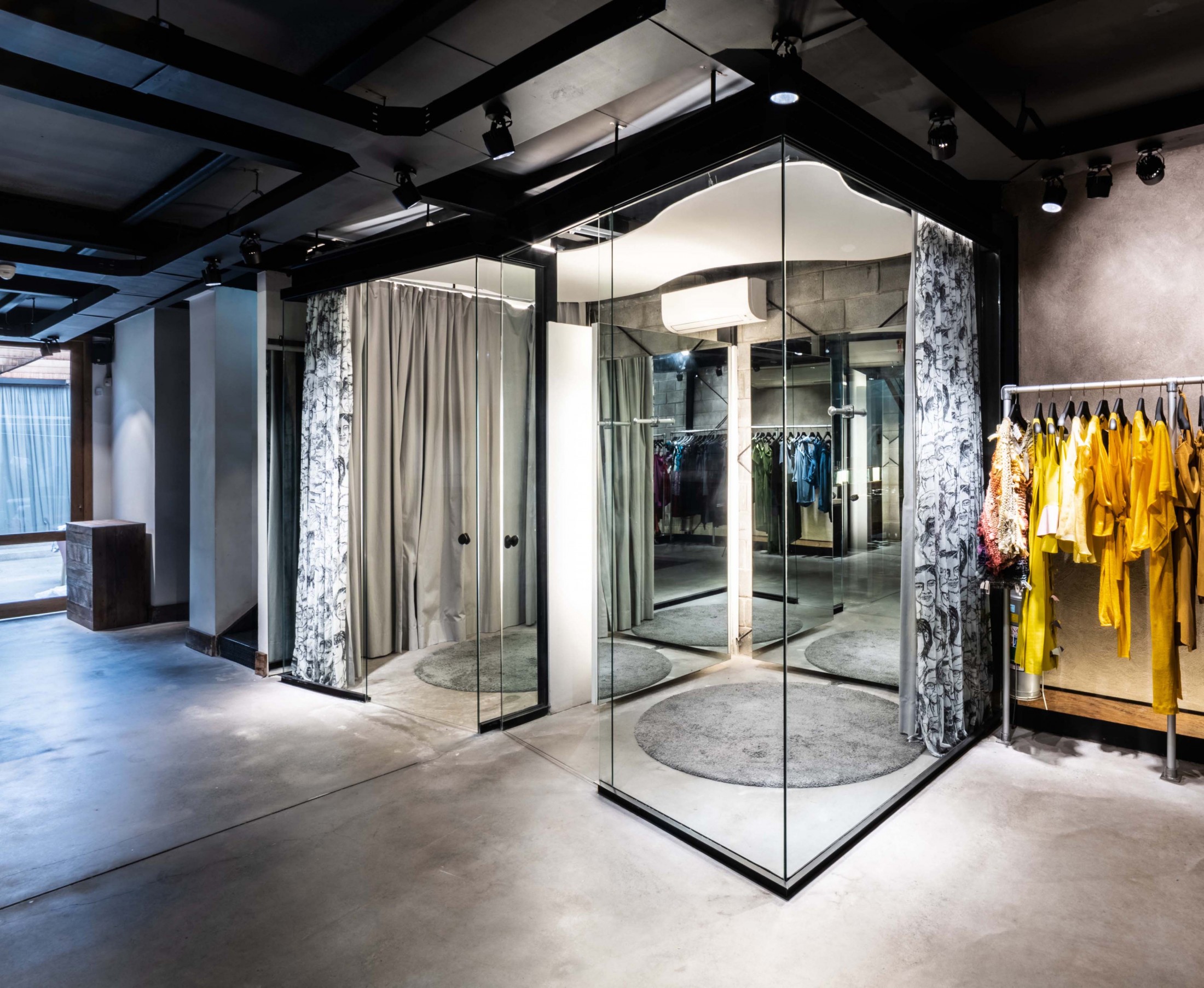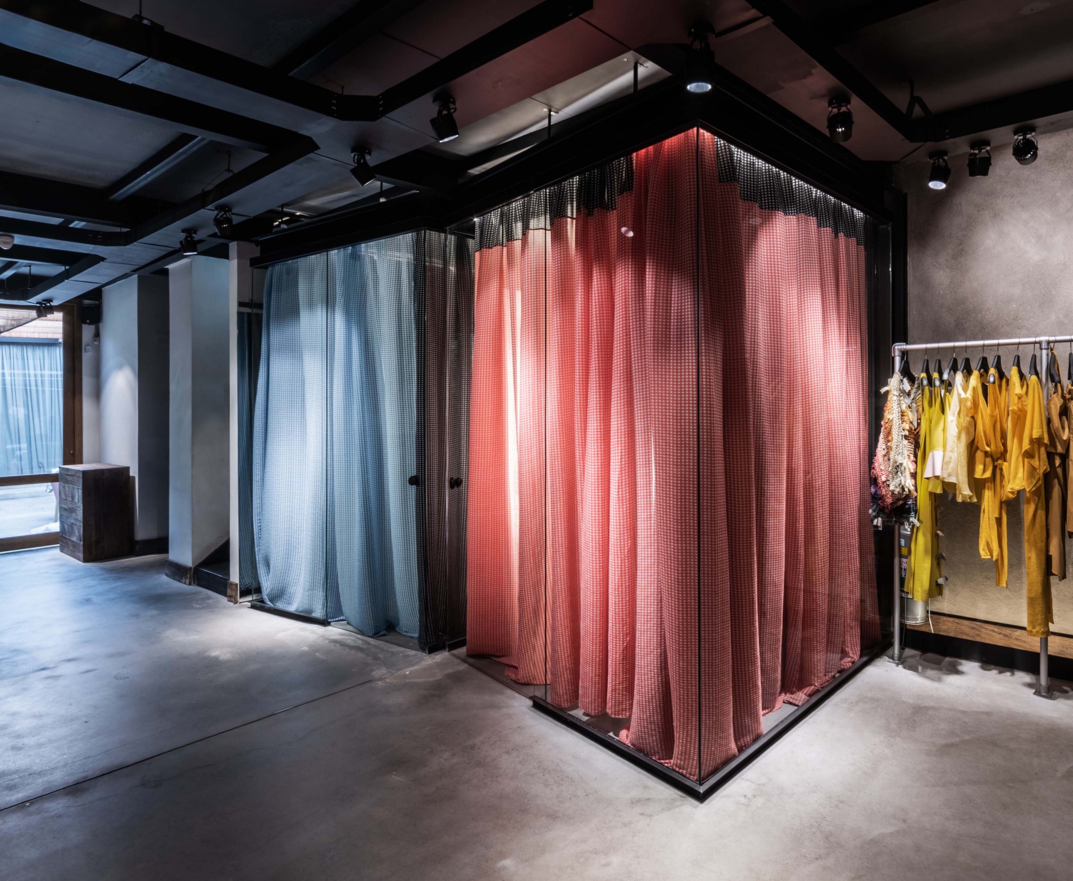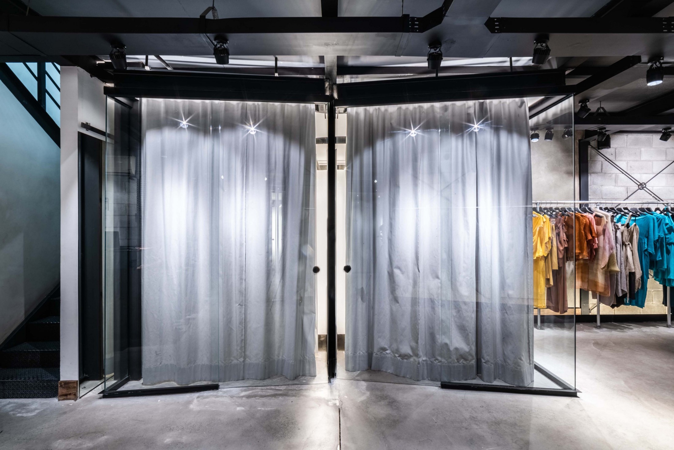 Arquitetura e Moda são campos de expressão que podem compartilhar muitos princípios relacionados aos valores éticos e estéticos da cultura humana. Como uma síntese sutil, o que se buscou nessa reformulação da loja da estilista Fernanda Yamamoto, localizada em São Paulo, foi o diálogo entre estruturas que podem manifestar tanto aquilo que é efêmero como o que é perene. A partir dos novos volumes dos provadores, espaço de vital importância para ambientação de quem a visita, a dimensão estática da arquitetura é transformada constantemente pela possibilidade de troca dos tecidos das cortinas que identificam cada coleção da estilista. Paralelo a isso, esses mesmos tecidos são envoltos por uma ‘pele’ diáfana – o vidro – que, com suas reflexões e transparências, faz com assumam aspectos distintos, somados à uma nova iluminação igualmente expressiva.