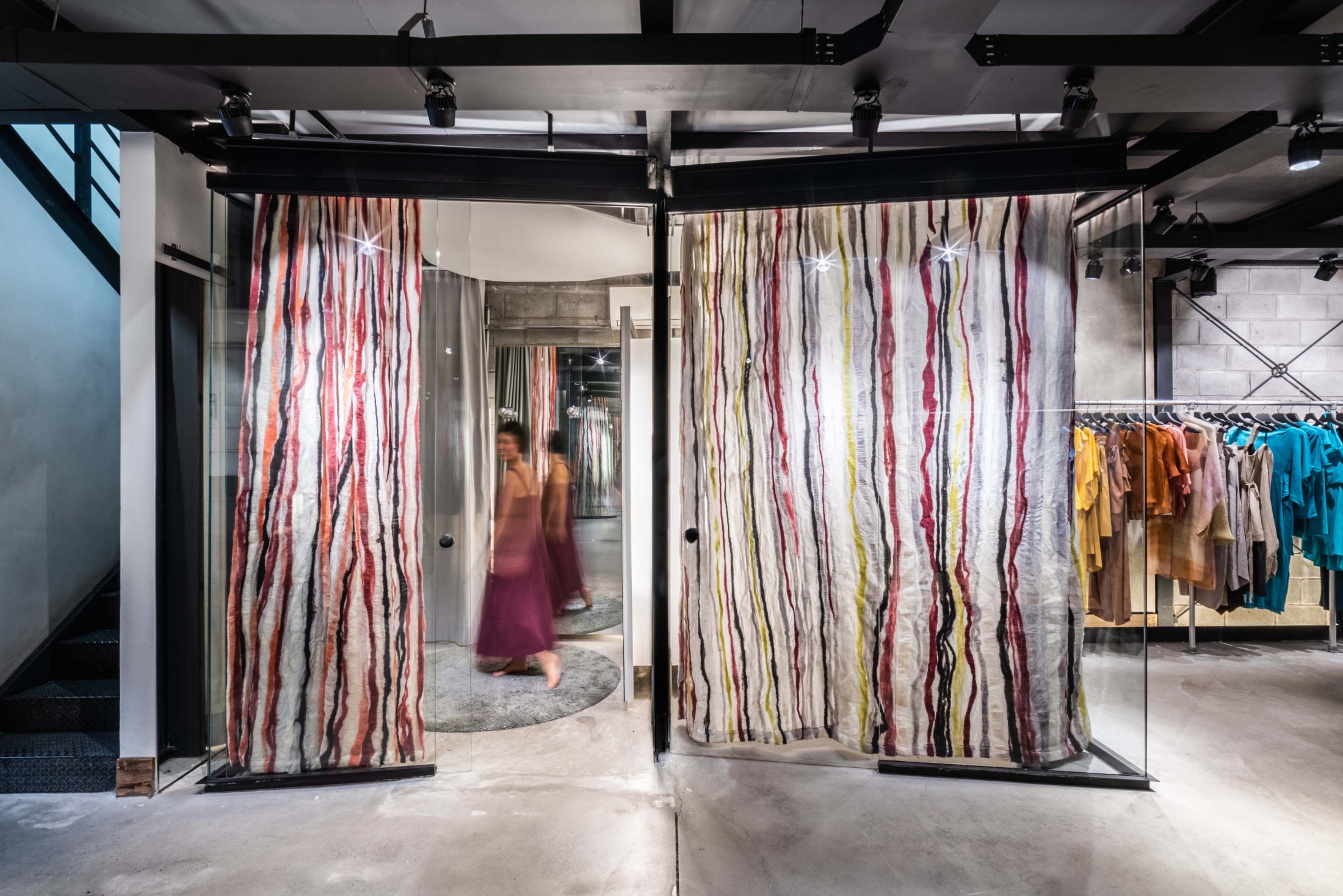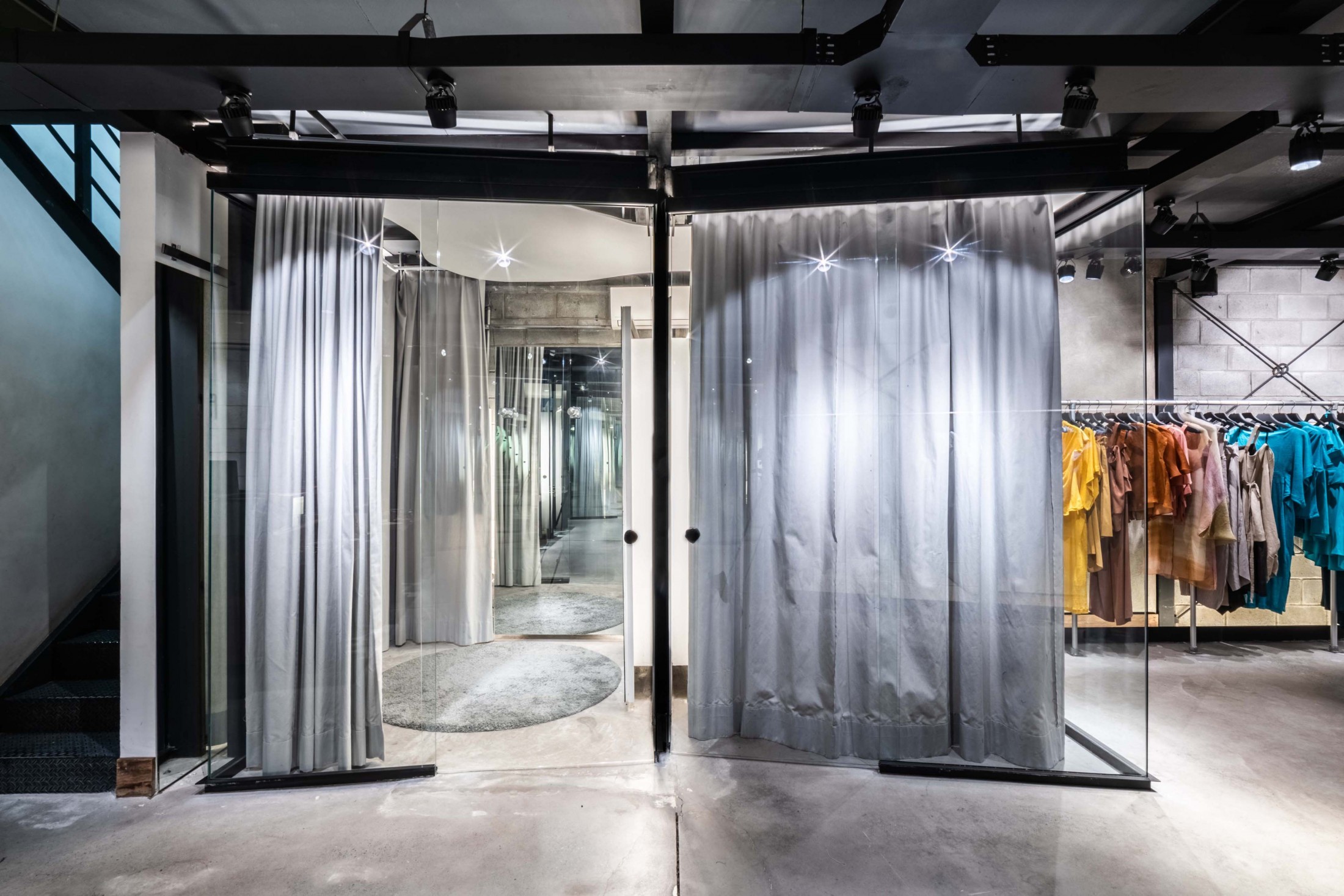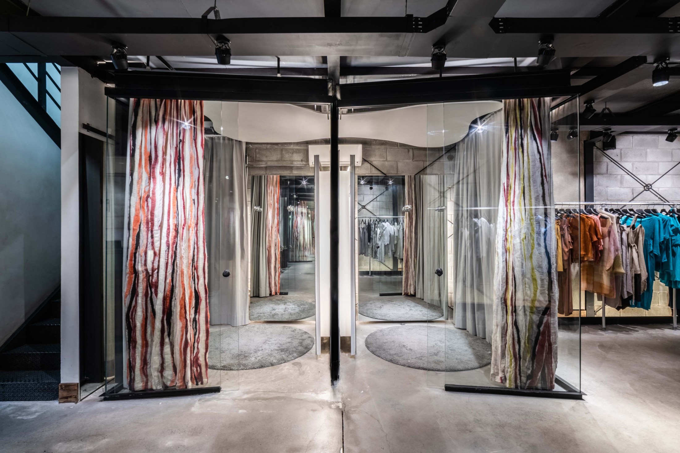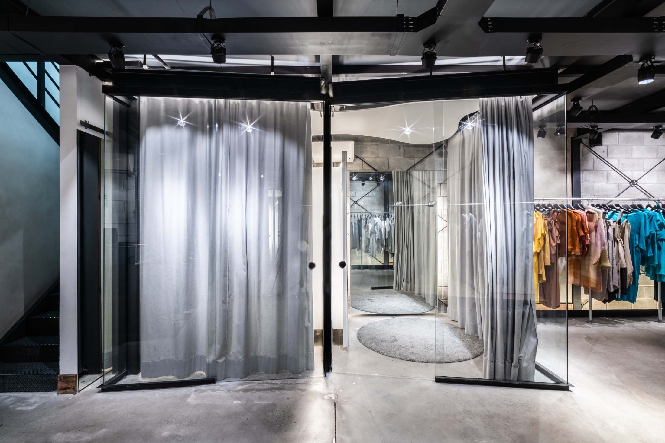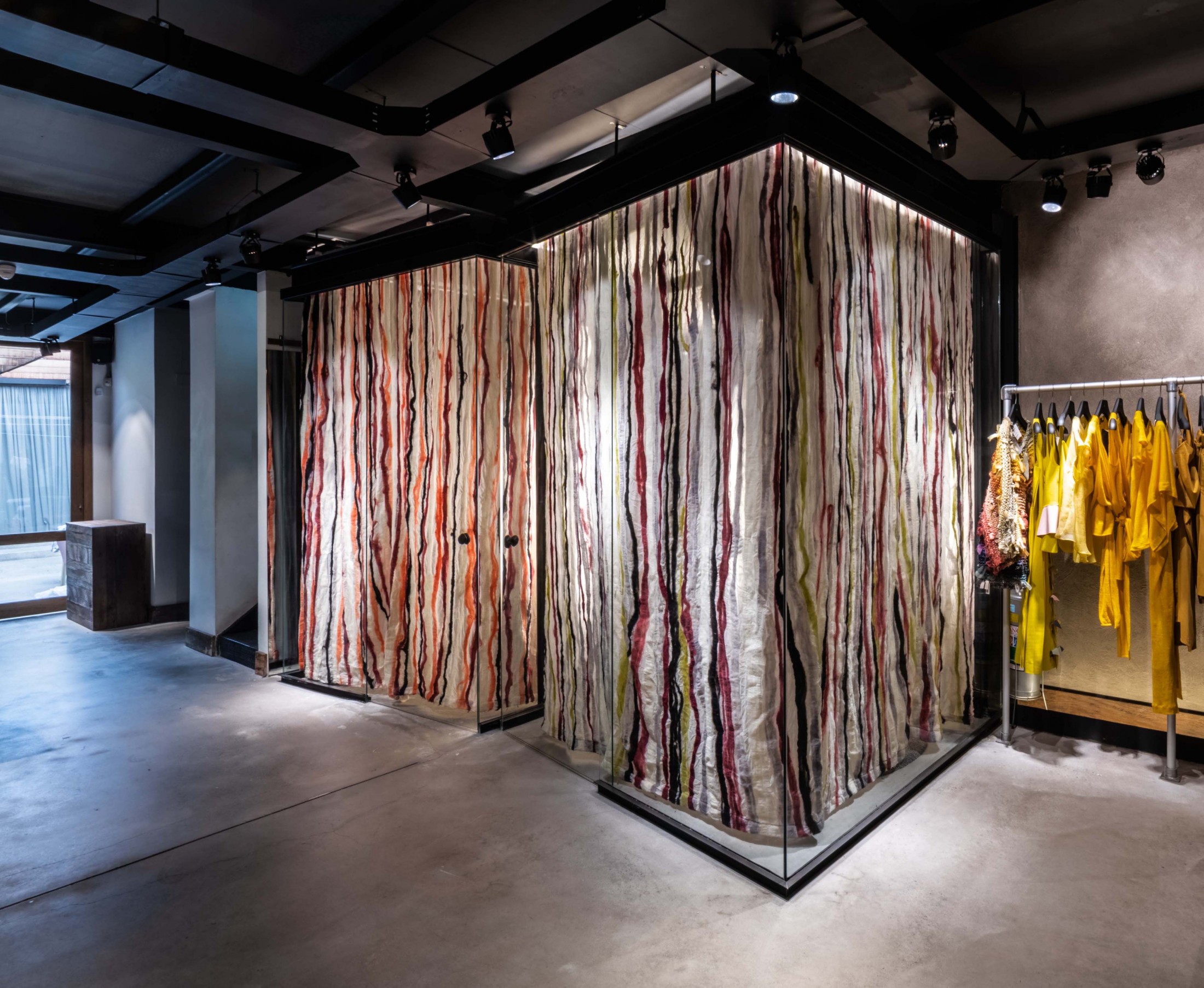 Arquitetura e Moda são campos de expressão que podem compartilhar muitos princípios relacionados aos valores éticos e estéticos da cultura humana. Como uma síntese sutil, o que se buscou nessa reformulação da loja da estilista Fernanda Yamamoto, localizada em São Paulo, foi o diálogo entre estruturas que podem manifestar tanto aquilo que é efêmero como o que é perene. A partir dos novos volumes dos provadores, espaço de vital importância para ambientação de quem a visita, a dimensão estática da arquitetura é transformada constantemente pela possibilidade de troca dos tecidos das cortinas que identificam cada coleção da estilista. Paralelo a isso, esses mesmos tecidos são envoltos por uma ‘pele’ diáfana – o vidro – que, com suas reflexões e transparências, faz com assumam aspectos distintos, somados à uma nova iluminação igualmente expressiva.