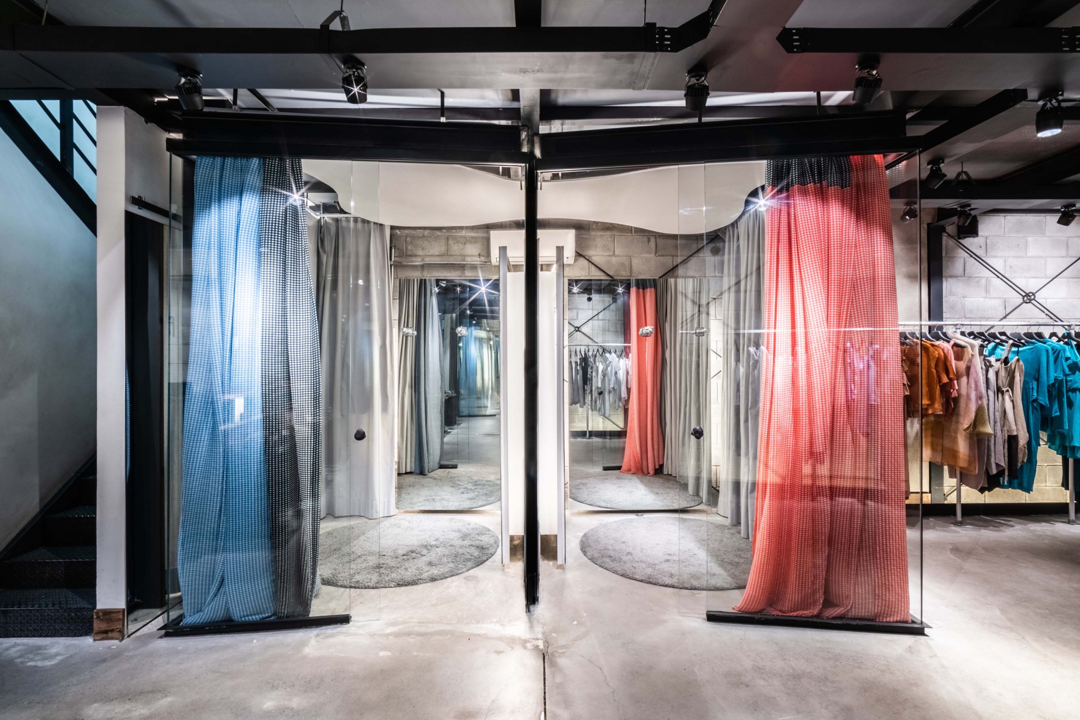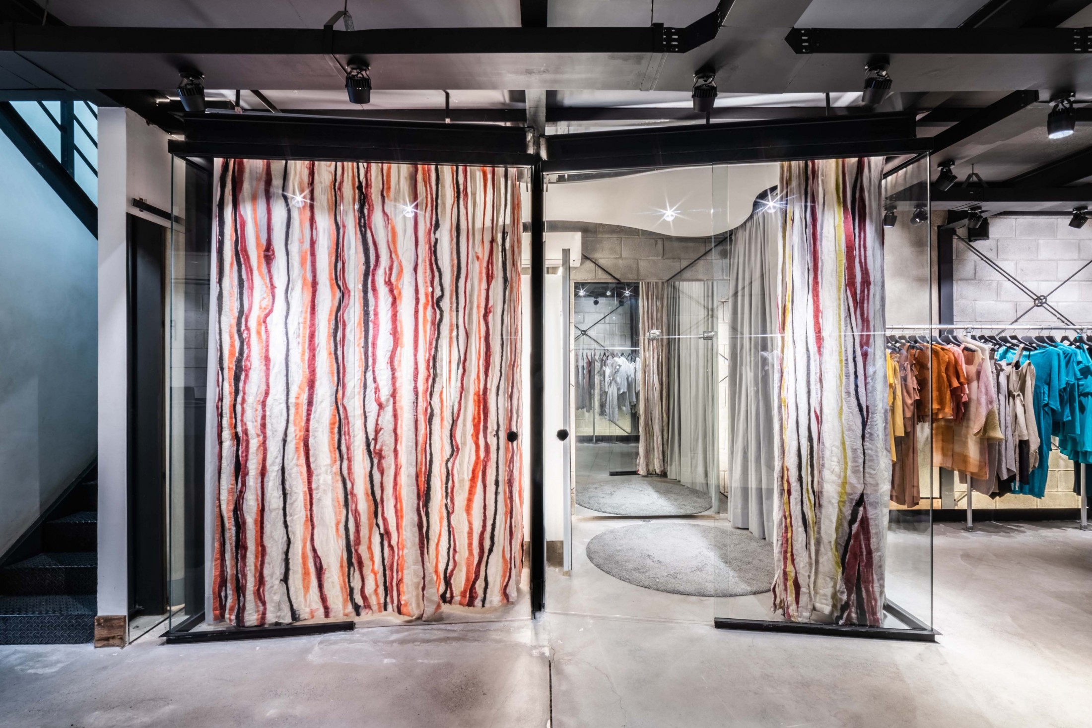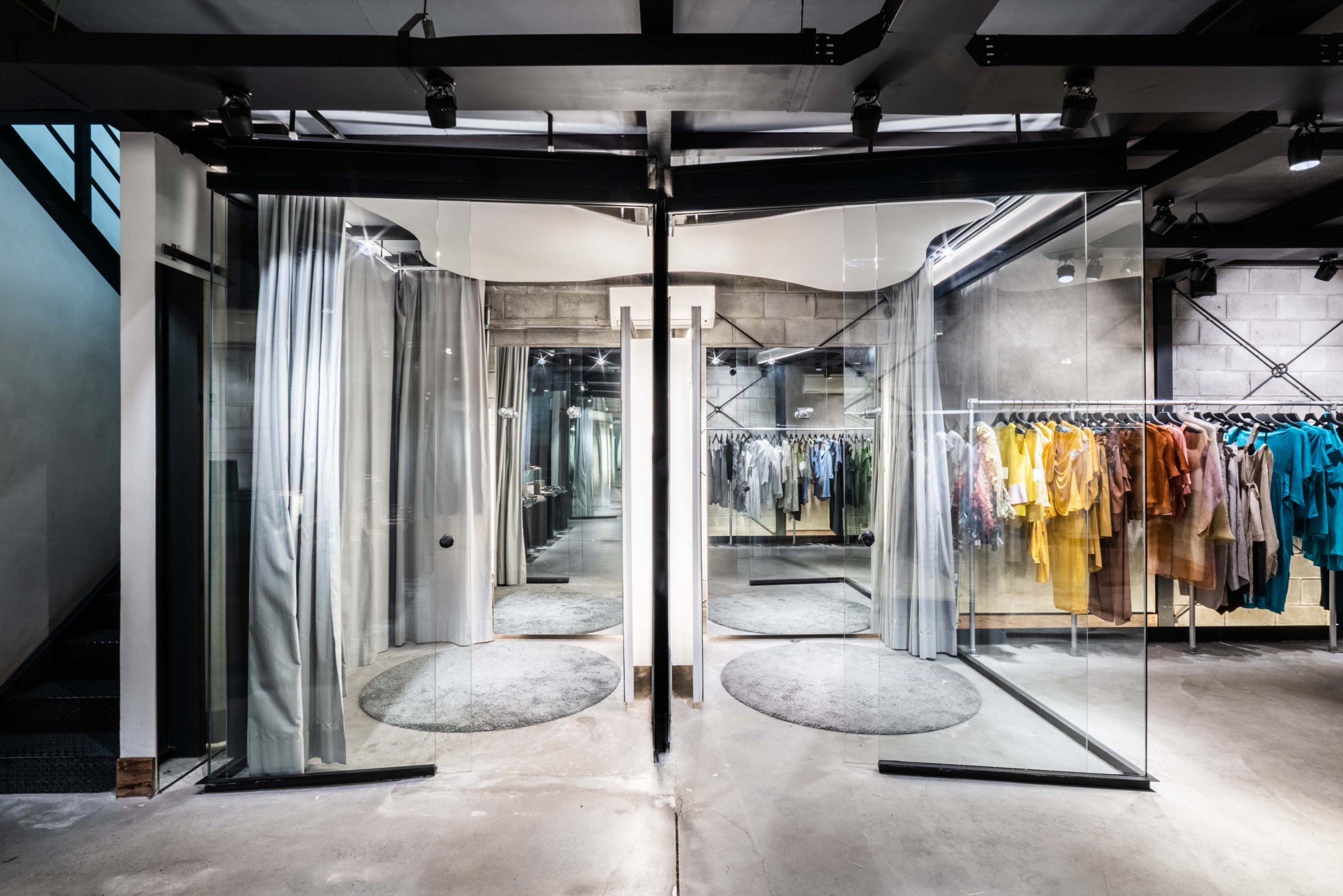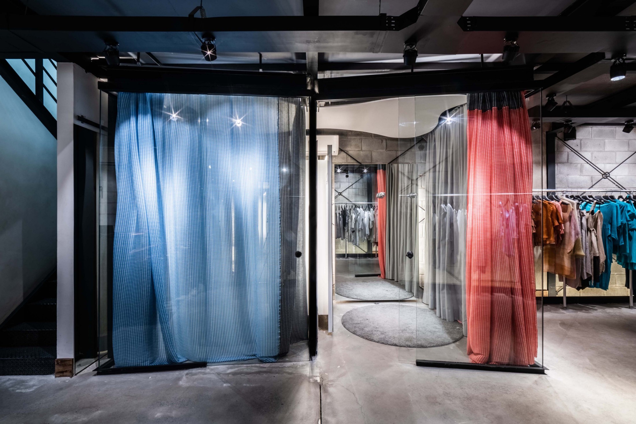 Arquitetura e Moda são campos de expressão que podem compartilhar muitos princípios relacionados aos valores éticos e estéticos da cultura humana. Como uma síntese sutil, o que se buscou nessa reformulação da loja da estilista Fernanda Yamamoto, localizada em São Paulo, foi o diálogo entre estruturas que podem manifestar tanto aquilo que é efêmero como o que é perene. A partir dos novos volumes dos provadores, espaço de vital importância para ambientação de quem a visita, a dimensão estática da arquitetura é transformada constantemente pela possibilidade de troca dos tecidos das cortinas que identificam cada coleção da estilista. Paralelo a isso, esses mesmos tecidos são envoltos por uma ‘pele’ diáfana – o vidro – que, com suas reflexões e transparências, faz com assumam aspectos distintos, somados à uma nova iluminação igualmente expressiva.