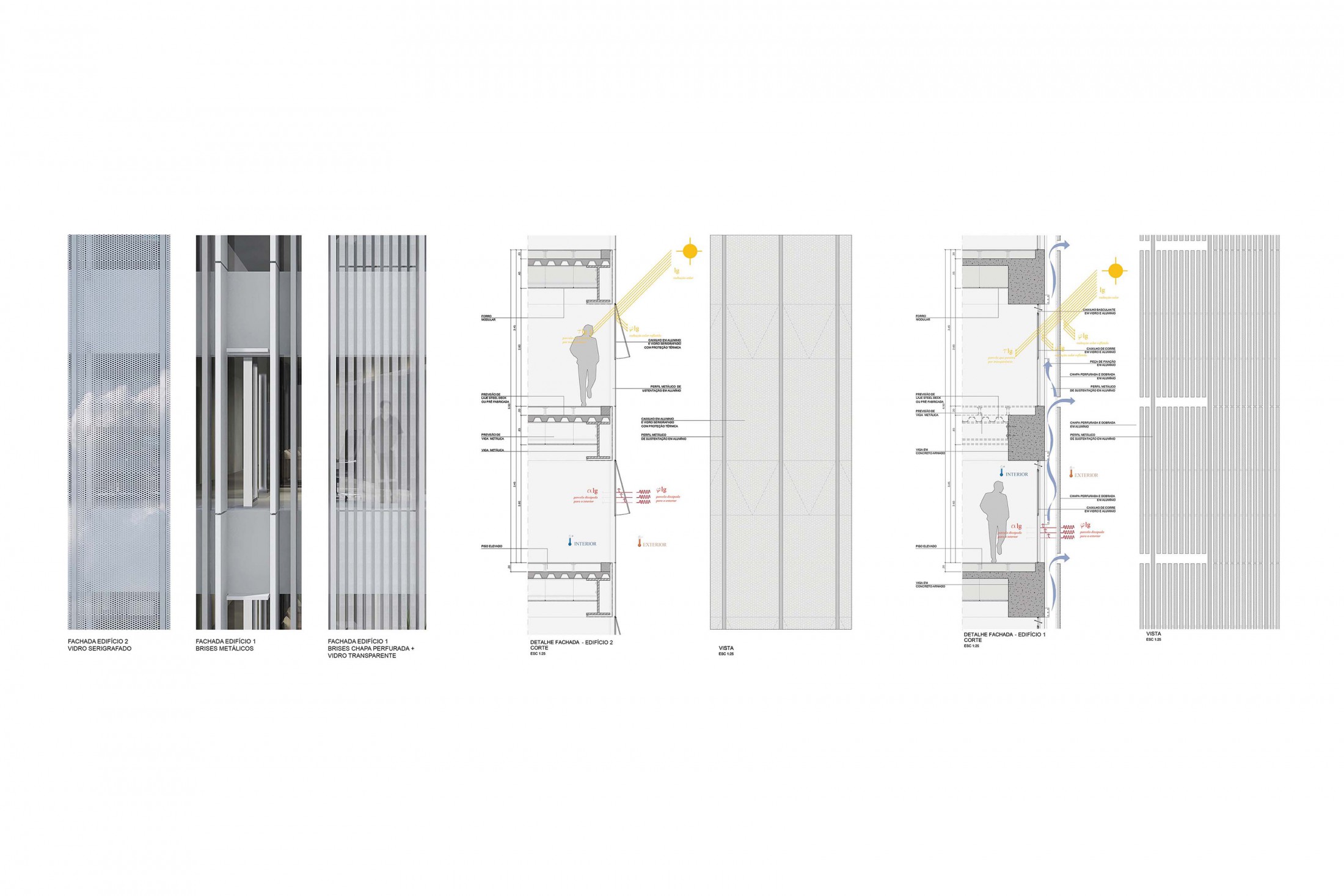 O uso de climatização no edifício torna-se complementar considerando que a própria proposta arquitetônica é capaz de manter os interiores em condições adequadas de conforto térmico por boa parte do ano, uma diretriz determinante para um projeto condizente com o clima local e caracterizado pela flexibilidade e controle de ventilação e iluminação naturais. Tirando partido do sistema estrutural e dos fechamentos, os espaços podem ser permanentemente ventilados e protegidos pelos brises reguláveis da fachada. Esse espaço semiexterior cria uma zona de transição térmica, amenizando os contrastes entre interior e exterior, podendo atender às exigências de ventilação variáveis ao longo do ano e de acordo com os usos internos.